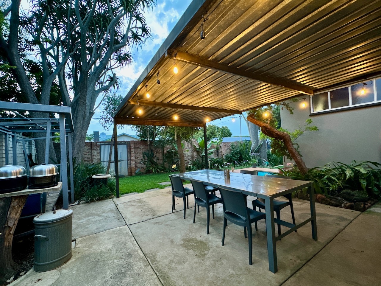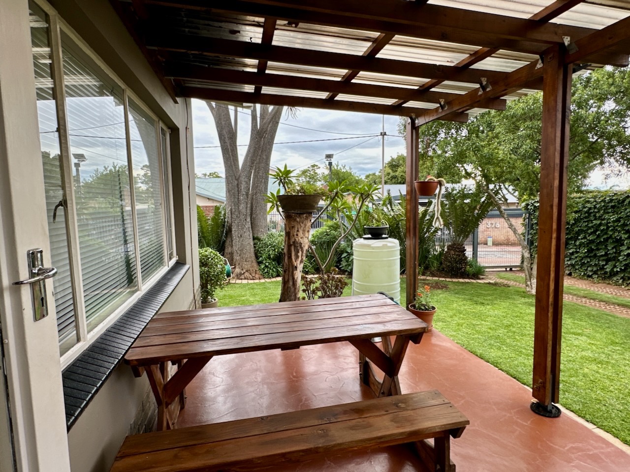 Set on a substantial 743 sqm erf with a floor area of 286 sqm, the outdoor spaces are equally impressive. Enjoy a solar-heated swimming pool with a water-wise backwash system, an enclosed vegetable garden, and a chicken run, promoting sustainable living. Additional features include a practical workshop area, an extra-volume carport with an attic for storage, and cellulose-insulated roofing for year-round comfort. The property also benefits from ample parking with one garage and five open parking spaces, security fencing, access gates, and water tanks. Pets are welcome, enhancing the family-friendly appeal.