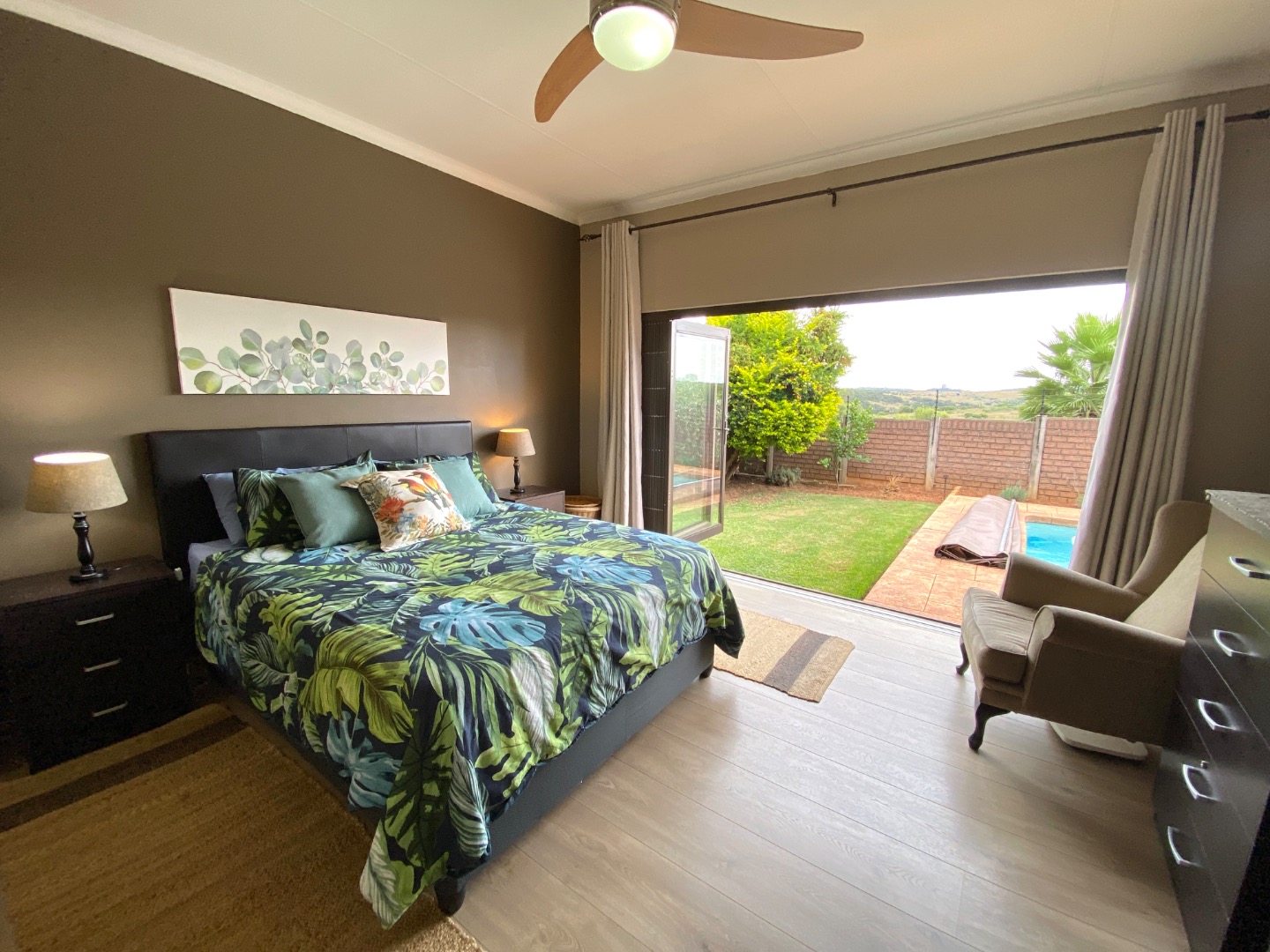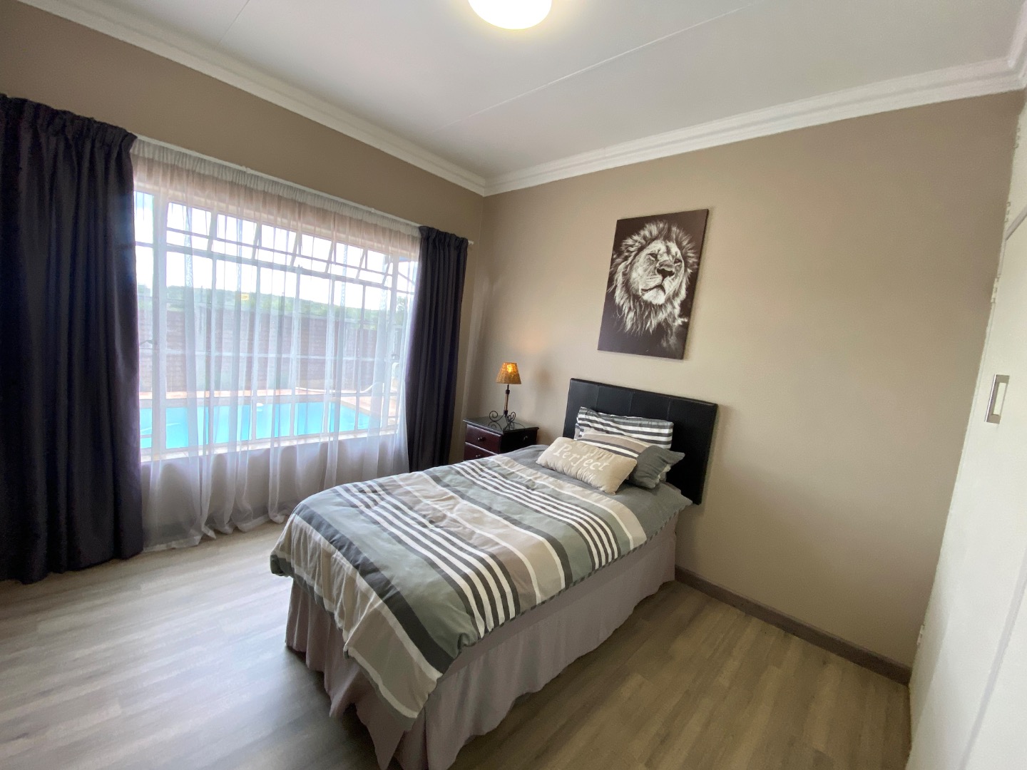 Security has been carefully considered, offering electric fencing, an alarm system, access gate, and burglar bars, ensuring peace of mind for you and your family.