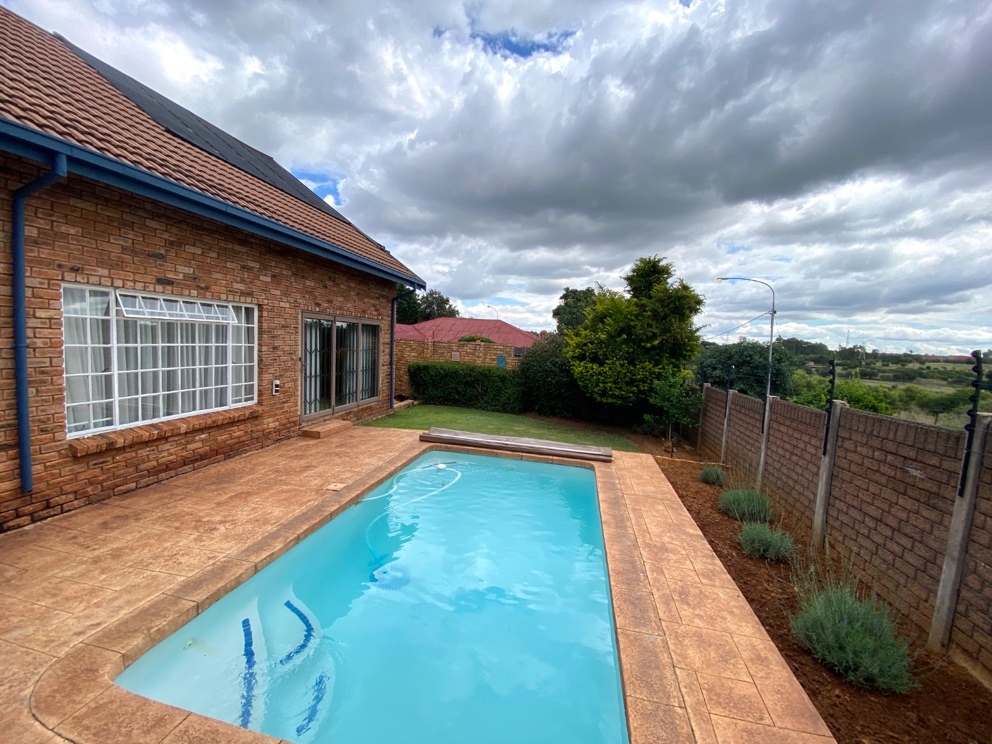 The outdoor space is equally impressive. An established garden surrounds a private swimming pool and a dedicated braai room, ideal for entertaining family and friends. Additional features include a double garage, extra parking, domestic quarters, a wendy house for storage, and neatly paved areas.