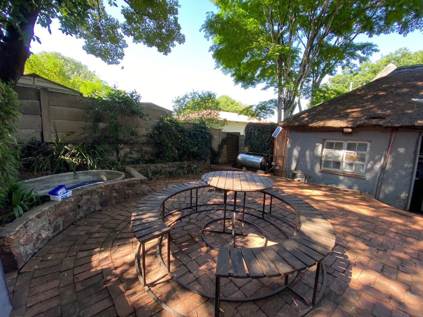 Outdoors, the charm continues. An inviting entertainment area rests beneath the shade of large, established trees, creating the perfect setting for relaxed afternoons, alfresco dining, or simply unwinding in nature’s embrace.