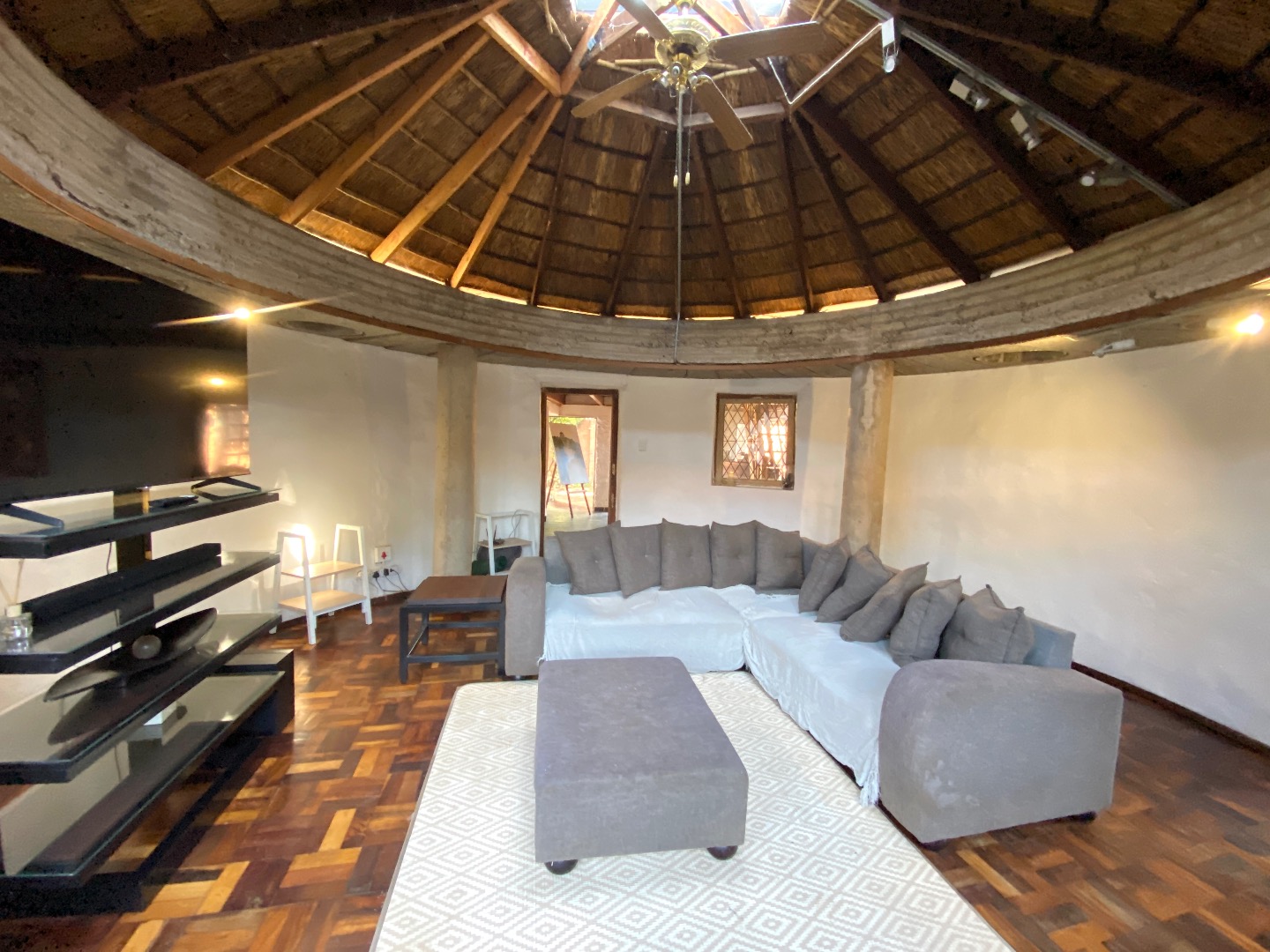 Step into a home that tells a story — where rustic charm meets timeless artistic style. This enchanting 3-bedroom thatch-roof cottage radiates warmth and character, with cottage pane windows that frame leafy garden views and invite soft natural light throughout.