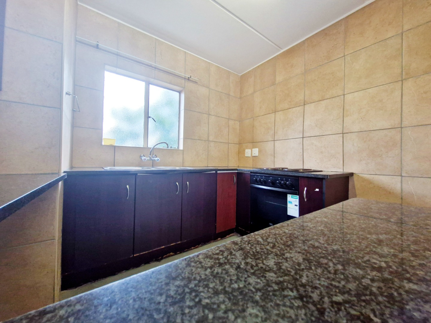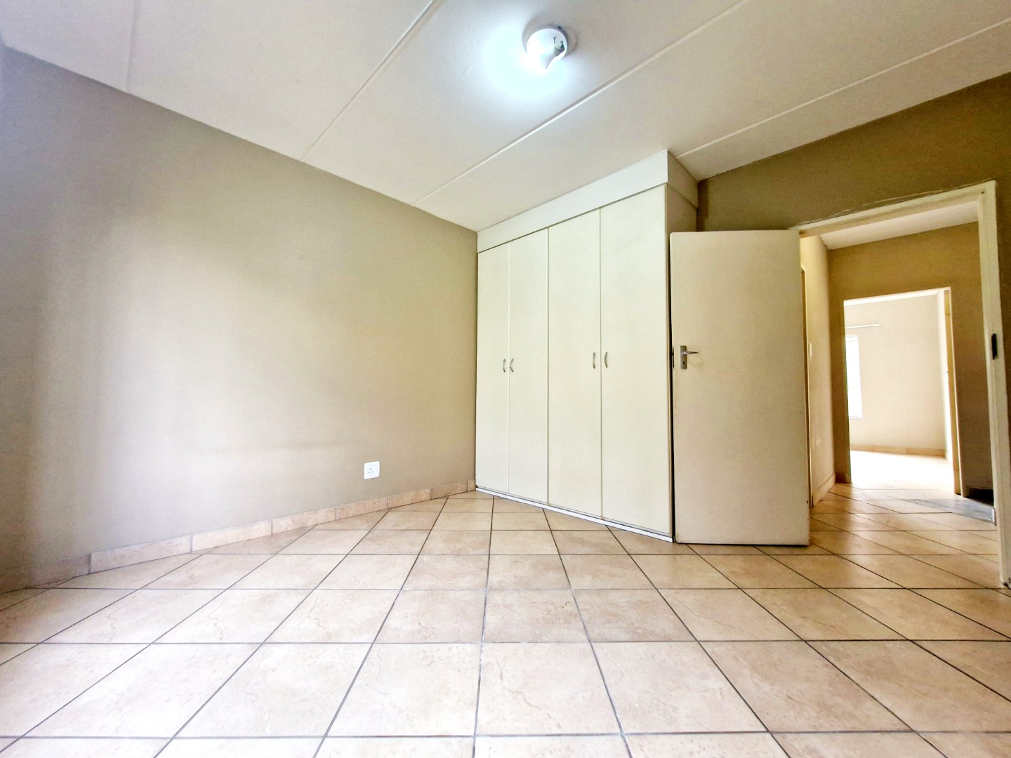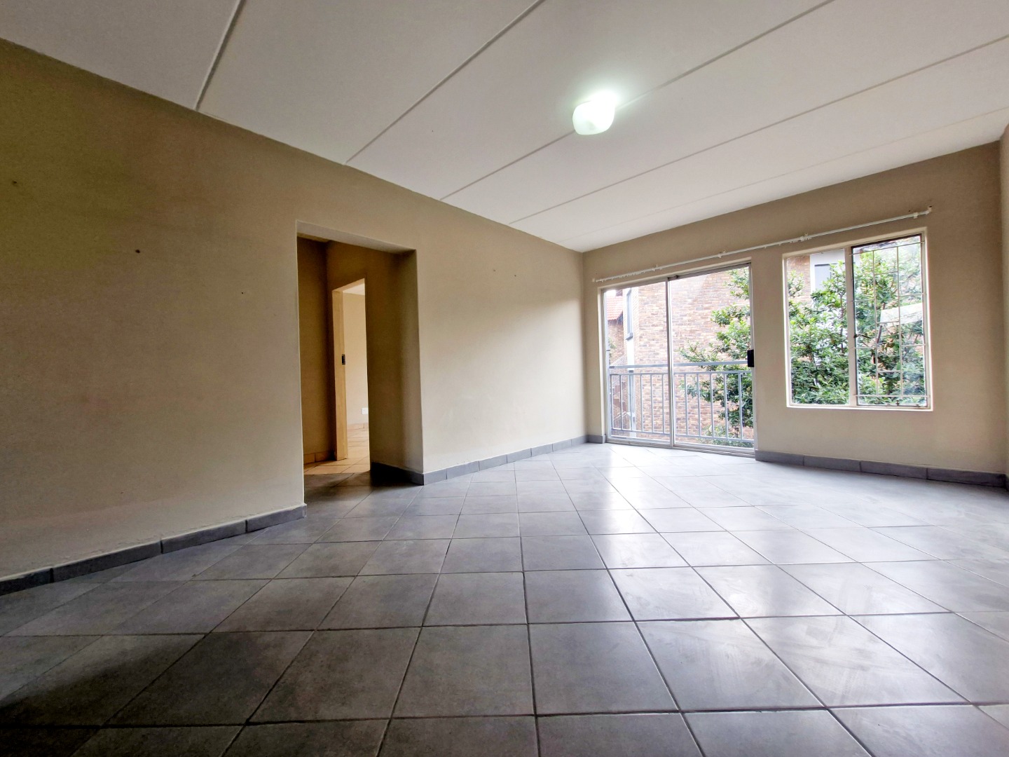 The unit features a spacious open-plan layout, seamlessly connecting the kitchen and living area, creating a comfortable and practical living space. The apartment is fully tiled throughout, ensuring low maintenance and a clean, modern feel.