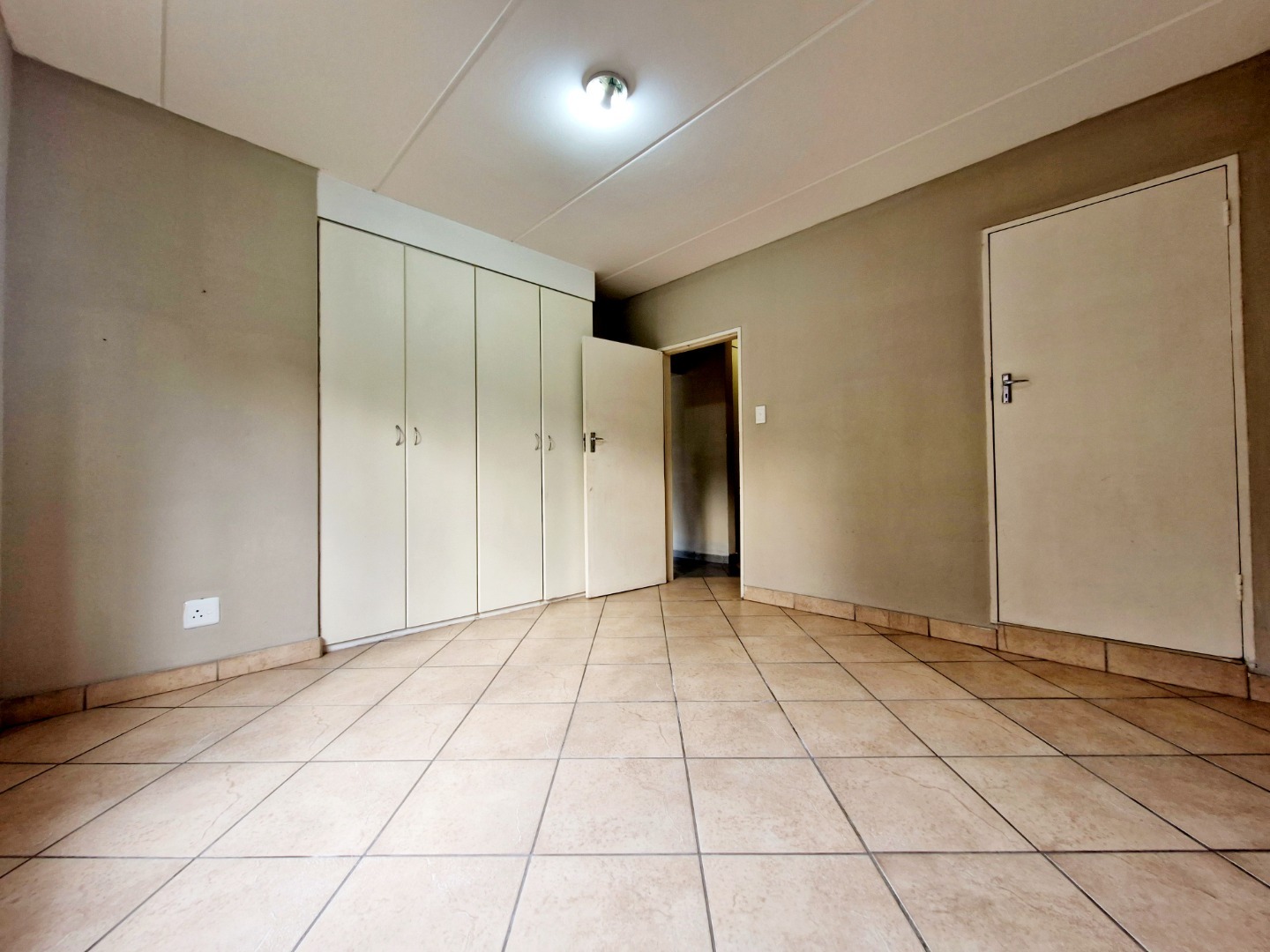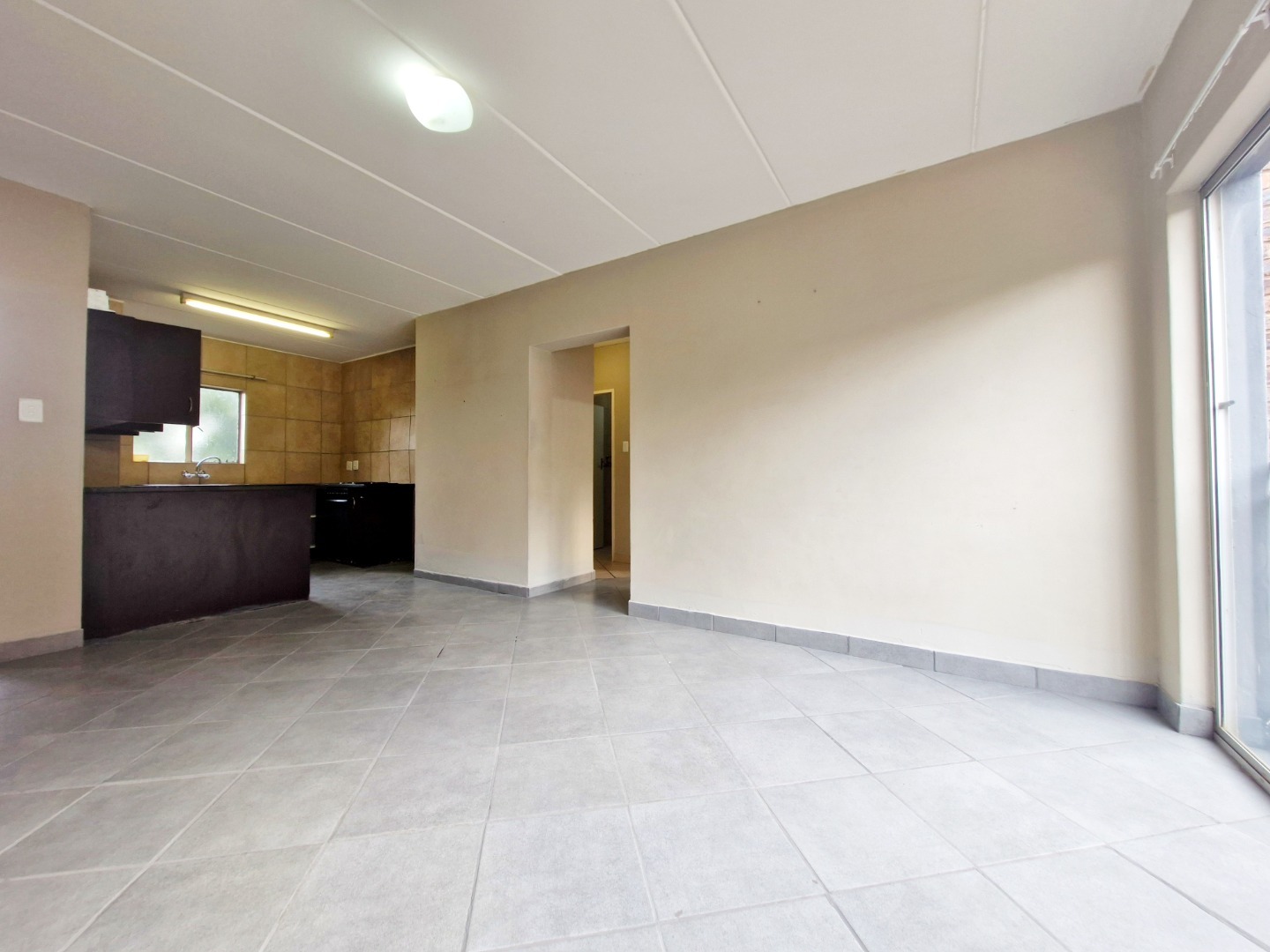 The unit features a spacious open-plan layout, seamlessly connecting the kitchen and living area, creating a comfortable and practical living space. The apartment is fully tiled throughout, ensuring low maintenance and a clean, modern feel.