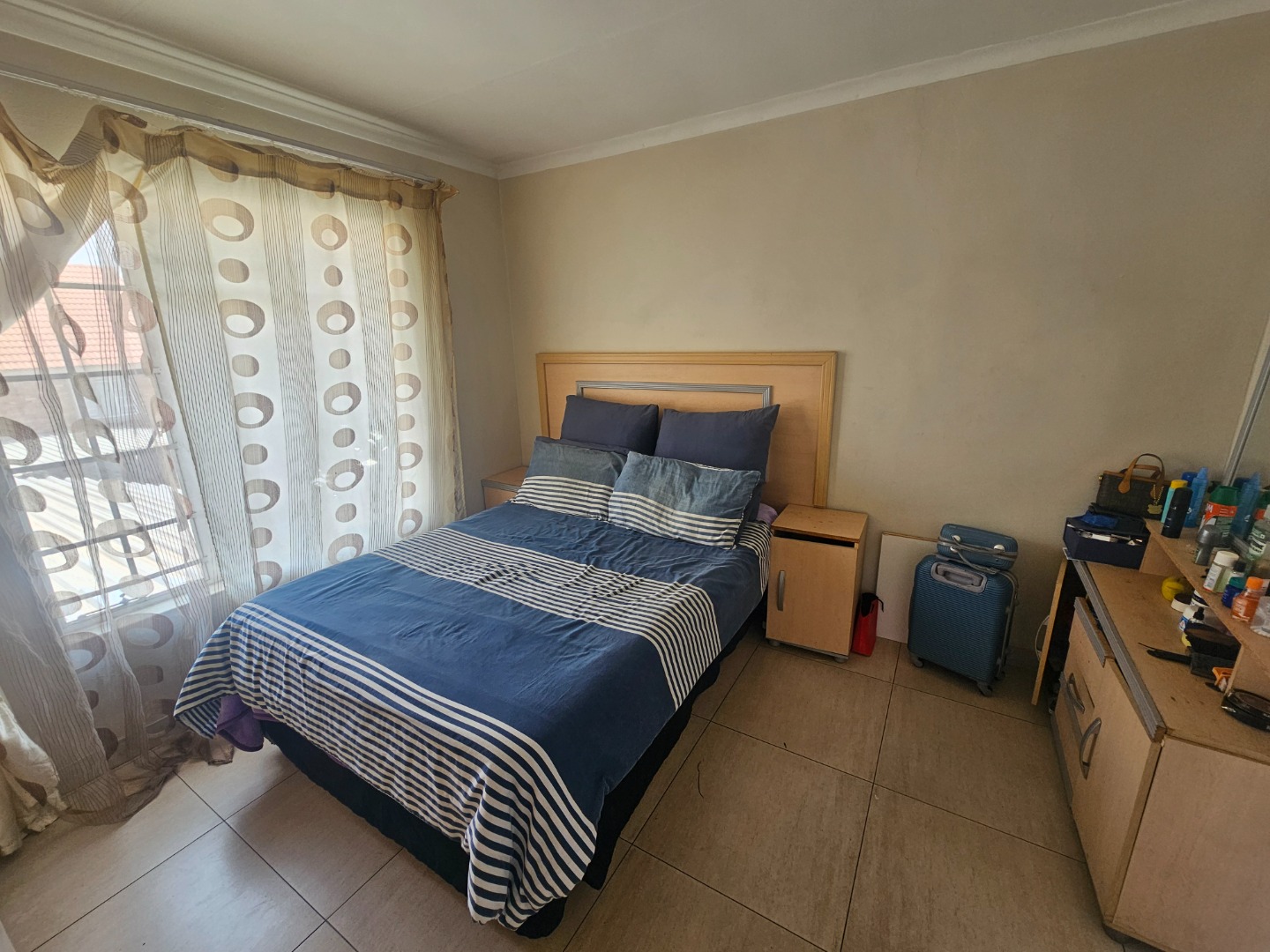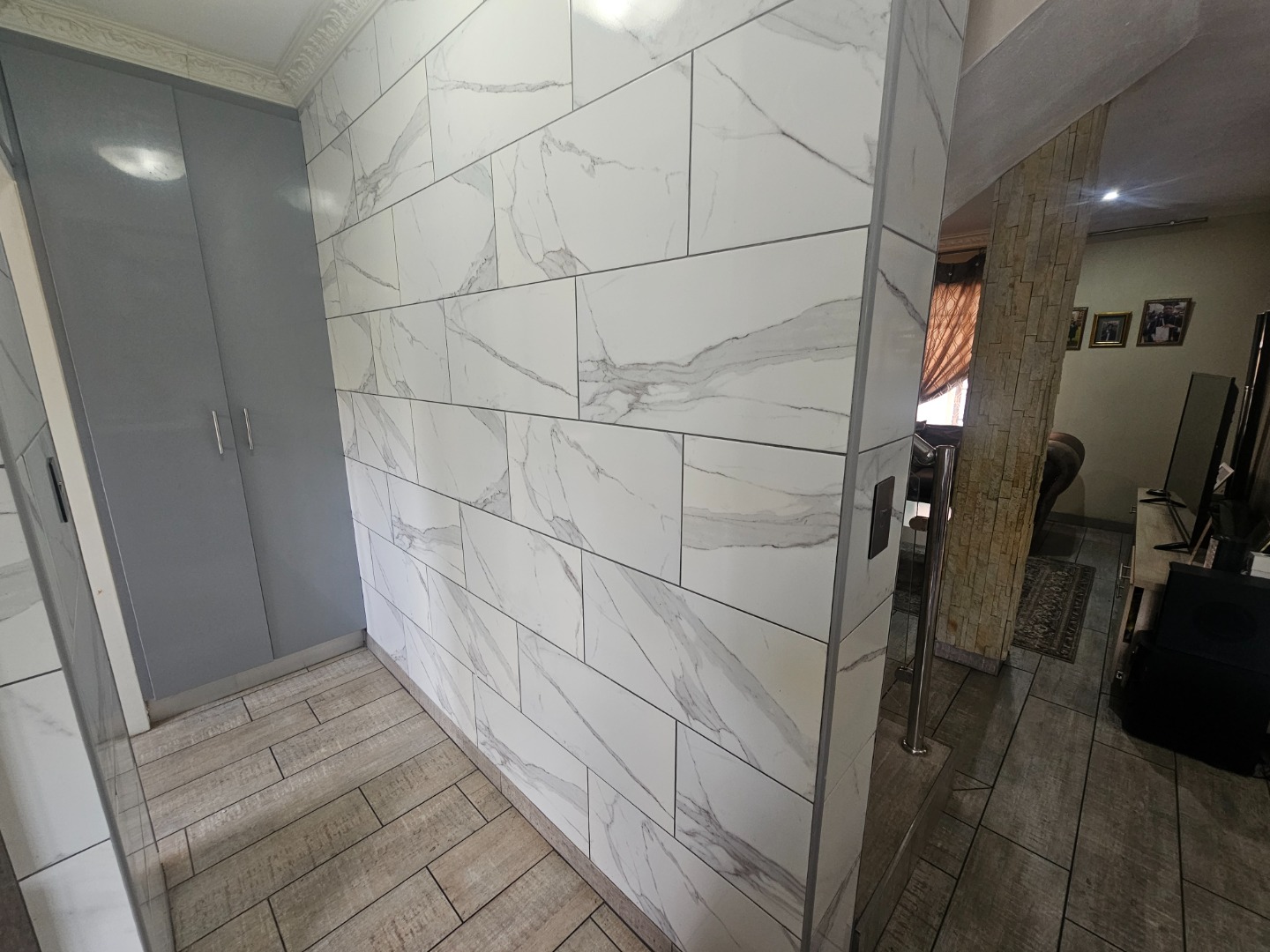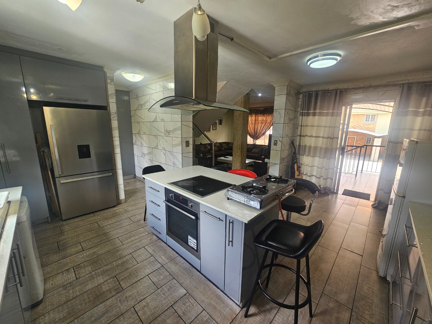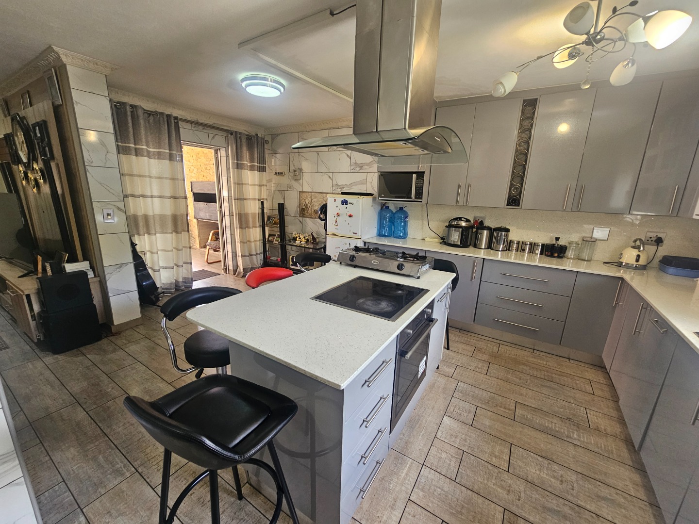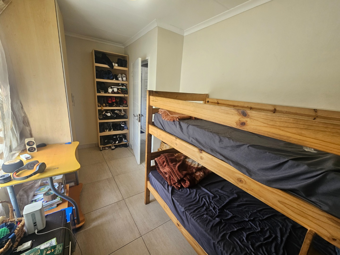 Location: Brooklands Security Estate. Layout: three bedrooms, with the master suite featuring a luxurious en-suite full bathroom. The two additional bedrooms share a stylish, well-appointed bathroom. On the ground floor there is a guest cloakroom, an open-plan kitchen with contemporary finishes described as chef-inspired, and a bright, inviting TV/family room. The outdoor space includes a private patio with a built-in braai, ideal for seamless indoor-outdoor entertaining. Parking consists of two undercover bays immediately adjacent to the unit for convenience and security.