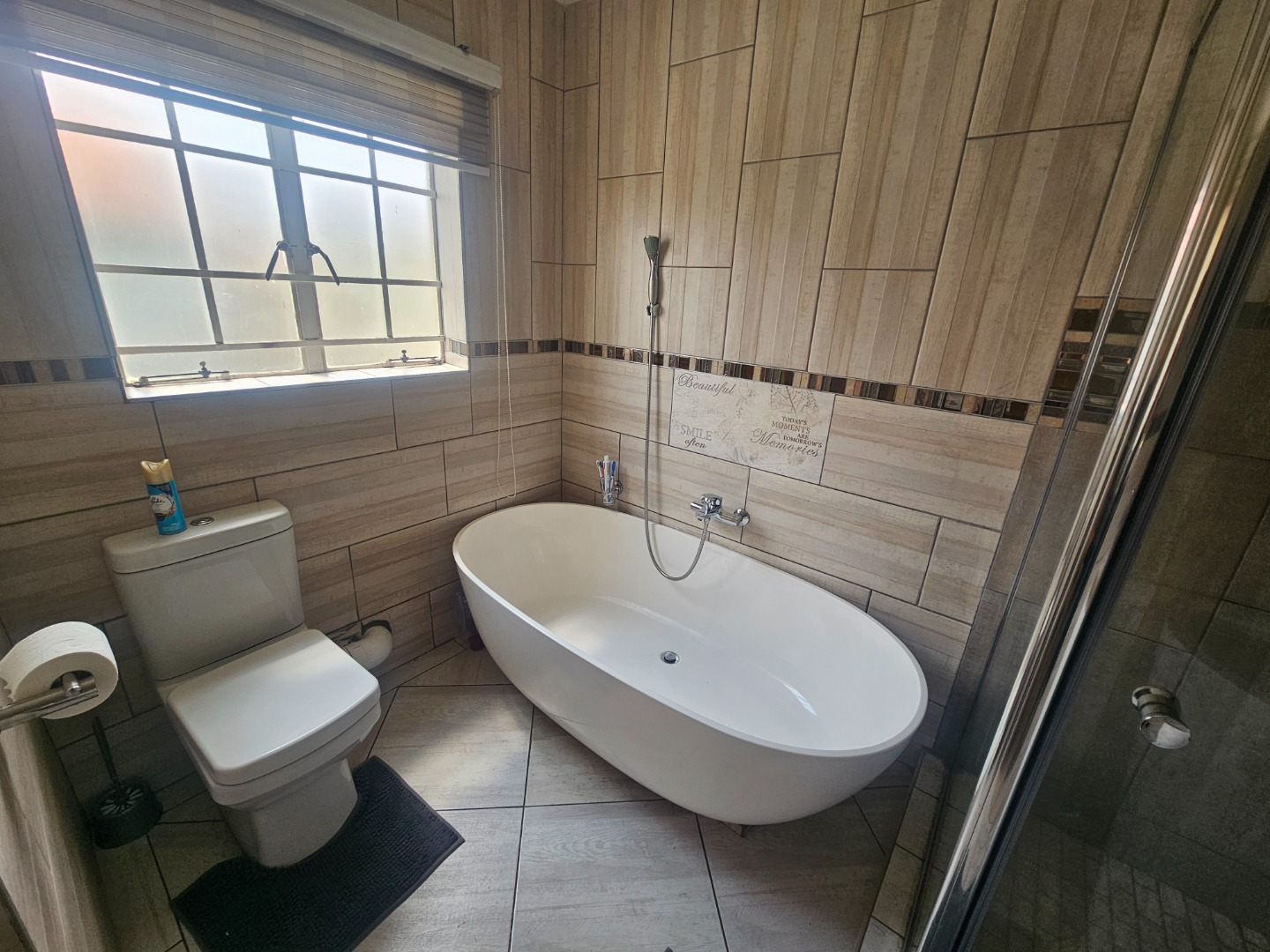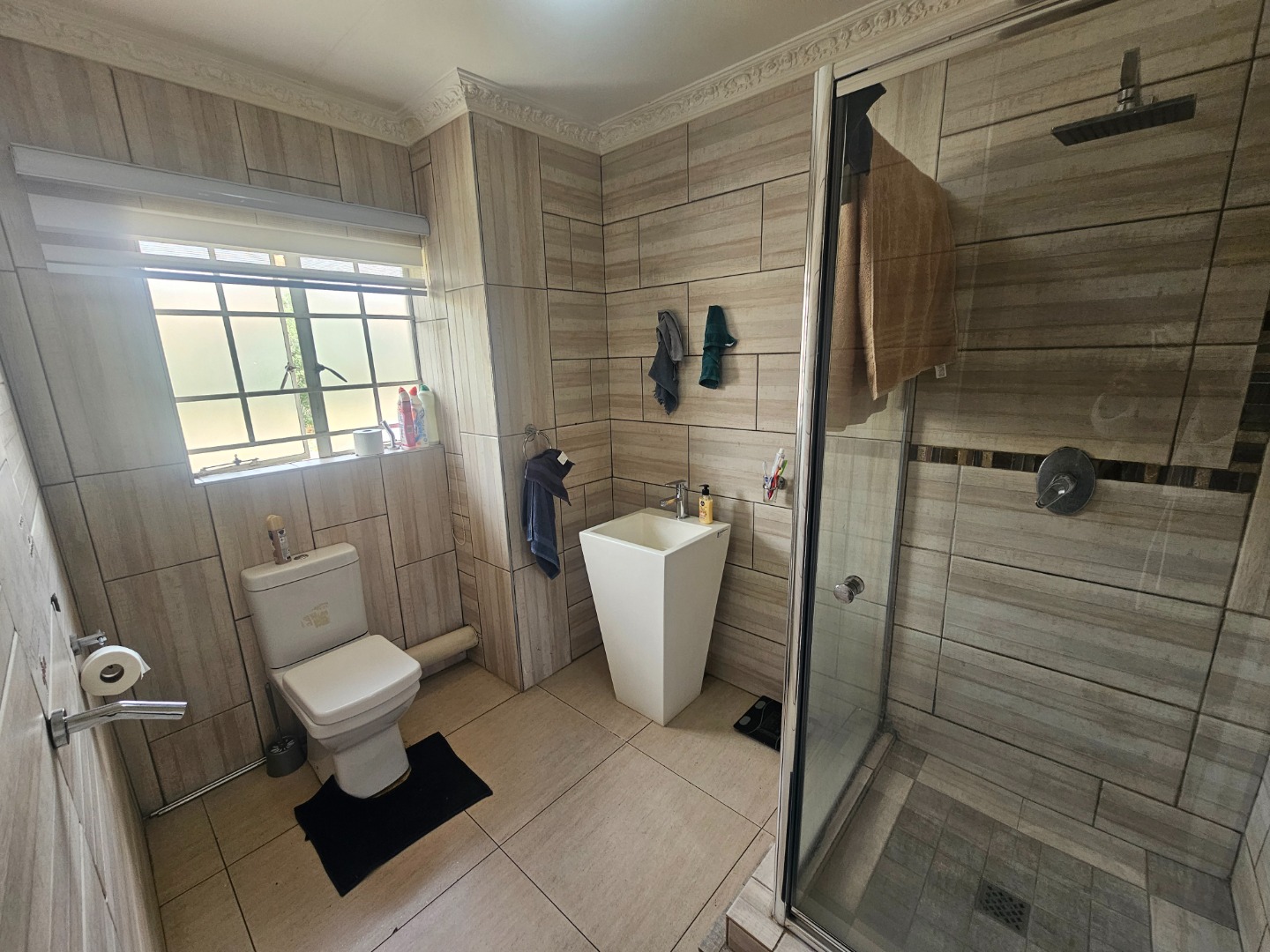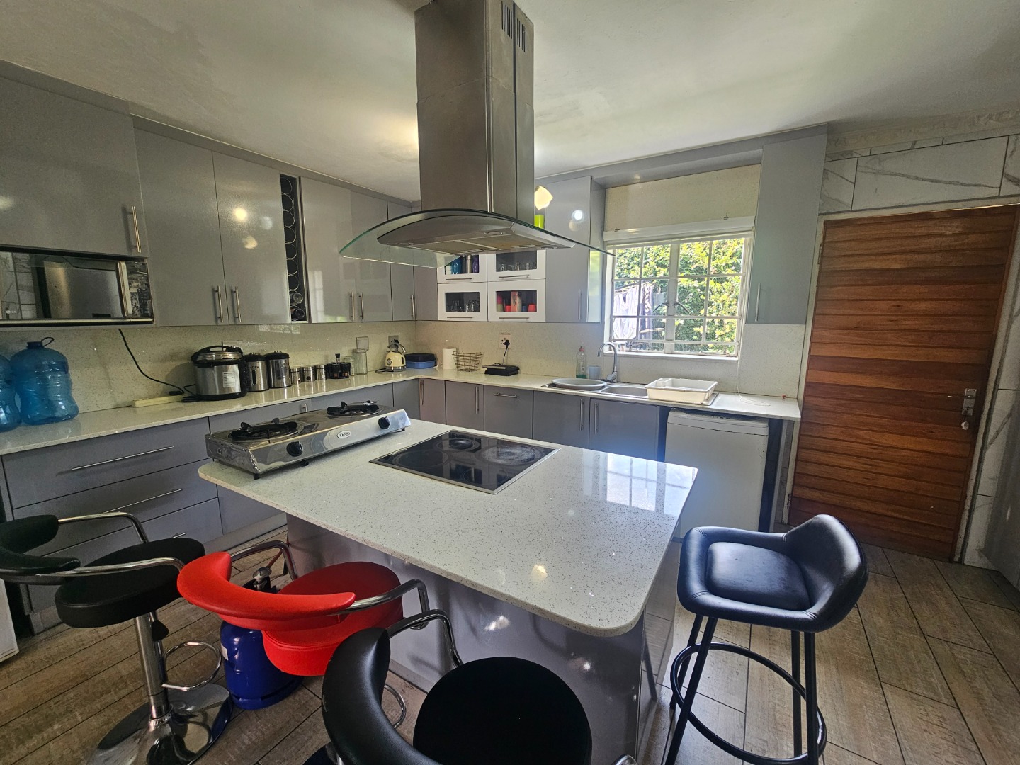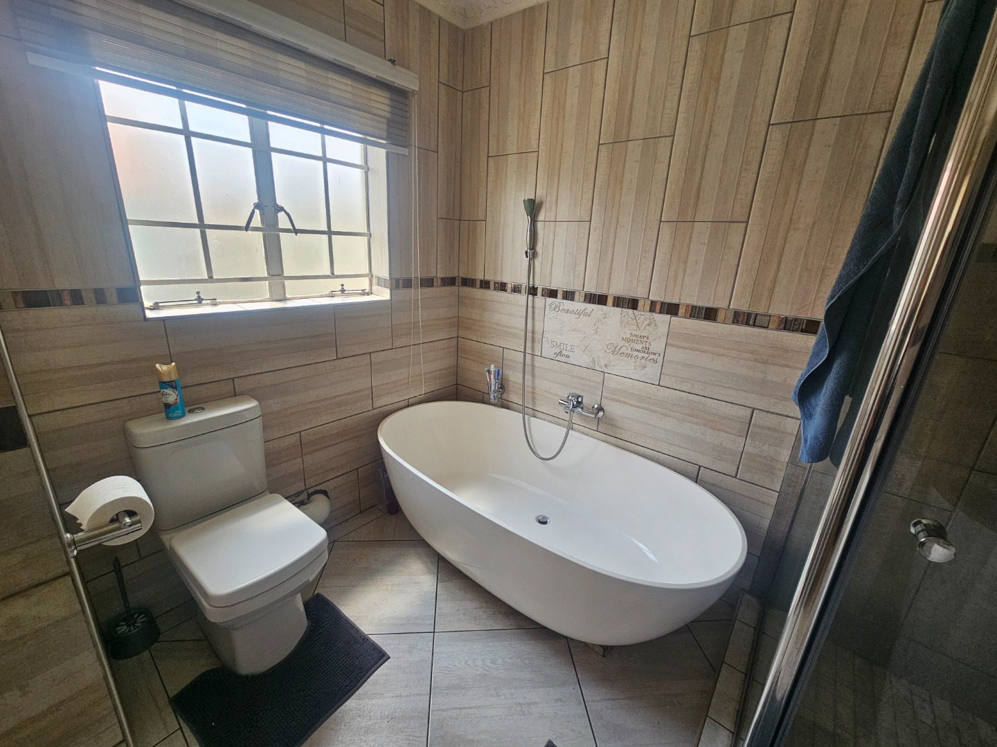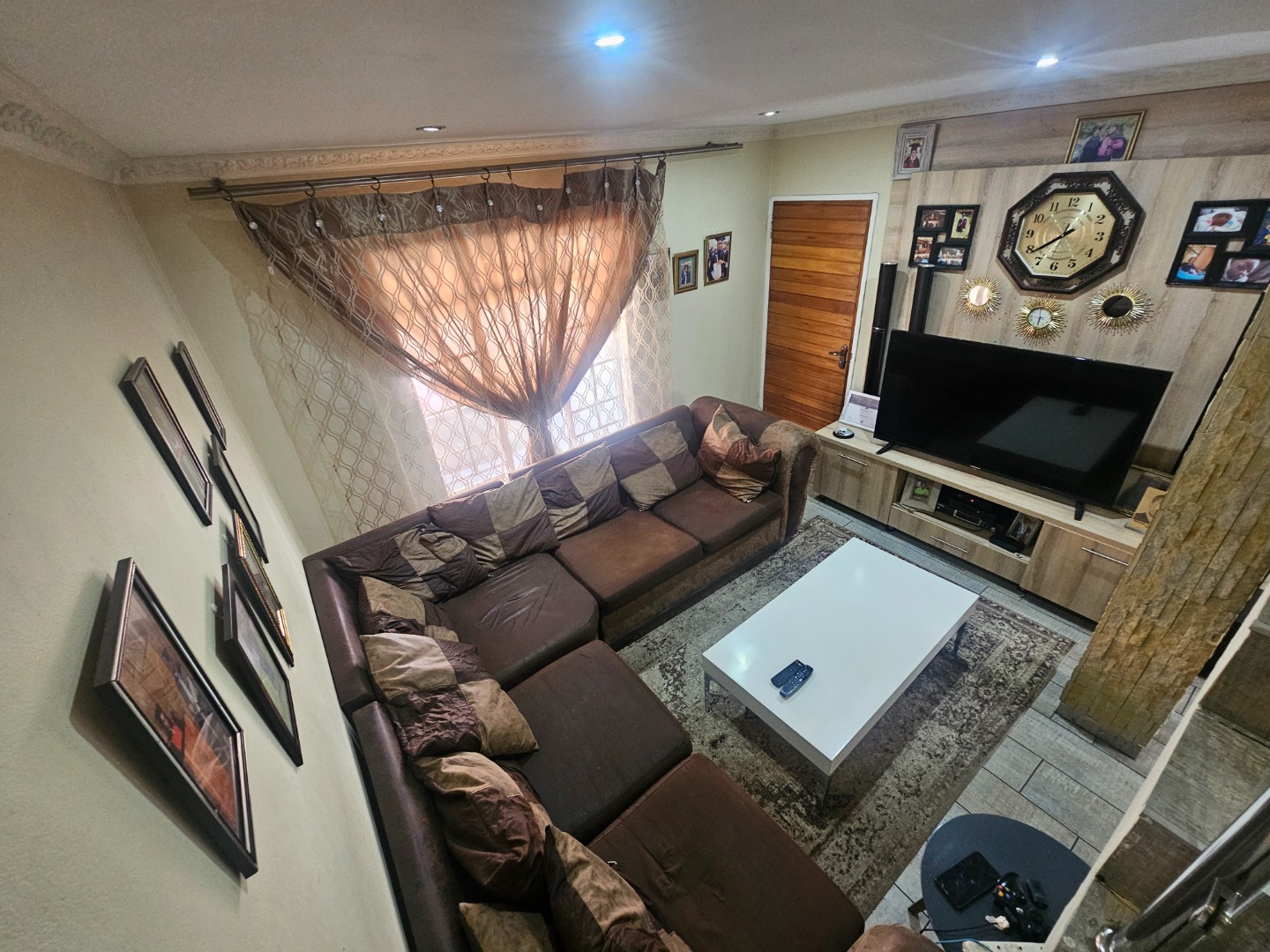 Location: Brooklands Security Estate. Layout: three bedrooms, with the master suite featuring a luxurious en-suite full bathroom. The two additional bedrooms share a stylish, well-appointed bathroom. On the ground floor there is a guest cloakroom, an open-plan kitchen with contemporary finishes described as chef-inspired, and a bright, inviting TV/family room. The outdoor space includes a private patio with a built-in braai, ideal for seamless indoor-outdoor entertaining. Parking consists of two undercover bays immediately adjacent to the unit for convenience and security.