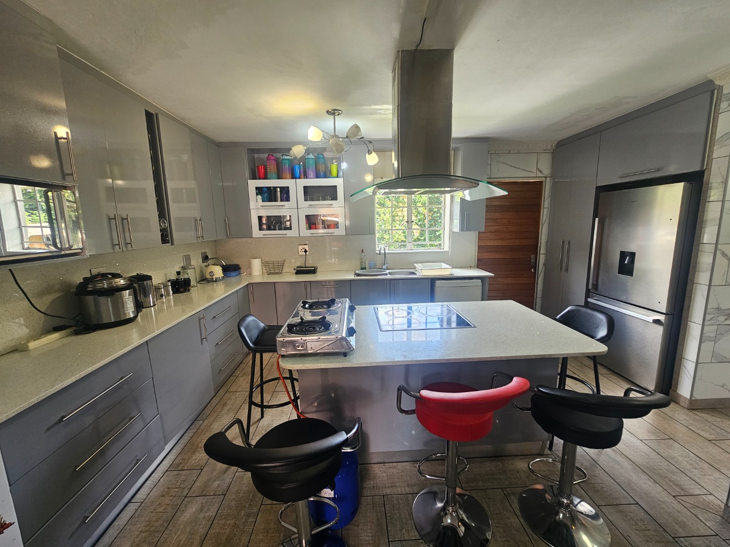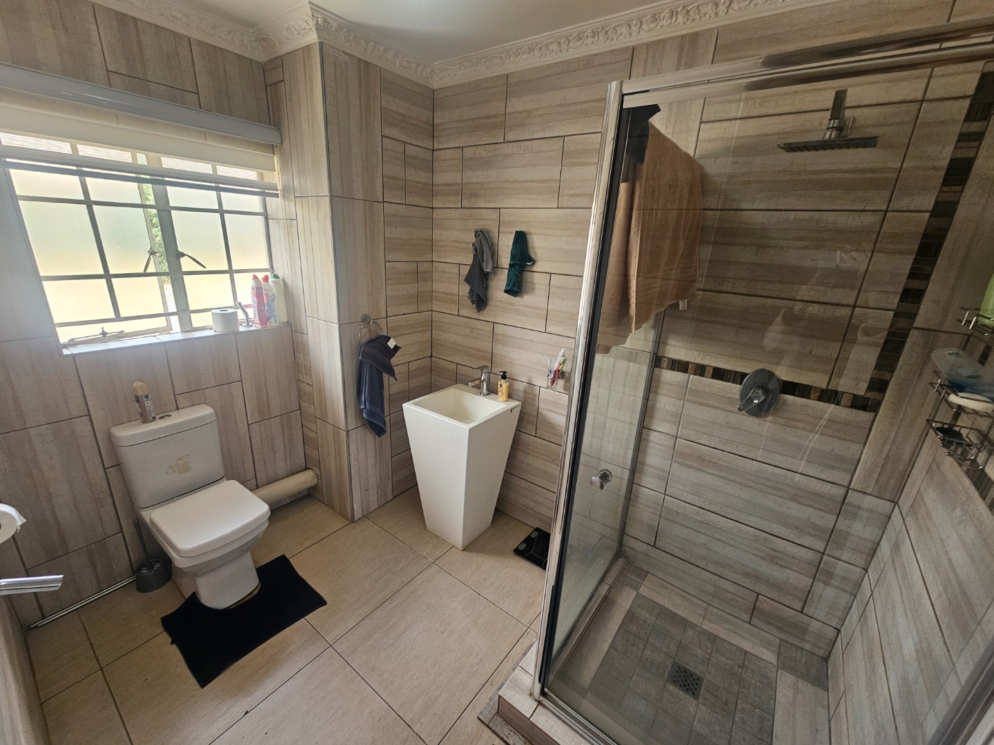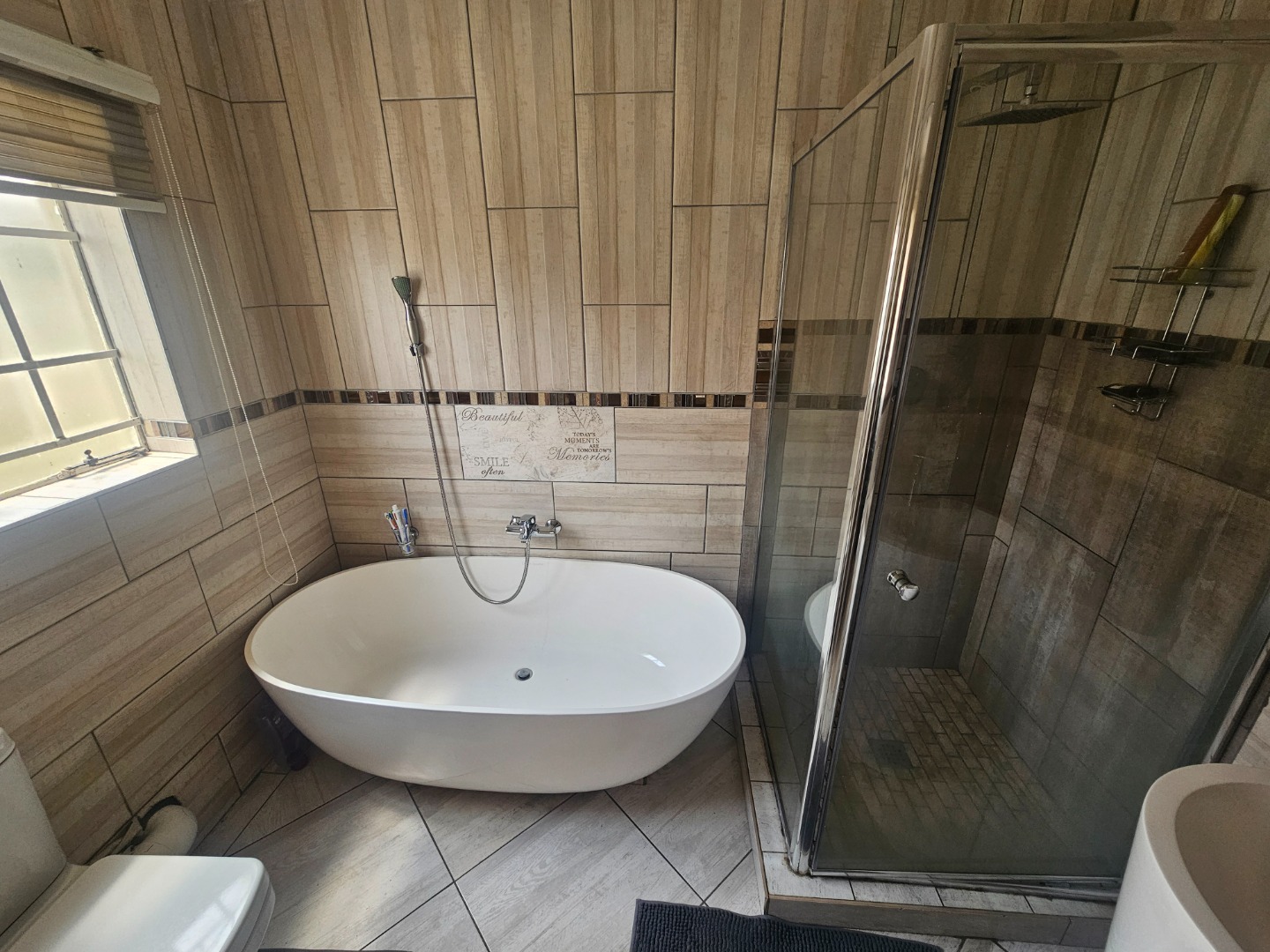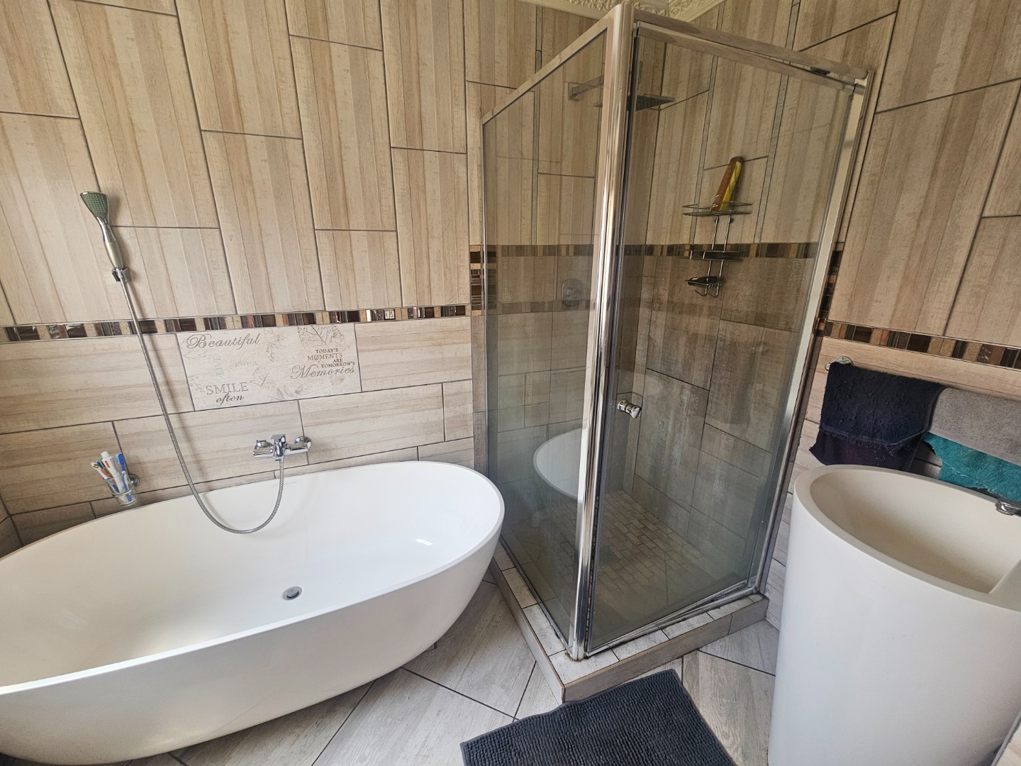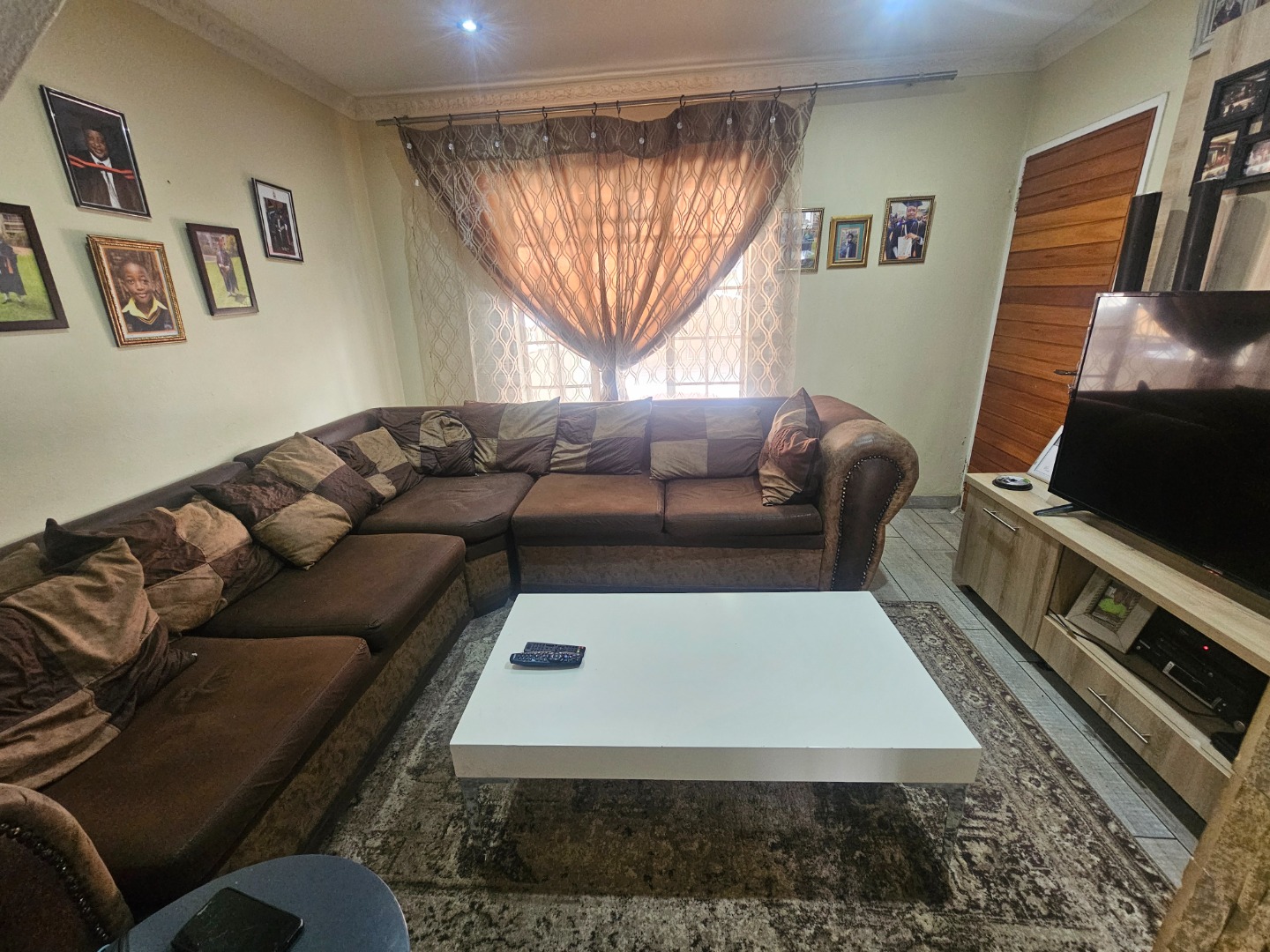 Location: Brooklands Security Estate. Layout: three bedrooms, with the master suite featuring a luxurious en-suite full bathroom. The two additional bedrooms share a stylish, well-appointed bathroom. On the ground floor there is a guest cloakroom, an open-plan kitchen with contemporary finishes described as chef-inspired, and a bright, inviting TV/family room. The outdoor space includes a private patio with a built-in braai, ideal for seamless indoor-outdoor entertaining. Parking consists of two undercover bays immediately adjacent to the unit for convenience and security.