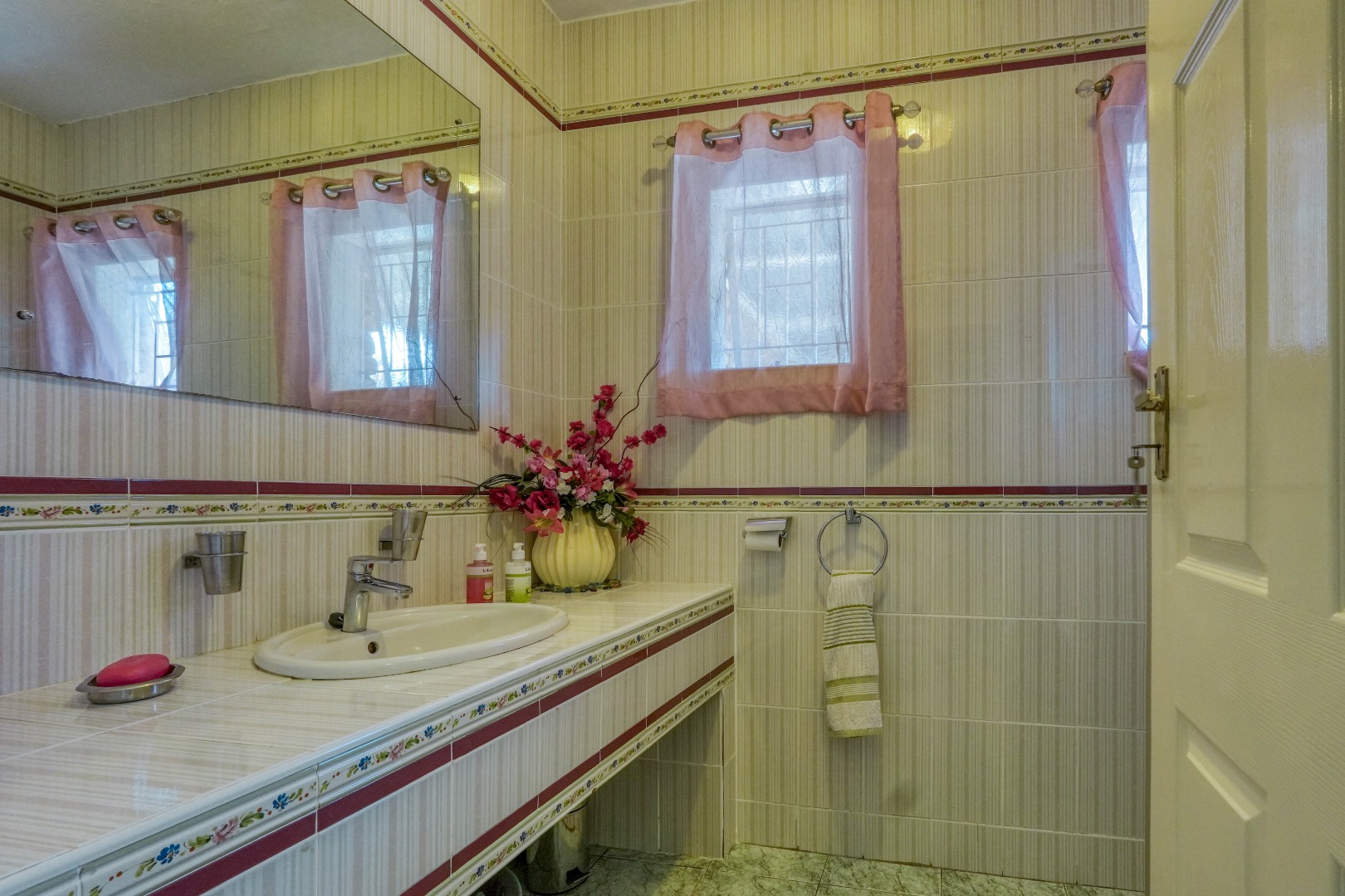 At the heart of the home lies the kitchen, perfectly positioned near the dining room and the welcoming TV room, creating a warm flow ideal for family life and entertaining. The home features five bedrooms and three bathrooms, including a luxurious Jacuzzi for unwinding in style.