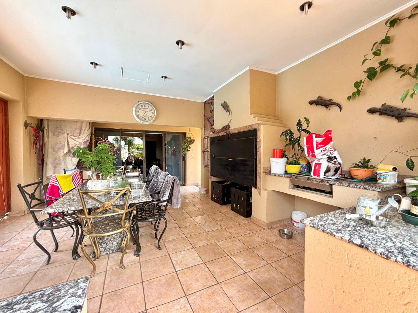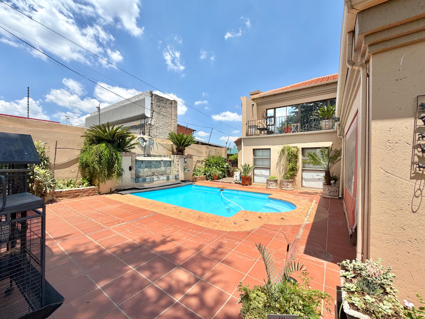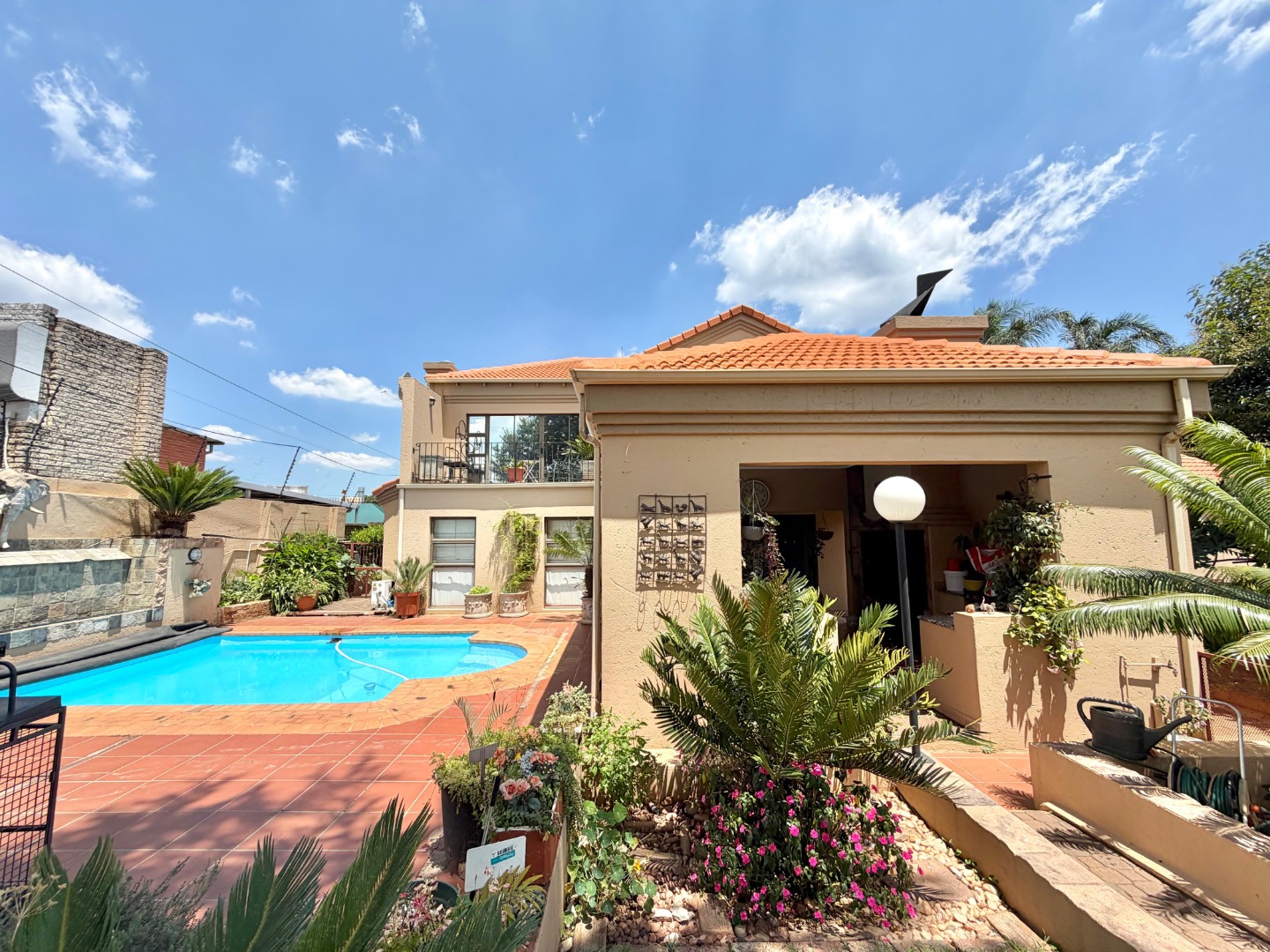 The private 3-bedroom residential home is completely separate with its own entrance, providing privacy and comfort. The house features three spacious bedrooms, a study, and a formal lounge, complemented by an open-plan living and dining area. The modern open-plan kitchen flows seamlessly to a covered braai and entertainment area, overlooking a newly renovated swimming pool—perfect for relaxed family living or entertaining guests.