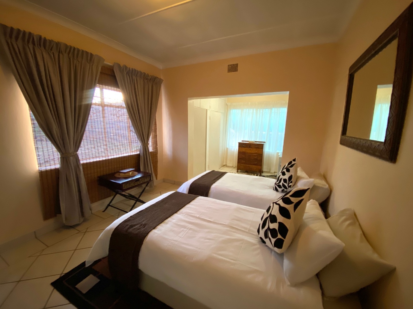 - 3 Bedrooms each with built in cupboards, one bedroom boasts a study and the Main bedroom has a Air-Conditioner as well as a study or dressing area