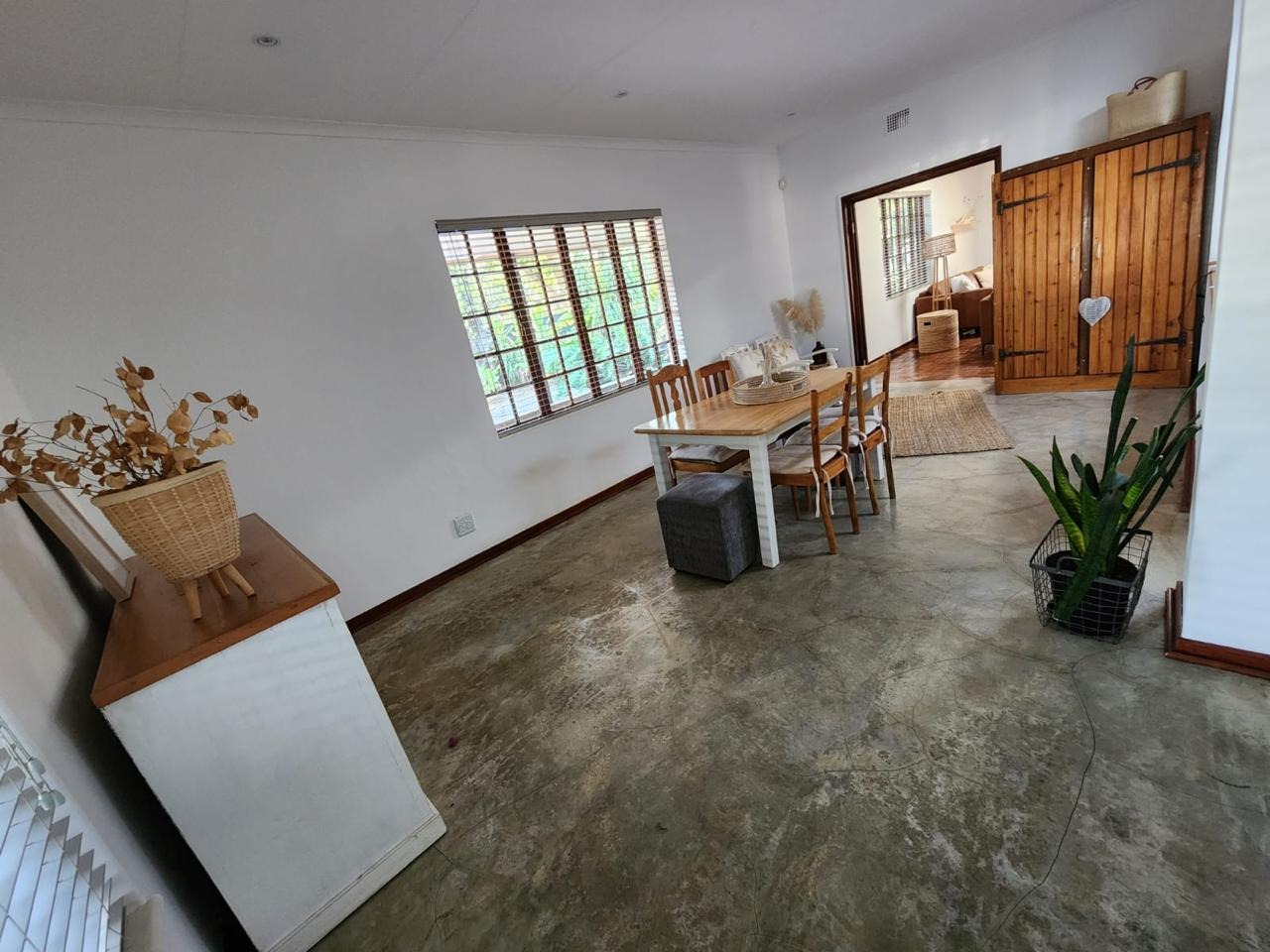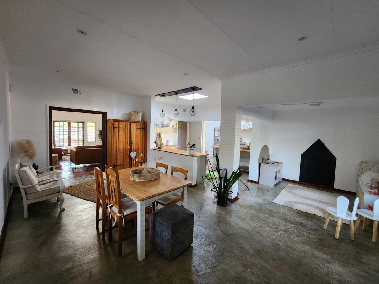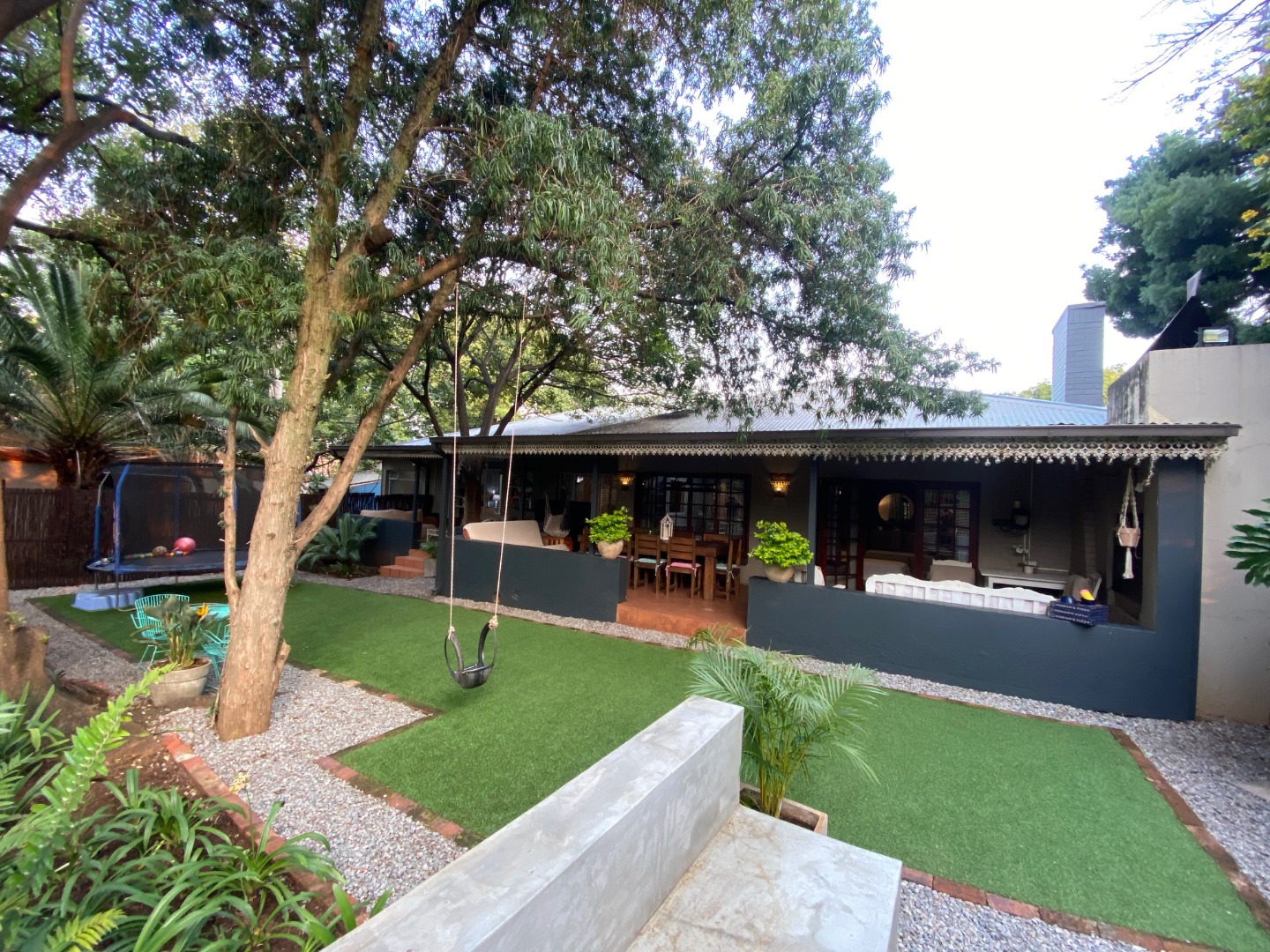 - Large under cover patio with built in braai and space for dining and living area