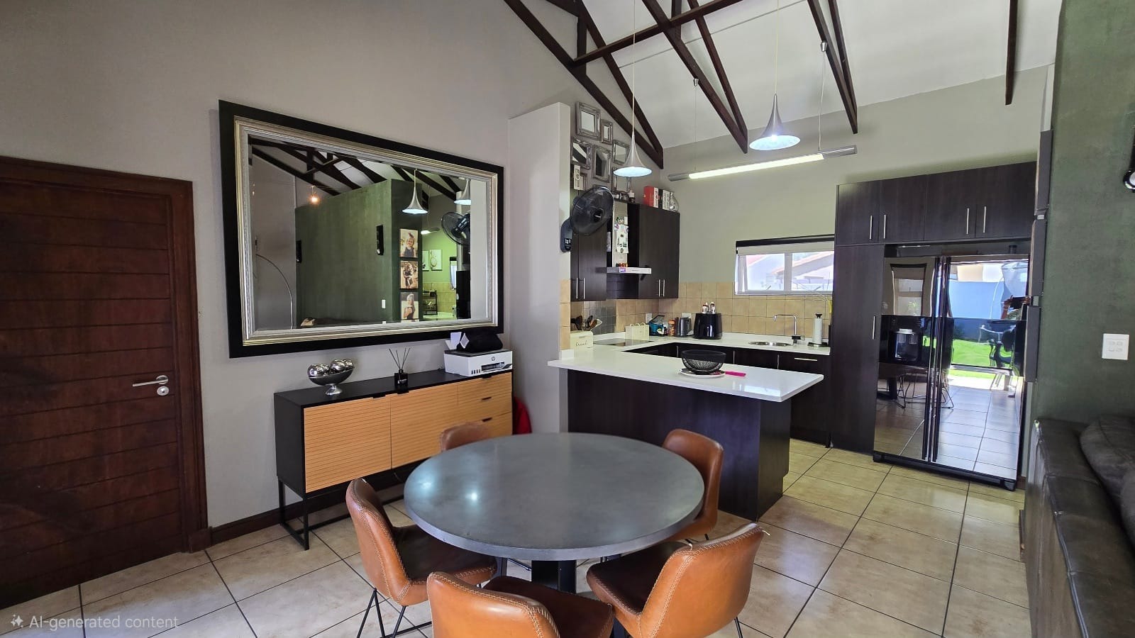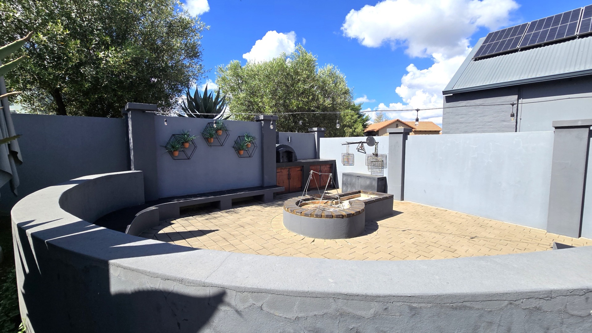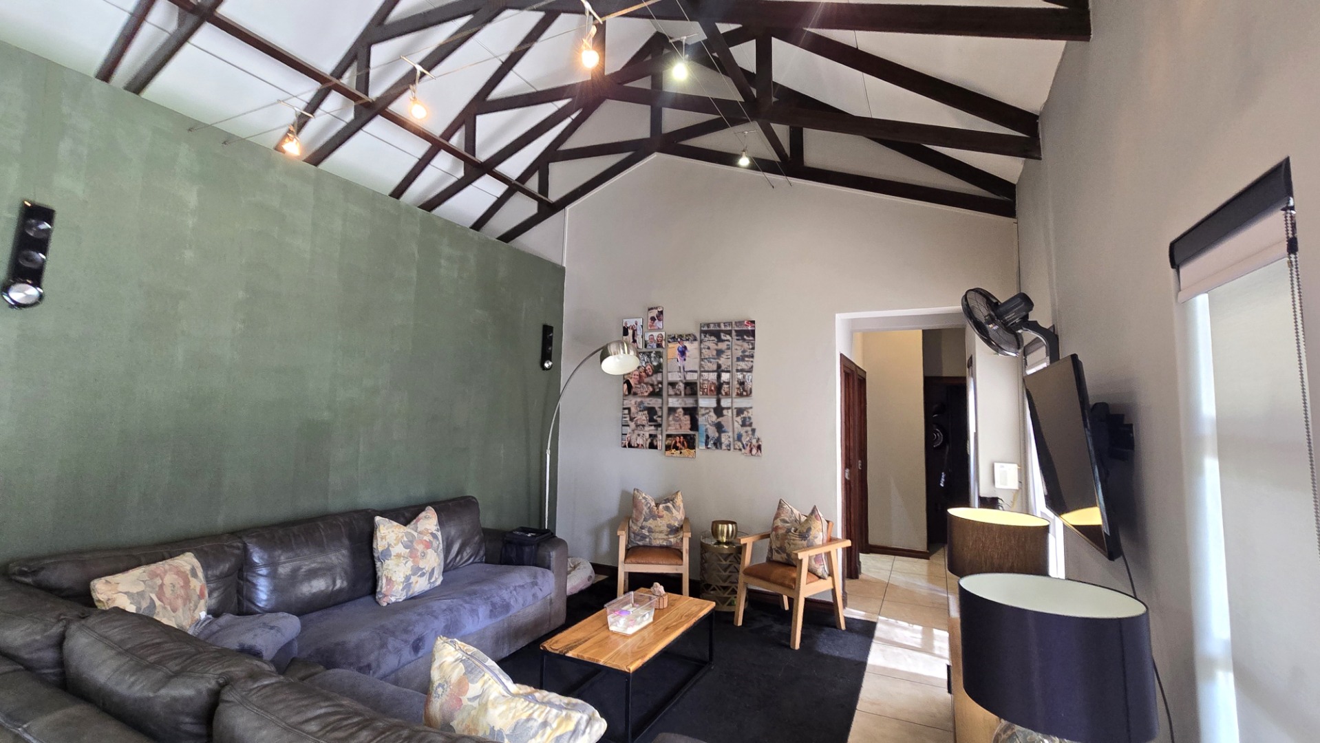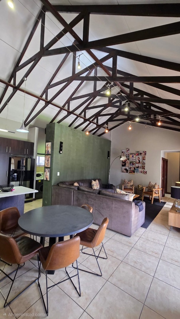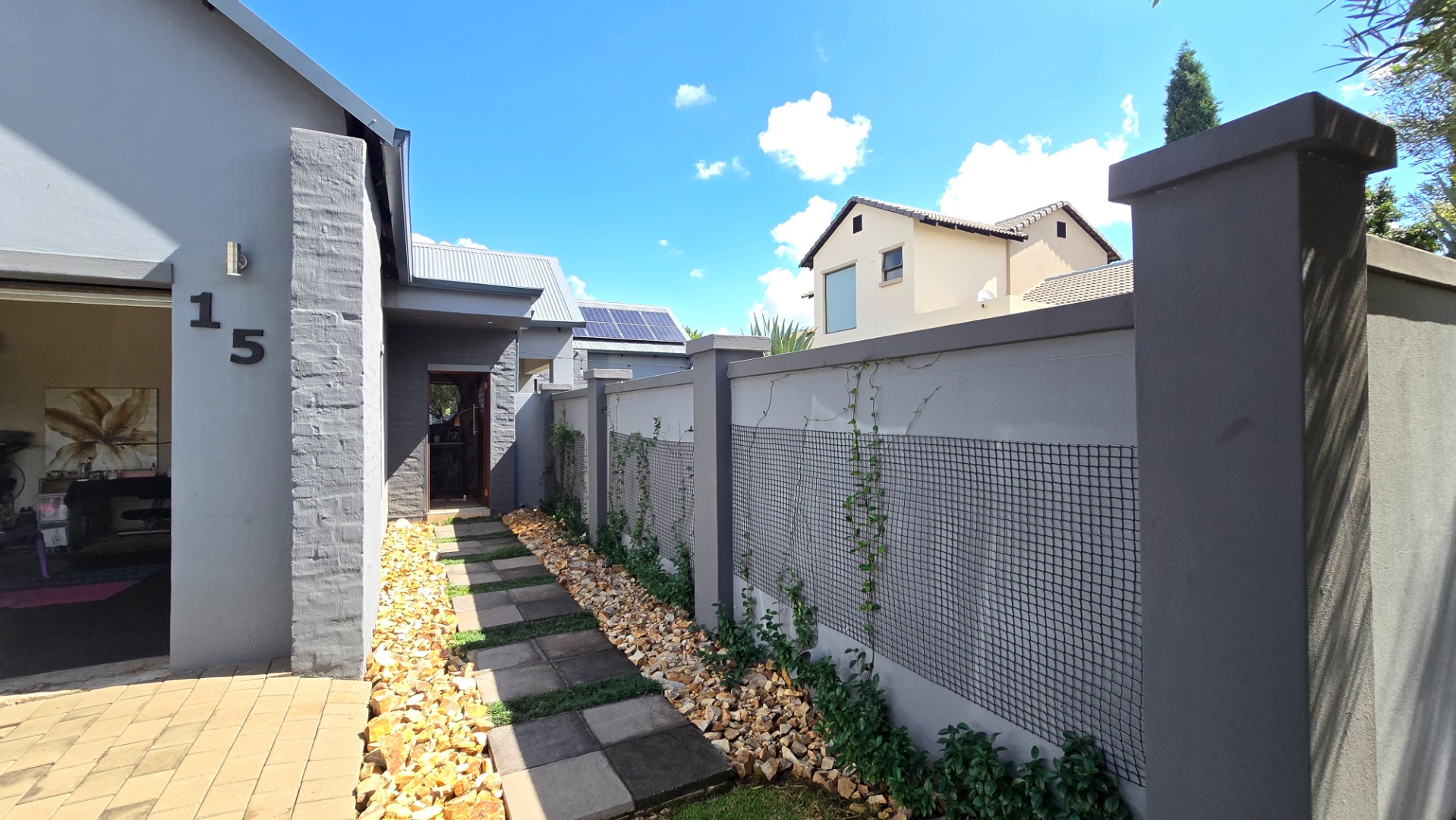 Find this single level family home nestled inside Midlands Estate, part of the greater Midstream Estate. This home features open plan living and dining, with exposed beams and double volume ceilings. The living spaces leads out to your covered patio and private garden. Outside you will also find a very spacious open boma, perfect for entertaining under the starts. The kitchen is modern with a separate scullery with space for 3 appliances. Down the passage you will find 3 bedrooms with 2 bathrooms. This home also features double garages and staff quarters. An added bonus is the solar panels with inverter / battery. Make the call today and arrange a viewing!