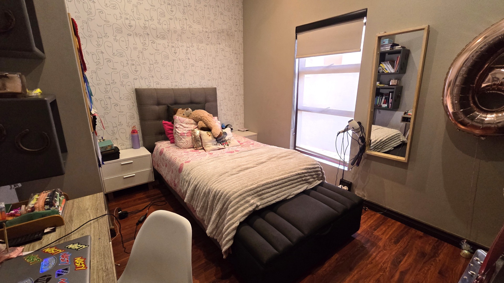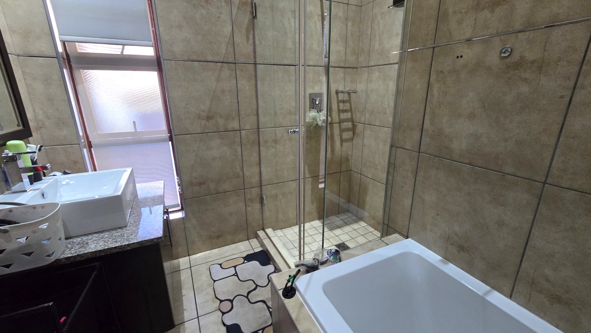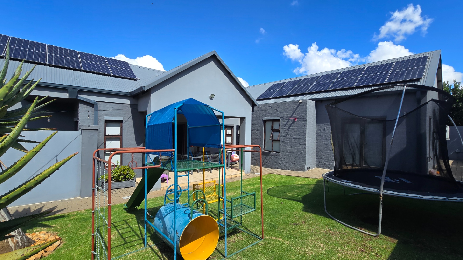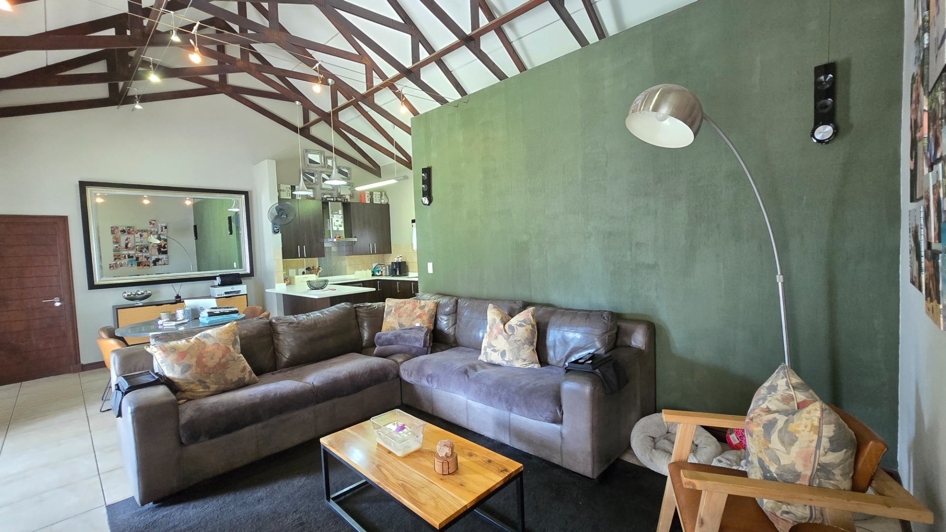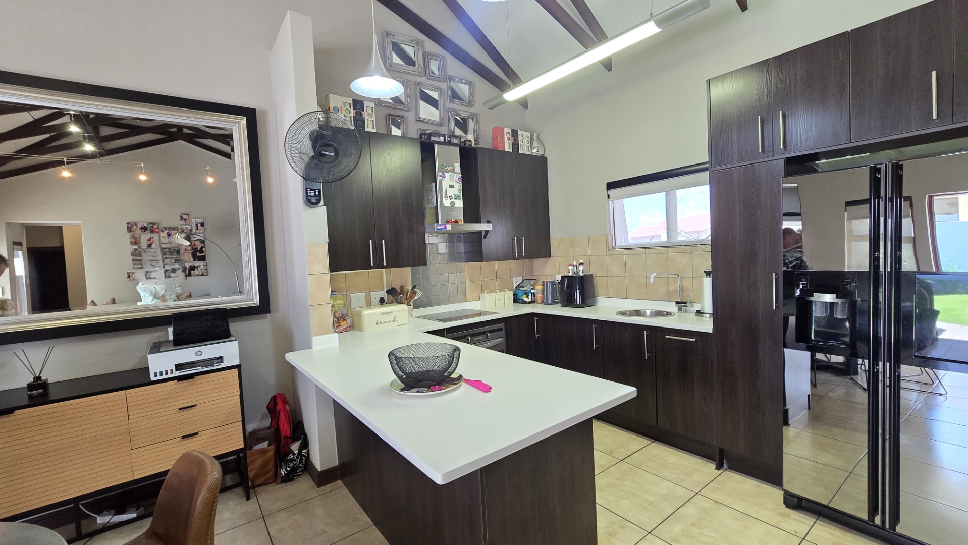 Find this single level family home nestled inside Midlands Estate, part of the greater Midstream Estate. This home features open plan living and dining, with exposed beams and double volume ceilings. The living spaces leads out to your covered patio and private garden. Outside you will also find a very spacious open boma, perfect for entertaining under the starts. The kitchen is modern with a separate scullery with space for 3 appliances. Down the passage you will find 3 bedrooms with 2 bathrooms. This home also features double garages and staff quarters. An added bonus is the solar panels with inverter / battery. Make the call today and arrange a viewing!