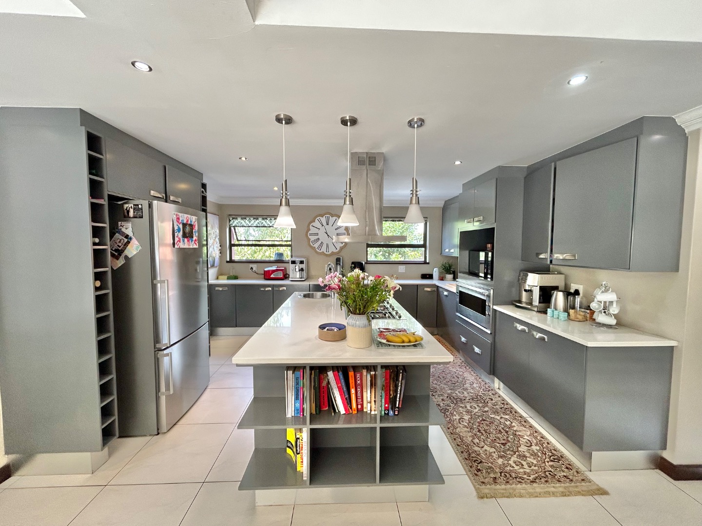- Designer kitchen with premium finishes, gas stove, electric oven, and generous breakfast island