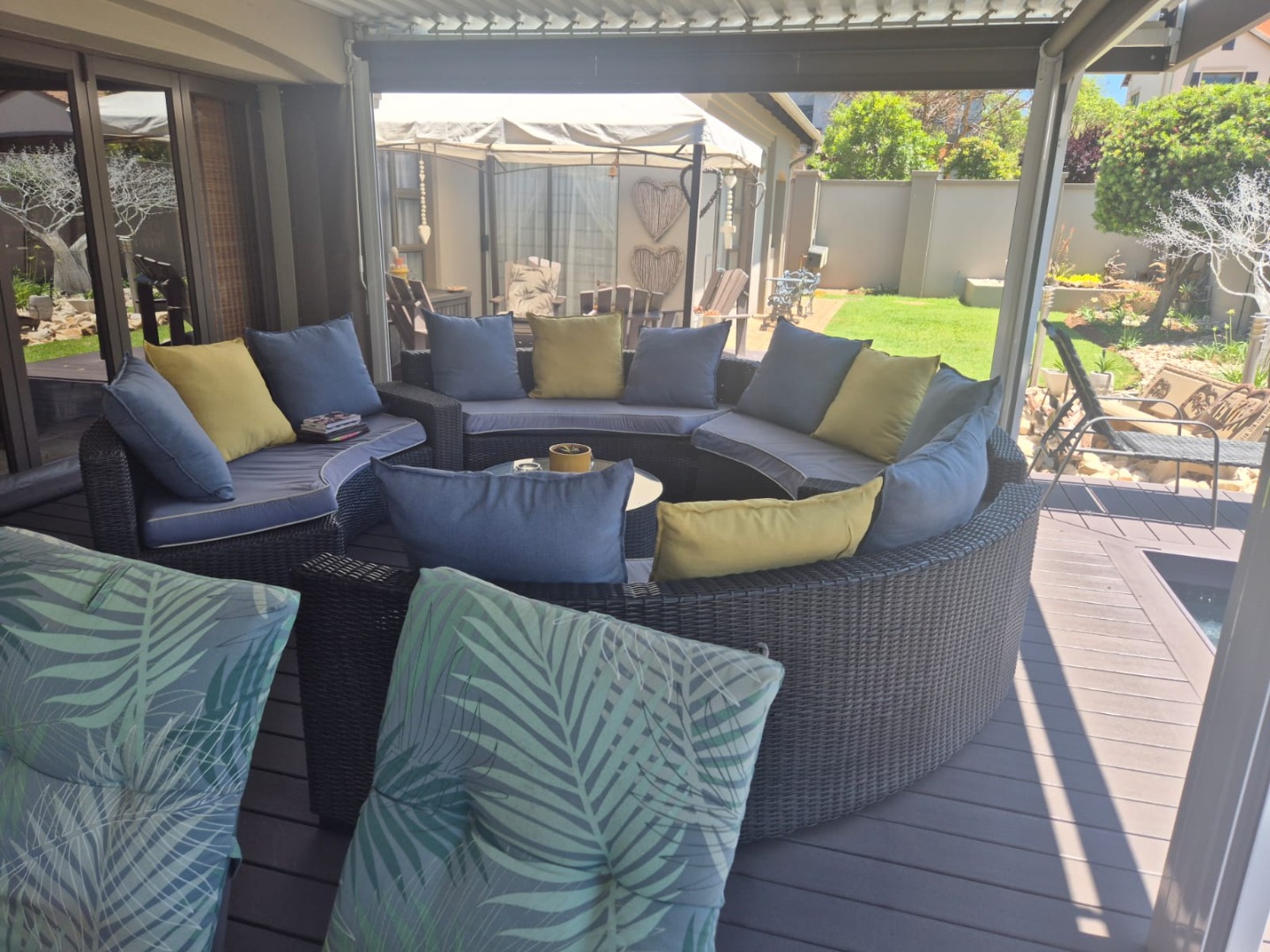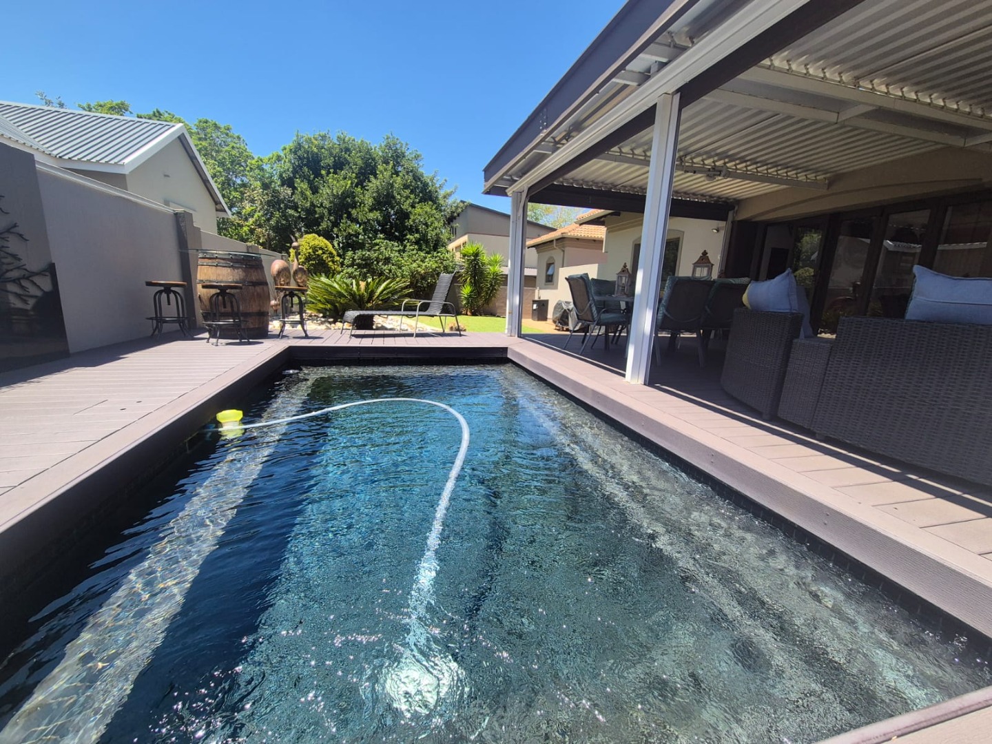 Outdoor living is equally impressive, with a private swimming pool, expansive patio, and a deck providing ample space for relaxation and recreation surrounded by a well maintained garden