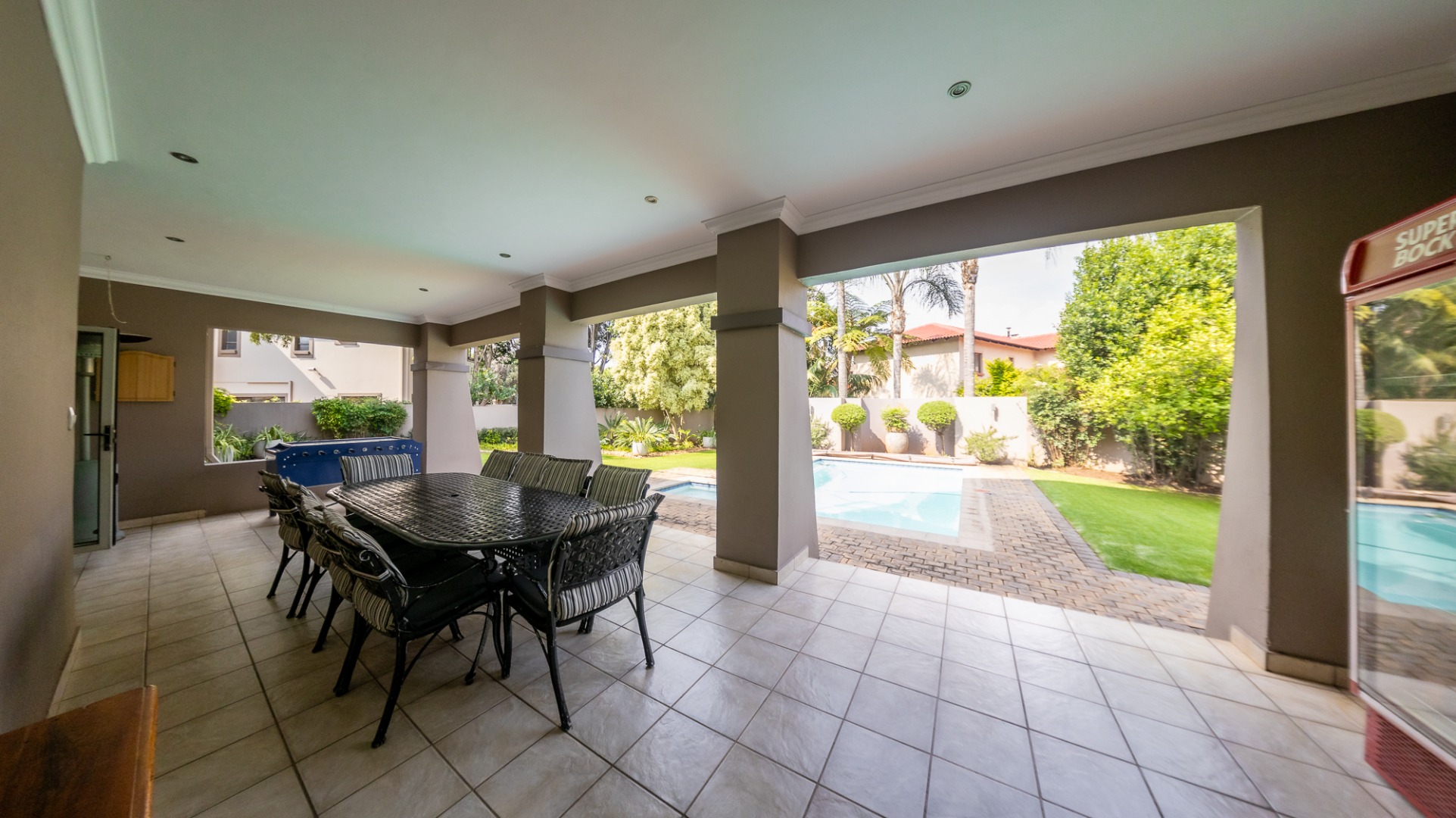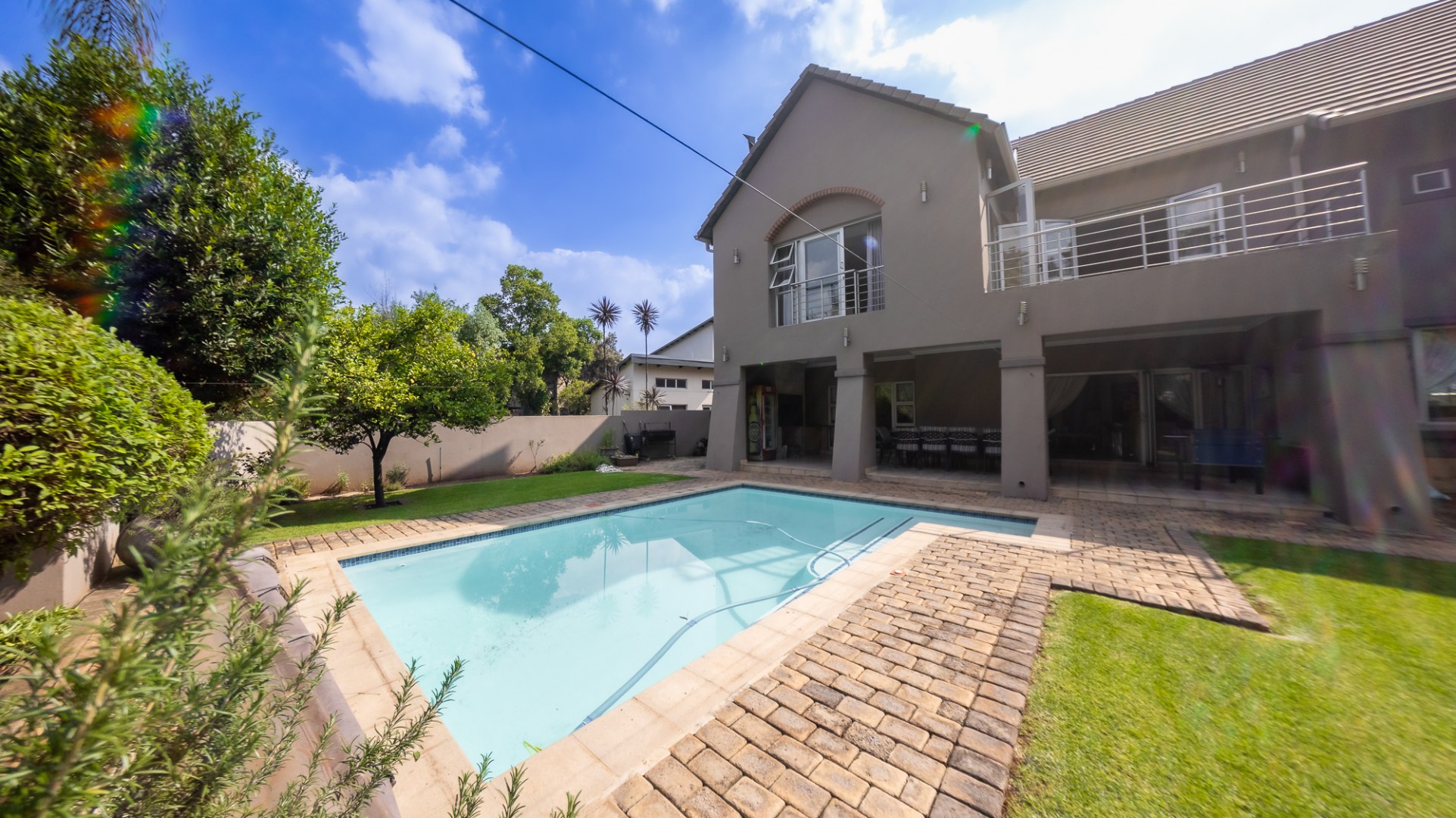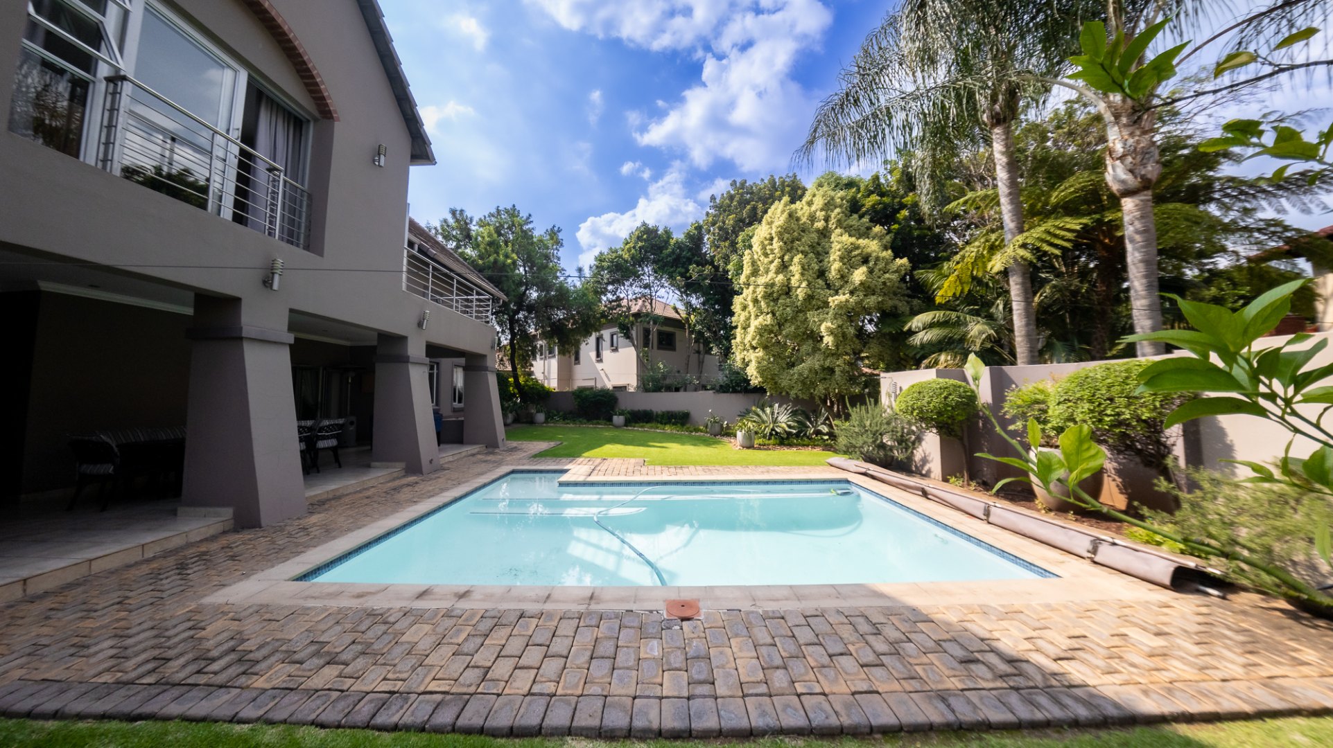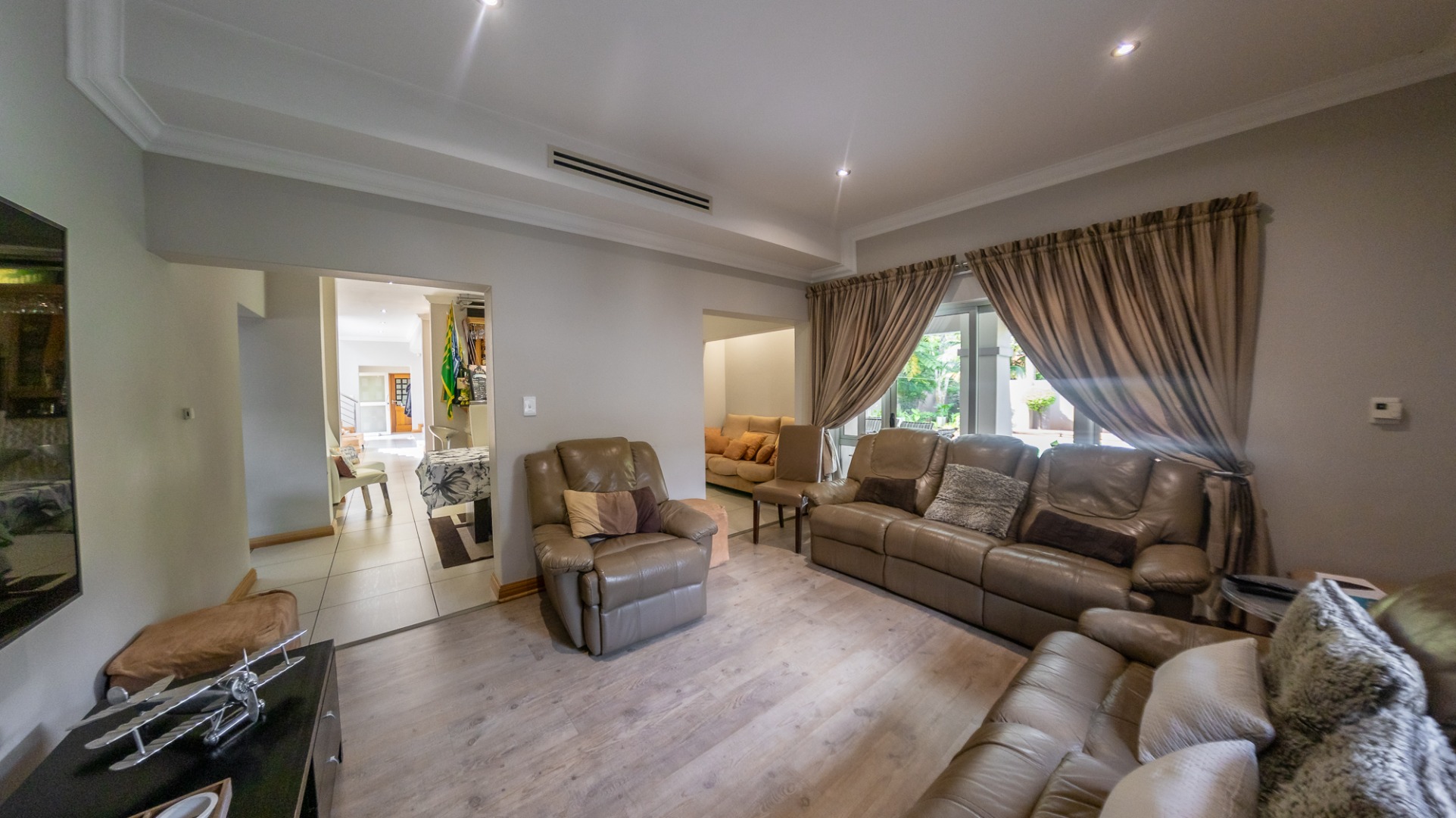 Discover this impressive multi-level contemporary residence nestled within the secure and sought-after Midstream Estate in Centurion, South Africa. Boasting a generous 589 sqm under roof on an 1114 sqm erf, this property immediately captivates with its modern aesthetic, integrated double garage, and expansive paved driveway, offering excellent curb appeal and ample parking. Step inside to a bright and spacious interior, characterized by an open-plan design, high ceilings, and abundant natural light filtering through large windows. The home features three distinct lounge areas and a dedicated dining room, providing versatile spaces for relaxation and entertaining. Modern recessed lighting, clean wood laminate and tiled flooring, and a contemporary staircase with sleek metal railings enhance the sophisticated ambiance. A notable highlight is the well-equipped home bar, perfect for social gatherings, complemented by a cozy fireplace for cooler evenings. This residence offers four comfortable bedrooms and three and a half bathrooms, including two en-suite facilities and a convenient guest toilet. The bathrooms feature modern floating vanities and neutral-toned tiled surfaces, ensuring both style and functionality. A dedicated study provides an ideal space for work or quiet contemplation. Outdoor living is equally impressive, with a private swimming pool set within a large, well-maintained lawn, offering a serene escape. A covered patio provides an ideal spot for al fresco dining and entertaining, while an upper-level balcony extends the outdoor enjoyment. The property also benefits from three garages, staff quarters, and a garden. Security is paramount within this eco-estate and gated community, featuring 24-hour security, a security post, access gates, and electric fencing, ensuring peace of mind. Modern conveniences include air conditioning, a central vacuum system, solar geyser, and fibre connectivity, enhancing comfort and efficiency. Pets are allowed, making this a truly family-friendly environment. Midstream Estate is renowned for its secure, family-oriented lifestyle, offering residents access to a clubhouse and a vibrant community atmosphere within Centurion. Key Features: * 4 Bedrooms, 3.5 Bathrooms (2 En-suite) * 3 Lounges, 1 Dining Room, Study * Private Swimming Pool & Covered Patio * Dedicated Home Bar & Fireplace * 3 Garages & Ample Paved Parking * 24-Hour Security in Gated Eco-Estate * Air Conditioning, Solar Geyser, Fibre Connectivity * Staff Quarters & Garden