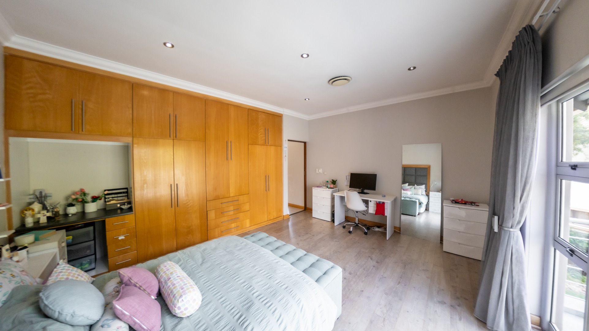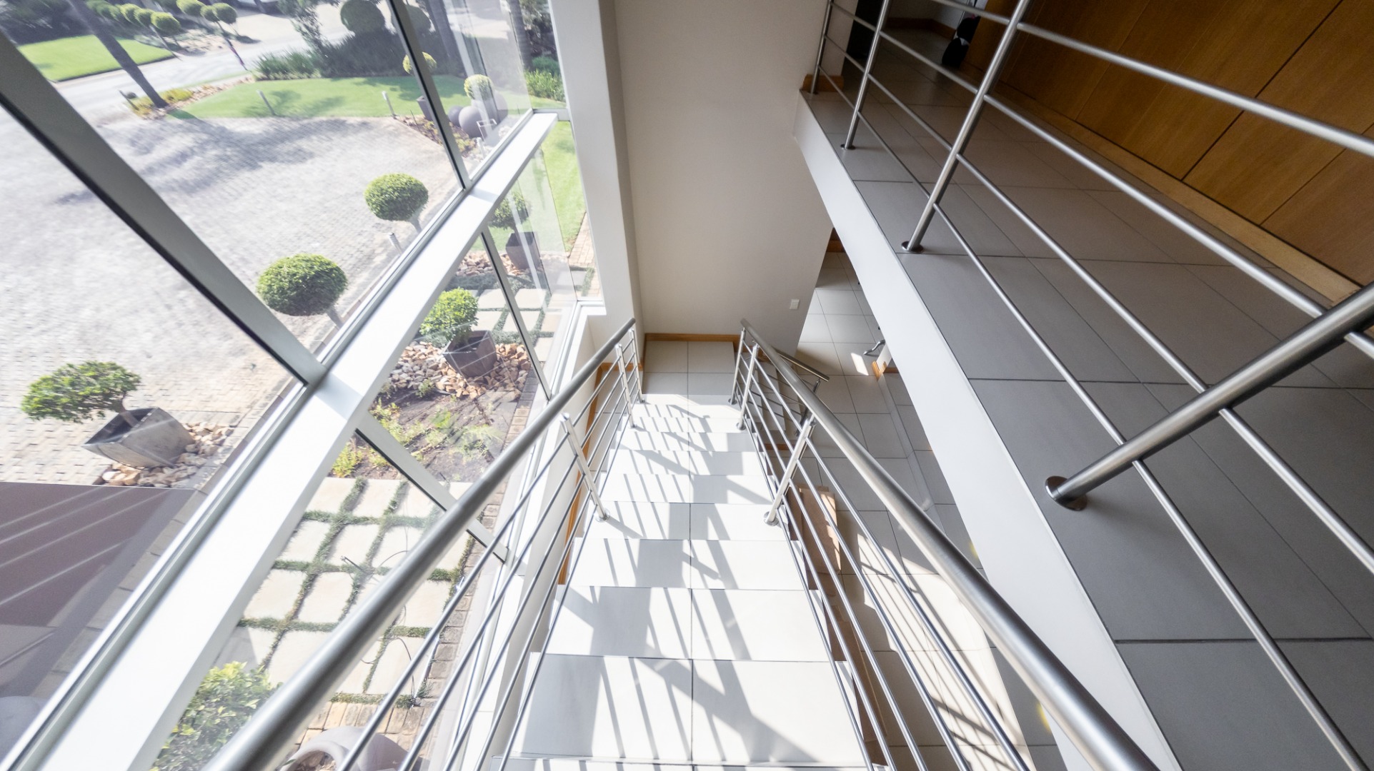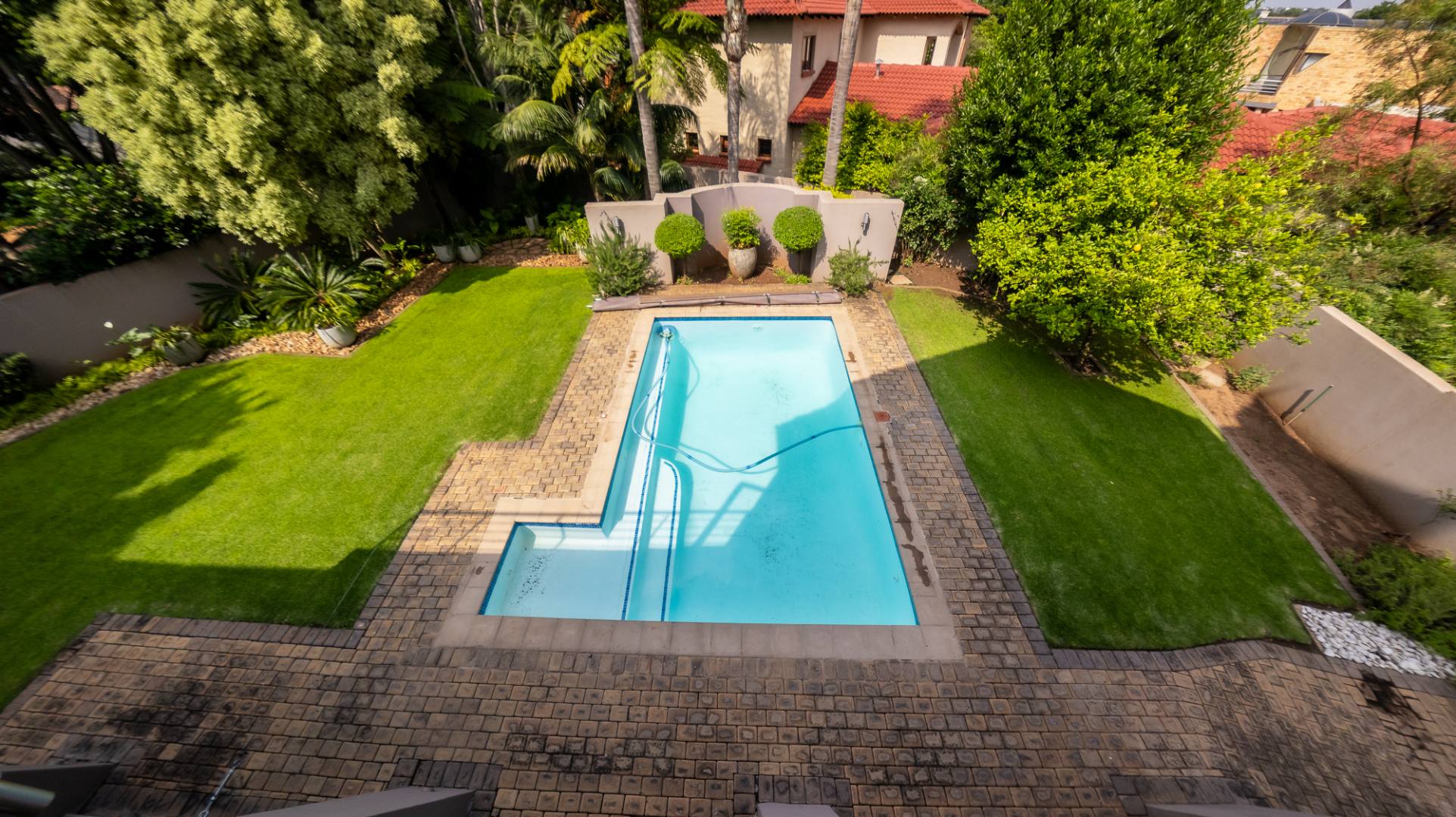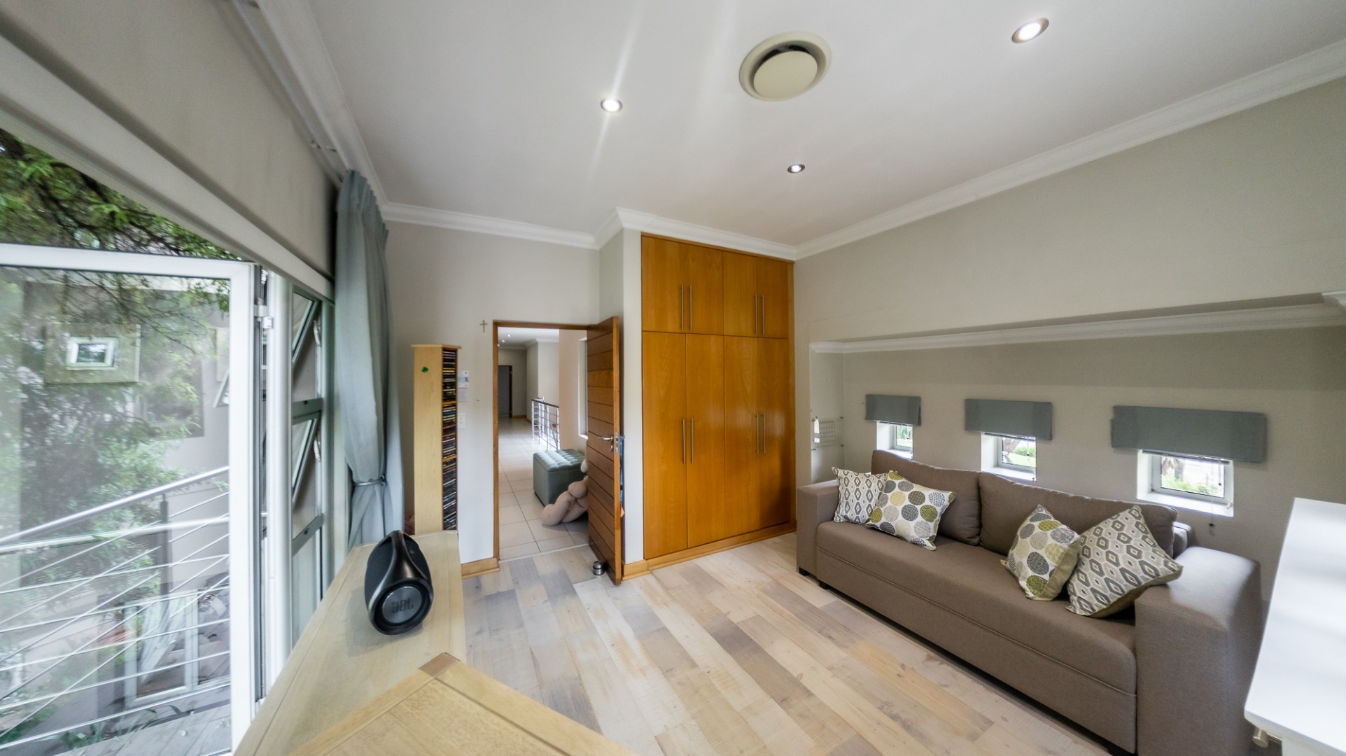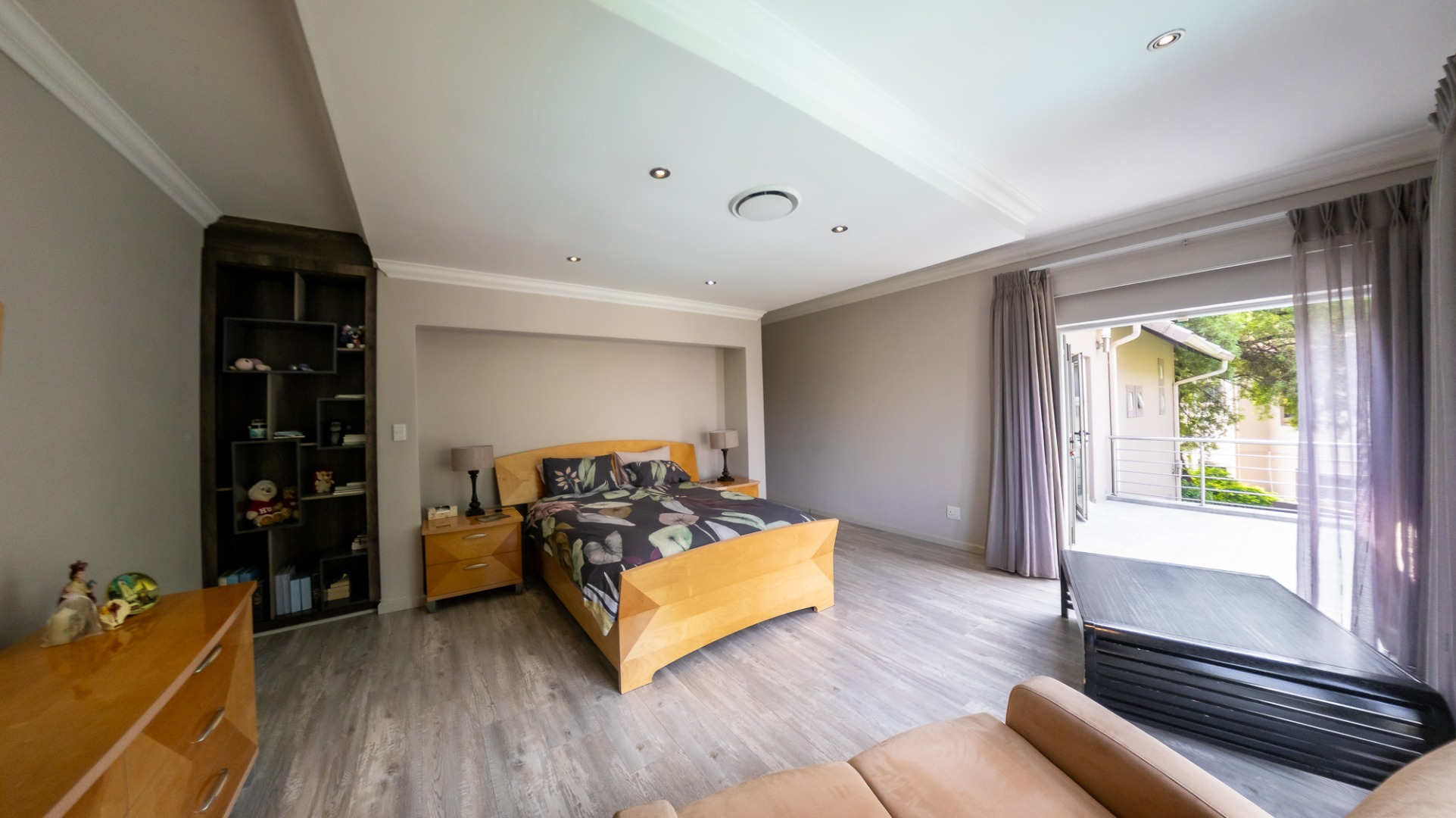 Discover this impressive multi-level contemporary residence nestled within the secure and sought-after Midstream Estate in Centurion, South Africa. Boasting a generous 589 sqm under roof on an 1114 sqm erf, this property immediately captivates with its modern aesthetic, integrated double garage, and expansive paved driveway, offering excellent curb appeal and ample parking. Step inside to a bright and spacious interior, characterized by an open-plan design, high ceilings, and abundant natural light filtering through large windows. The home features three distinct lounge areas and a dedicated dining room, providing versatile spaces for relaxation and entertaining. Modern recessed lighting, clean wood laminate and tiled flooring, and a contemporary staircase with sleek metal railings enhance the sophisticated ambiance. A notable highlight is the well-equipped home bar, perfect for social gatherings, complemented by a cozy fireplace for cooler evenings. This residence offers four comfortable bedrooms and three and a half bathrooms, including two en-suite facilities and a convenient guest toilet. The bathrooms feature modern floating vanities and neutral-toned tiled surfaces, ensuring both style and functionality. A dedicated study provides an ideal space for work or quiet contemplation. Outdoor living is equally impressive, with a private swimming pool set within a large, well-maintained lawn, offering a serene escape. A covered patio provides an ideal spot for al fresco dining and entertaining, while an upper-level balcony extends the outdoor enjoyment. The property also benefits from three garages, staff quarters, and a garden. Security is paramount within this eco-estate and gated community, featuring 24-hour security, a security post, access gates, and electric fencing, ensuring peace of mind. Modern conveniences include air conditioning, a central vacuum system, solar geyser, and fibre connectivity, enhancing comfort and efficiency. Pets are allowed, making this a truly family-friendly environment. Midstream Estate is renowned for its secure, family-oriented lifestyle, offering residents access to a clubhouse and a vibrant community atmosphere within Centurion. Key Features: * 4 Bedrooms, 3.5 Bathrooms (2 En-suite) * 3 Lounges, 1 Dining Room, Study * Private Swimming Pool & Covered Patio * Dedicated Home Bar & Fireplace * 3 Garages & Ample Paved Parking * 24-Hour Security in Gated Eco-Estate * Air Conditioning, Solar Geyser, Fibre Connectivity * Staff Quarters & Garden