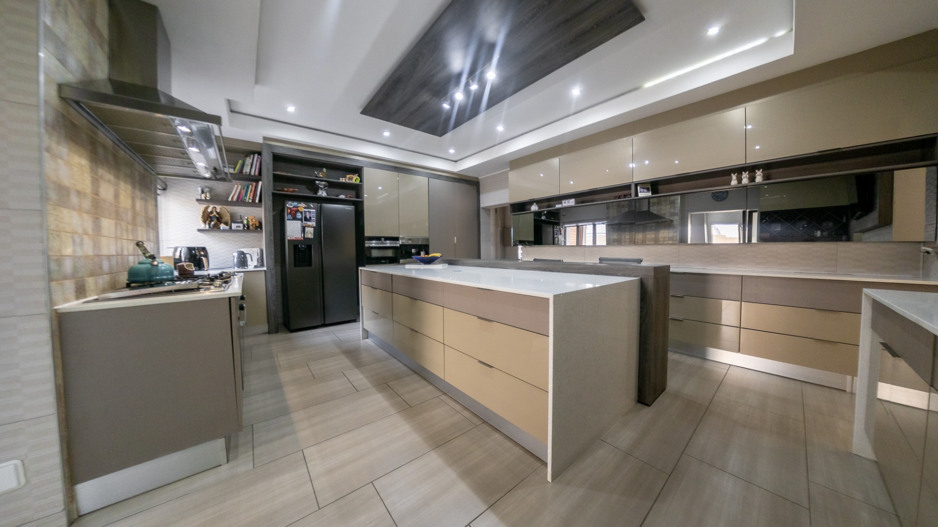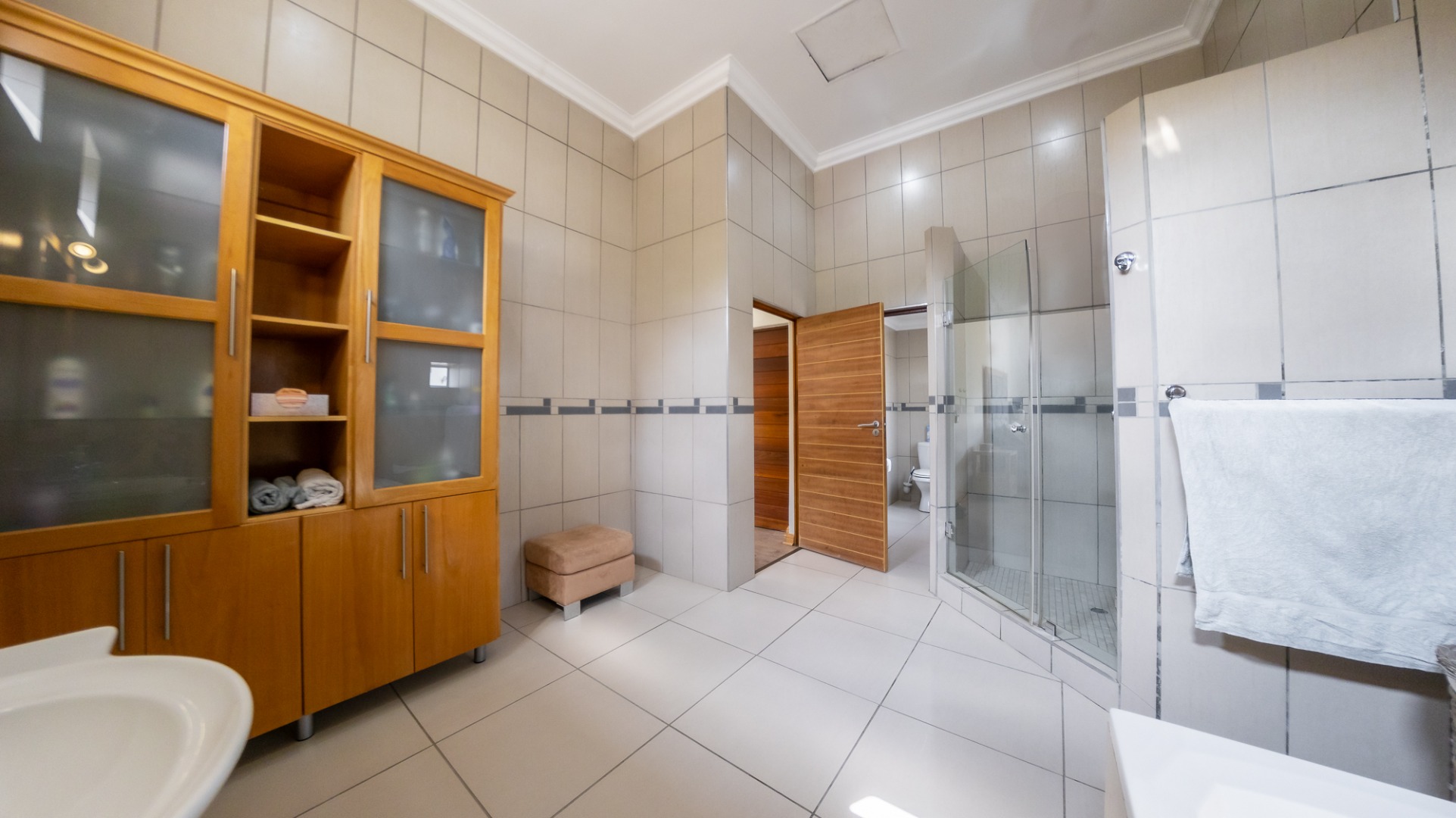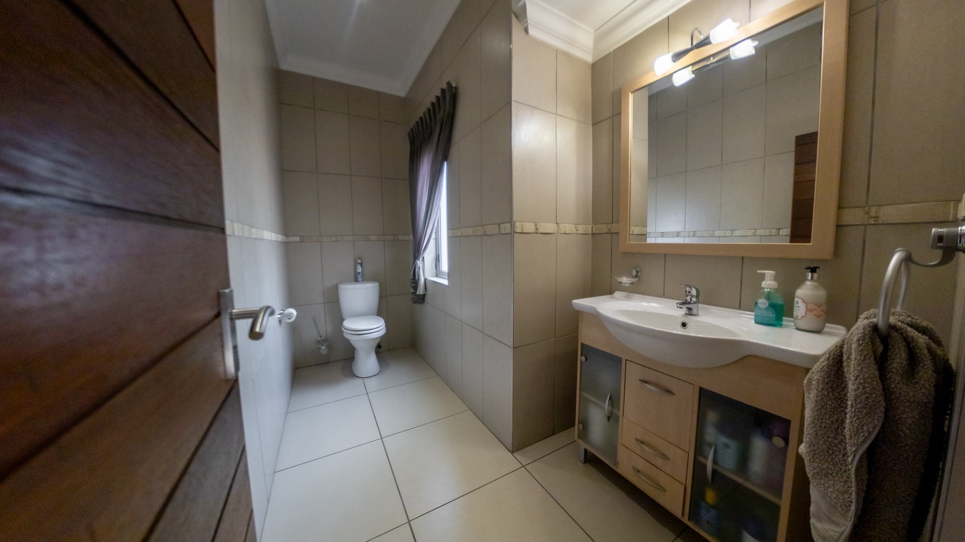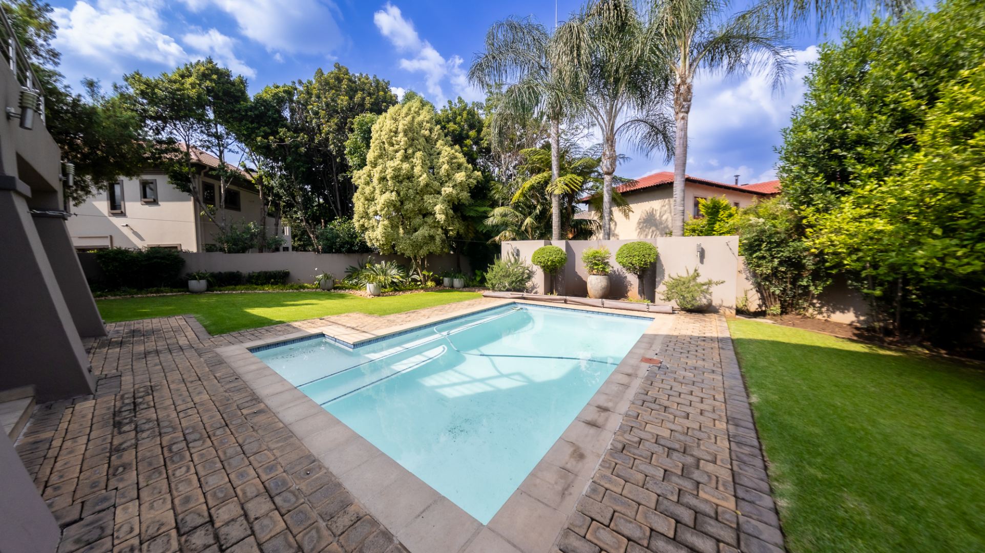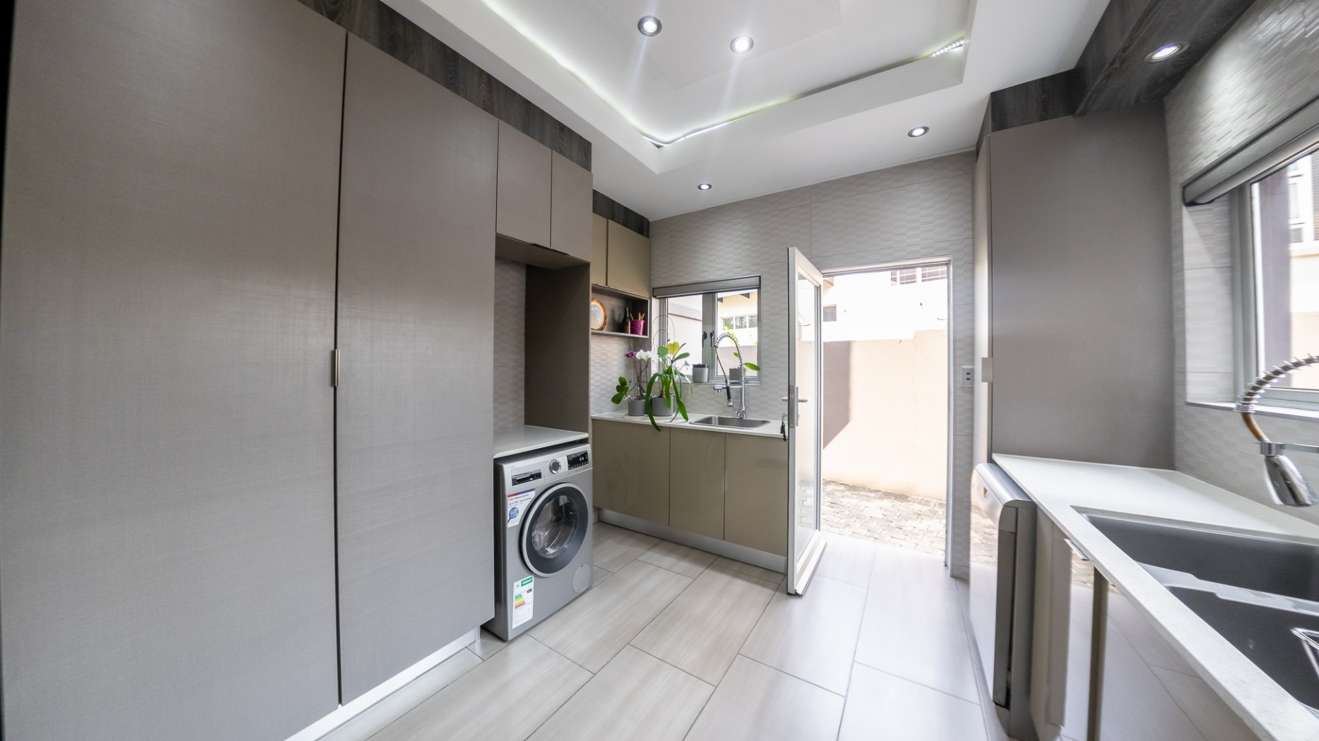 Discover this impressive multi-level contemporary residence nestled within the secure and sought-after Midstream Estate in Centurion, South Africa. Boasting a generous 589 sqm under roof on an 1114 sqm erf, this property immediately captivates with its modern aesthetic, integrated double garage, and expansive paved driveway, offering excellent curb appeal and ample parking. Step inside to a bright and spacious interior, characterized by an open-plan design, high ceilings, and abundant natural light filtering through large windows. The home features three distinct lounge areas and a dedicated dining room, providing versatile spaces for relaxation and entertaining. Modern recessed lighting, clean wood laminate and tiled flooring, and a contemporary staircase with sleek metal railings enhance the sophisticated ambiance. A notable highlight is the well-equipped home bar, perfect for social gatherings, complemented by a cozy fireplace for cooler evenings. This residence offers four comfortable bedrooms and three and a half bathrooms, including two en-suite facilities and a convenient guest toilet. The bathrooms feature modern floating vanities and neutral-toned tiled surfaces, ensuring both style and functionality. A dedicated study provides an ideal space for work or quiet contemplation. Outdoor living is equally impressive, with a private swimming pool set within a large, well-maintained lawn, offering a serene escape. A covered patio provides an ideal spot for al fresco dining and entertaining, while an upper-level balcony extends the outdoor enjoyment. The property also benefits from three garages, staff quarters, and a garden. Security is paramount within this eco-estate and gated community, featuring 24-hour security, a security post, access gates, and electric fencing, ensuring peace of mind. Modern conveniences include air conditioning, a central vacuum system, solar geyser, and fibre connectivity, enhancing comfort and efficiency. Pets are allowed, making this a truly family-friendly environment. Midstream Estate is renowned for its secure, family-oriented lifestyle, offering residents access to a clubhouse and a vibrant community atmosphere within Centurion. Key Features: * 4 Bedrooms, 3.5 Bathrooms (2 En-suite) * 3 Lounges, 1 Dining Room, Study * Private Swimming Pool & Covered Patio * Dedicated Home Bar & Fireplace * 3 Garages & Ample Paved Parking * 24-Hour Security in Gated Eco-Estate * Air Conditioning, Solar Geyser, Fibre Connectivity * Staff Quarters & Garden