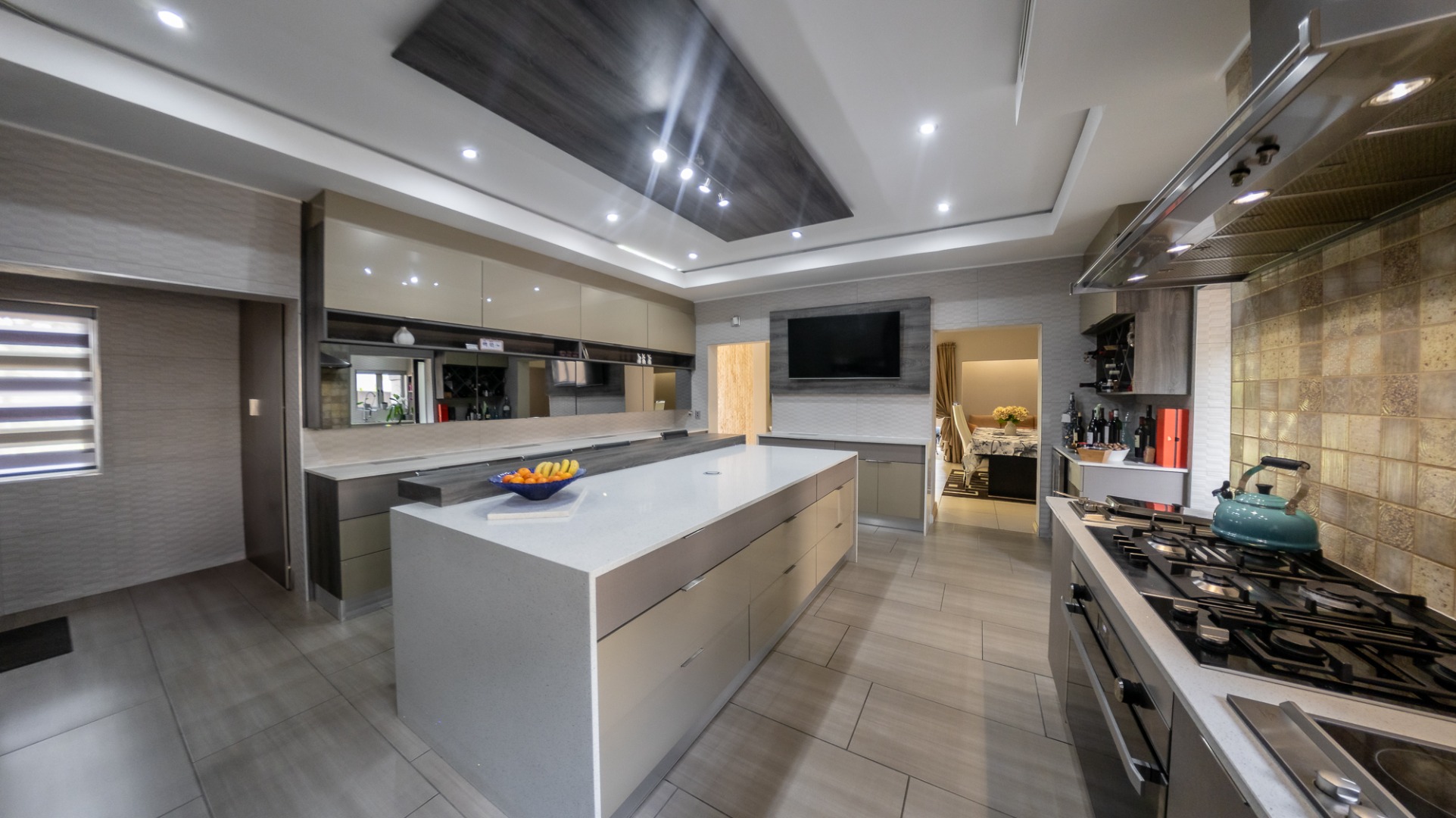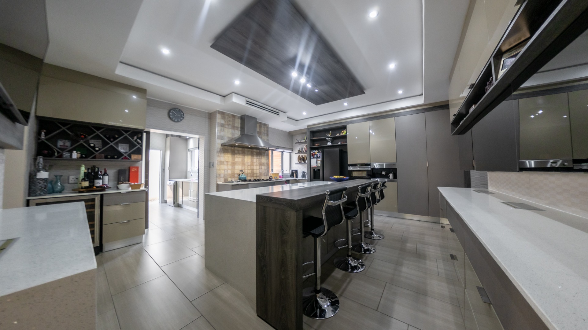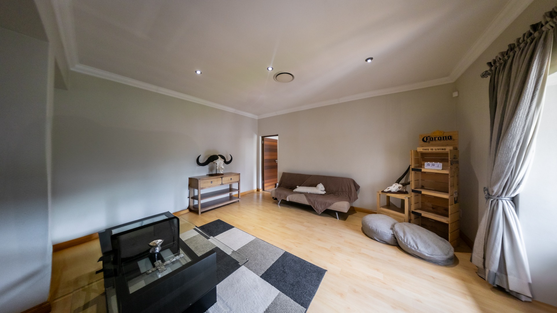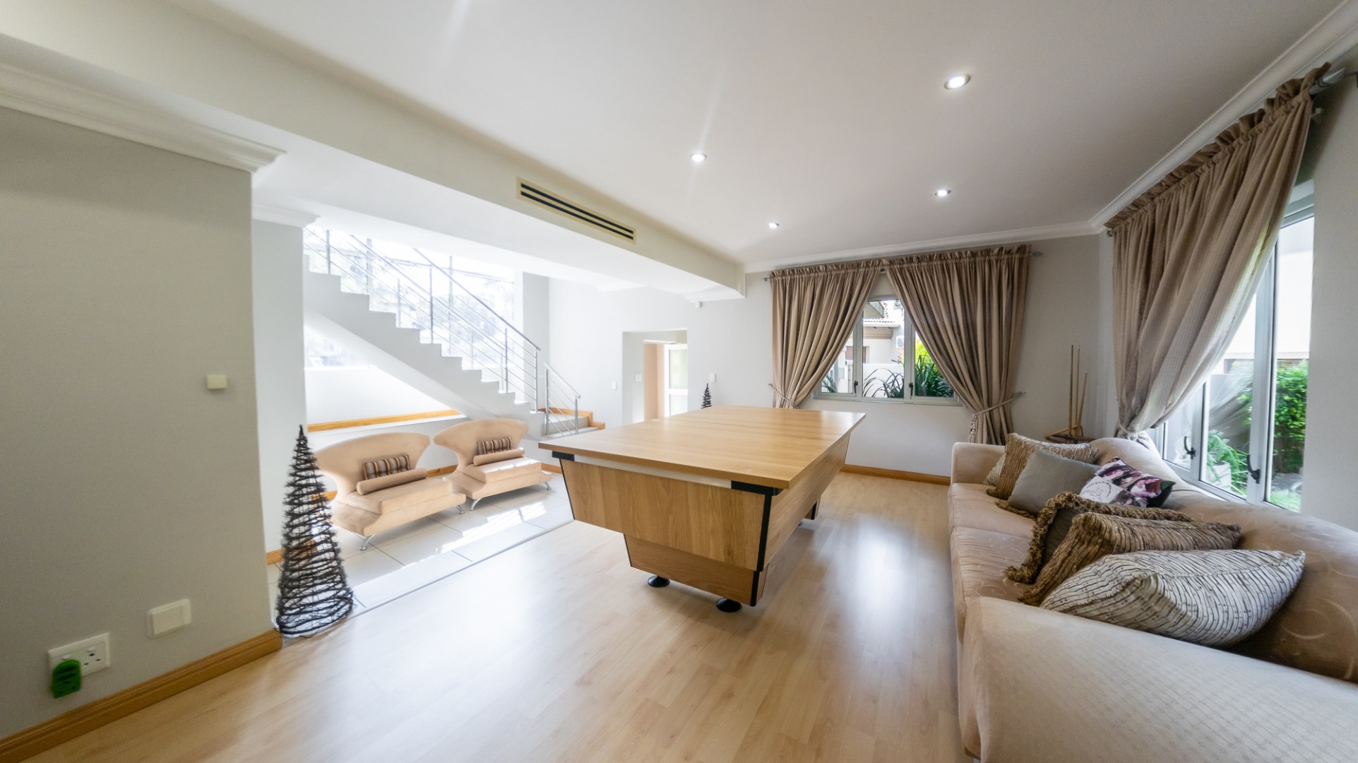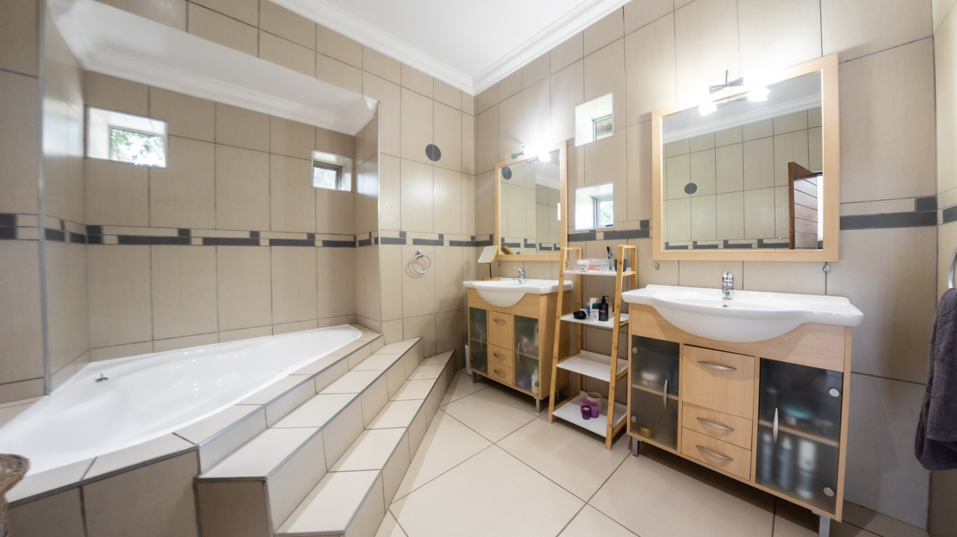 Discover this impressive multi-level contemporary residence nestled within the secure and sought-after Midstream Estate in Centurion, South Africa. Boasting a generous 589 sqm under roof on an 1114 sqm erf, this property immediately captivates with its modern aesthetic, integrated double garage, and expansive paved driveway, offering excellent curb appeal and ample parking. Step inside to a bright and spacious interior, characterized by an open-plan design, high ceilings, and abundant natural light filtering through large windows. The home features three distinct lounge areas and a dedicated dining room, providing versatile spaces for relaxation and entertaining. Modern recessed lighting, clean wood laminate and tiled flooring, and a contemporary staircase with sleek metal railings enhance the sophisticated ambiance. A notable highlight is the well-equipped home bar, perfect for social gatherings, complemented by a cozy fireplace for cooler evenings. This residence offers four comfortable bedrooms and three and a half bathrooms, including two en-suite facilities and a convenient guest toilet. The bathrooms feature modern floating vanities and neutral-toned tiled surfaces, ensuring both style and functionality. A dedicated study provides an ideal space for work or quiet contemplation. Outdoor living is equally impressive, with a private swimming pool set within a large, well-maintained lawn, offering a serene escape. A covered patio provides an ideal spot for al fresco dining and entertaining, while an upper-level balcony extends the outdoor enjoyment. The property also benefits from three garages, staff quarters, and a garden. Security is paramount within this eco-estate and gated community, featuring 24-hour security, a security post, access gates, and electric fencing, ensuring peace of mind. Modern conveniences include air conditioning, a central vacuum system, solar geyser, and fibre connectivity, enhancing comfort and efficiency. Pets are allowed, making this a truly family-friendly environment. Midstream Estate is renowned for its secure, family-oriented lifestyle, offering residents access to a clubhouse and a vibrant community atmosphere within Centurion. Key Features: * 4 Bedrooms, 3.5 Bathrooms (2 En-suite) * 3 Lounges, 1 Dining Room, Study * Private Swimming Pool & Covered Patio * Dedicated Home Bar & Fireplace * 3 Garages & Ample Paved Parking * 24-Hour Security in Gated Eco-Estate * Air Conditioning, Solar Geyser, Fibre Connectivity * Staff Quarters & Garden