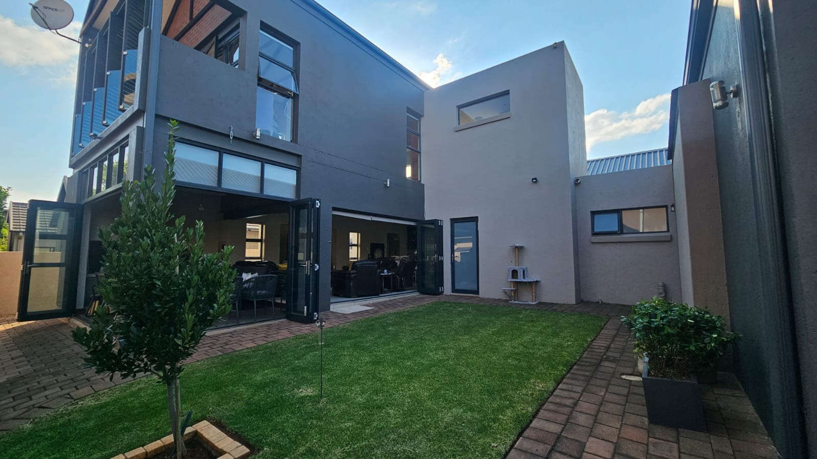 Discover this exceptional 4-bedroom residence nestled within the secure and sought-after Midstream Estate in Centurion. Boasting a generous floor size of 290 sqm on a 501 sqm erf, this home offers a harmonious blend of comfort and modern living. An inviting entrance hall leads into an open-plan layout, featuring a spacious lounge, a dedicated dining room, and an additional family TV room, providing ample space for relaxation and entertainment. The well-appointed kitchen is central to the living areas, ensuring seamless interaction. Each of the four bedrooms is complemented by its own en-suite bathroom, offering privacy and convenience for all residents. Outdoor living is enhanced by a private garden, a welcoming patio, and a built-in braai, perfect for alfresco dining. A balcony provides an elevated space to enjoy the surroundings. The property also includes practical amenities such as a laundry, storage, and staff quarters, catering to every household need. Pets are permitted, making this an ideal family home. Security is paramount within this gated community and security estate, featuring 24-hour security, an access gate, security post, and security gate, all located in a peaceful cul-de-sac. Modern conveniences include fibre connectivity, a battery inverter, and solar panels, ensuring energy efficiency and uninterrupted power supply. Central heating adds to the comfort, while access to medical care within the estate provides peace of mind. Midstream Estate is a prestigious residential area in Centurion, South Africa, renowned for its secure environment and family-friendly amenities. It offers a tranquil lifestyle with convenient access to urban facilities. Key Features: * 4 Bedrooms, 4 En-suite Bathrooms * Open-plan Living with Family TV Room * Patio with Built-in Braai & Garden * Balcony & Staff Quarters * 2 Garages * 24-Hour Security Estate * Fibre, Solar Panels & Inverter * Central Heating * Pet-Friendly