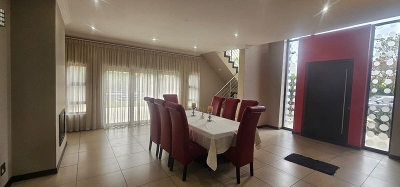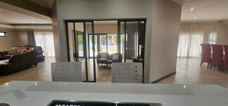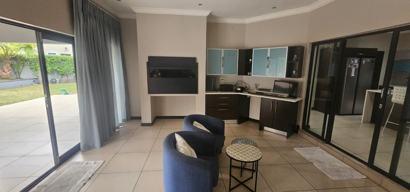 Step through a striking double-volume entrance into open-plan living areas that flow effortlessly from the formal lounge and dining area to a stylish braai room—perfect for entertaining. Stacking doors open to a covered patio, pool, and lush garden, ideal for year-round enjoyment.
