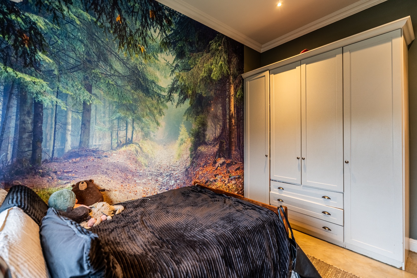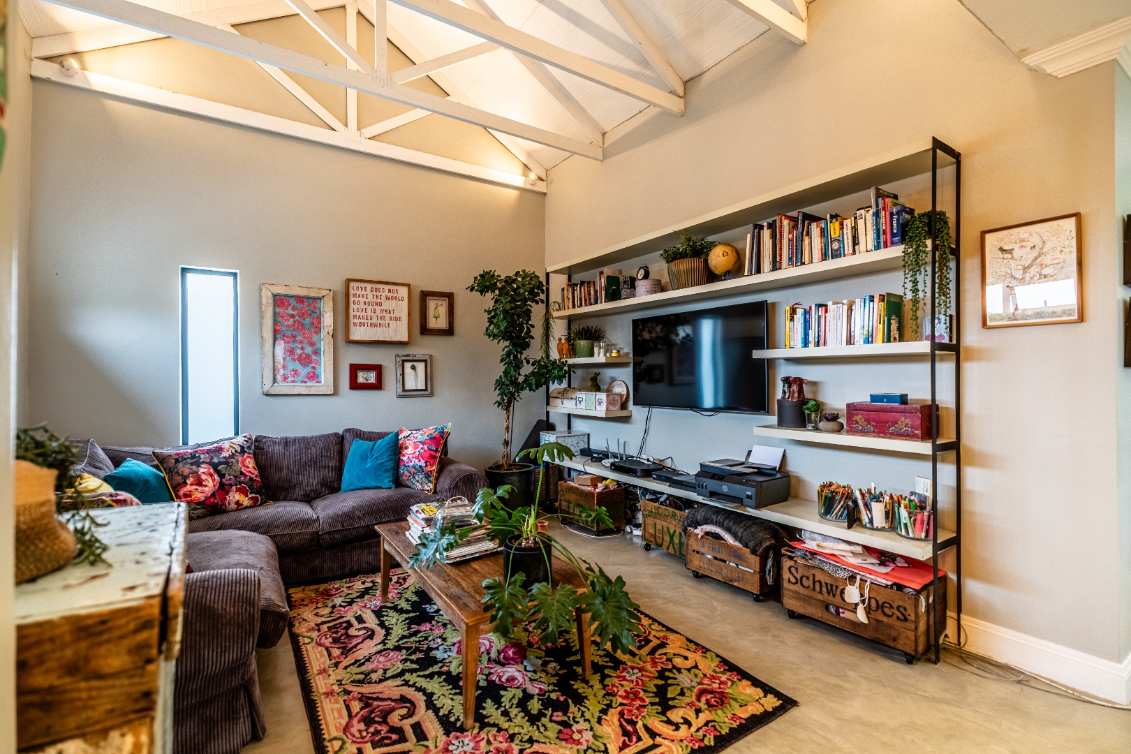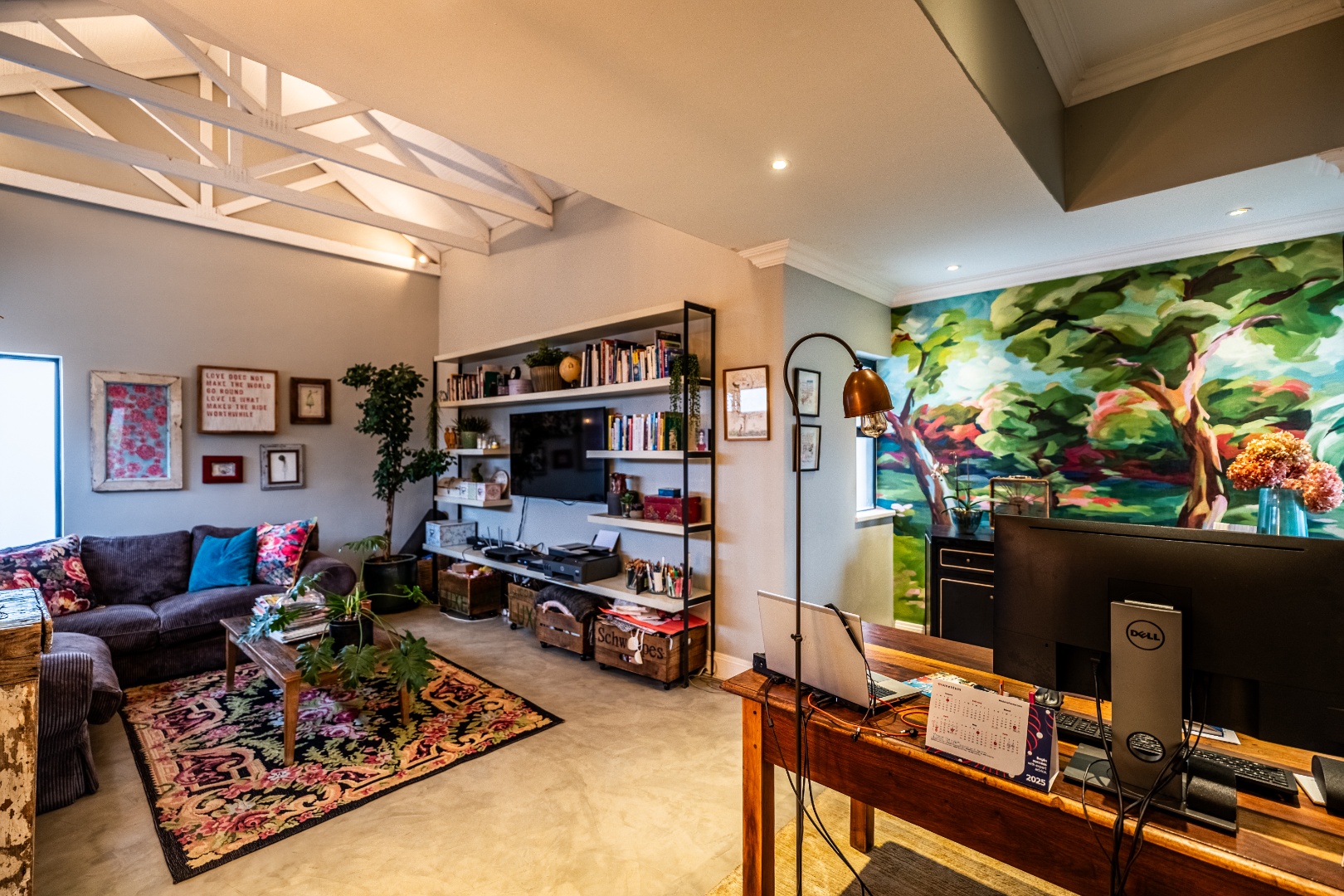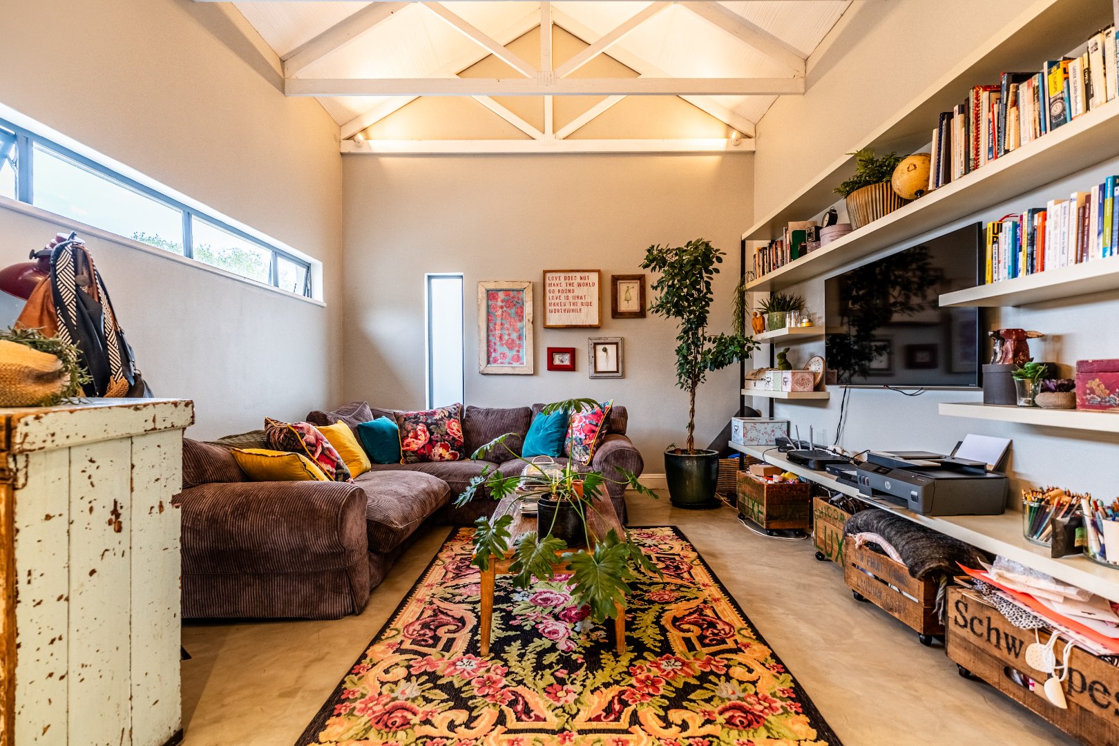 Two additional spacious bedrooms with built in cupboards, sharing a full bathroom, a dedicated study nook area and an additional lounge with exposed trussers and built in wall unit for added versatility completes the picture.