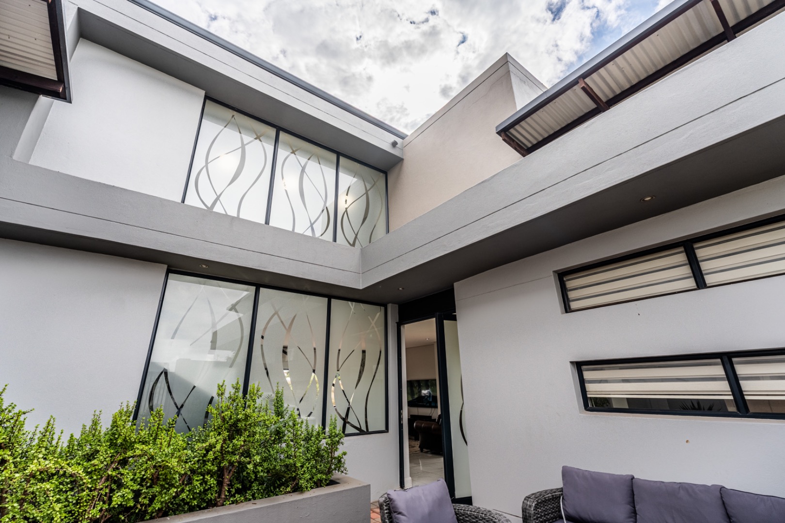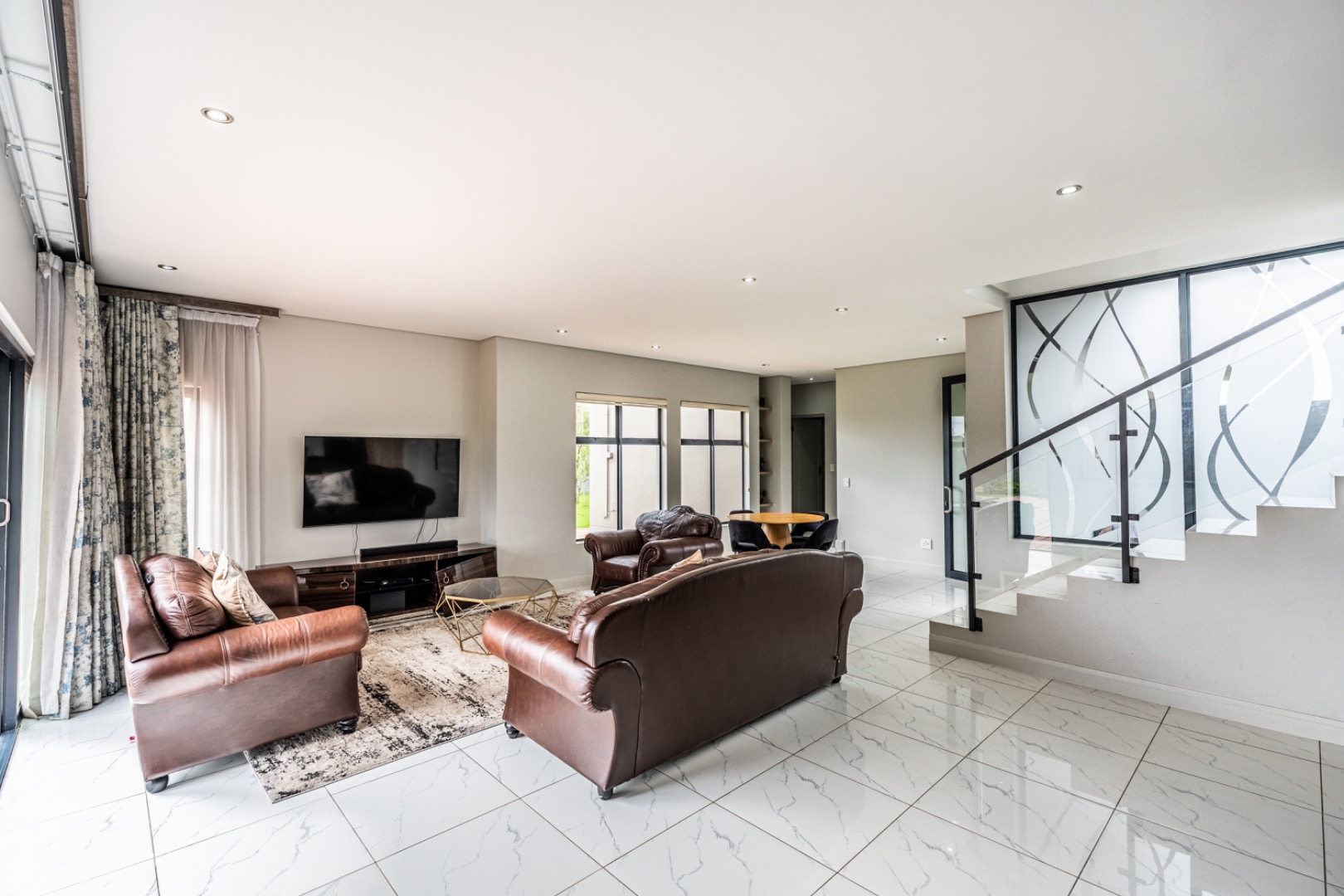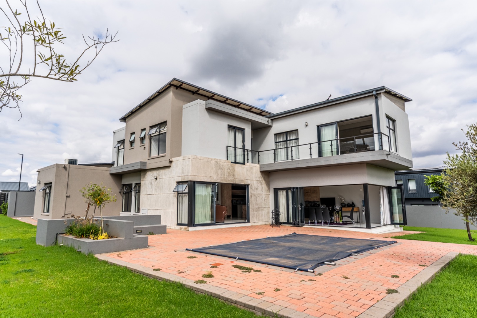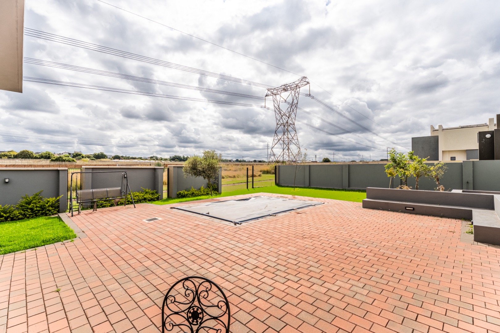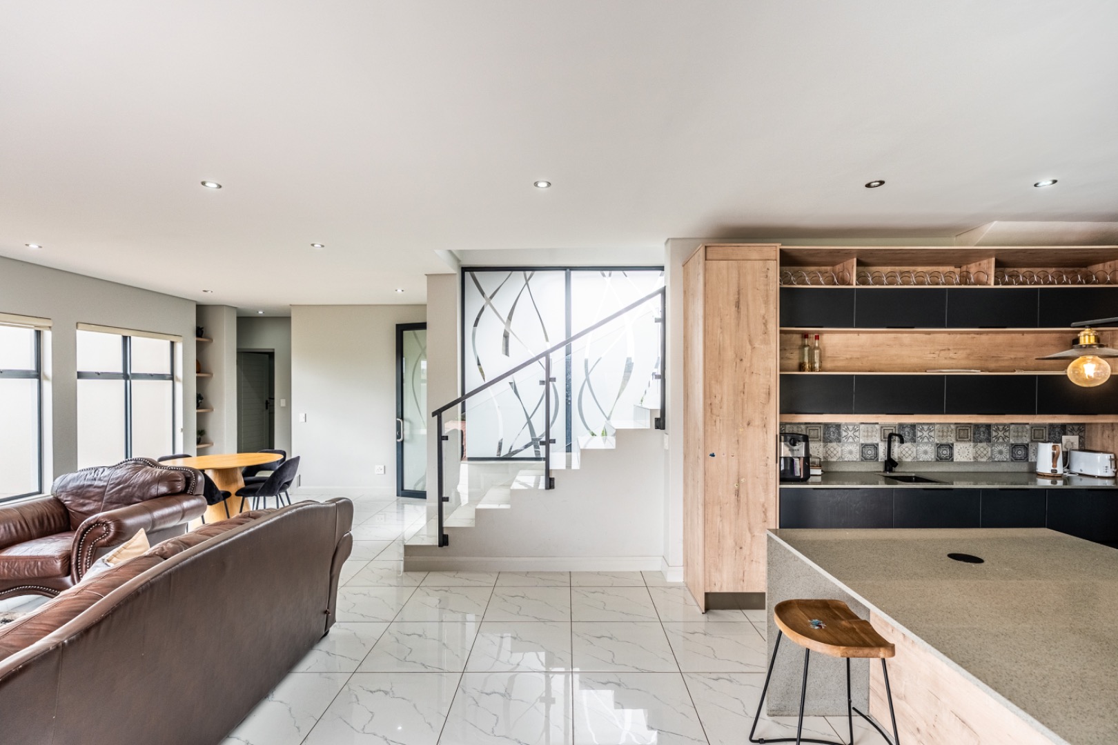 - Open-plan dining and lounge area seamlessly connects to an enclosed patio, complete with stacker doors that open onto a large stand. Enjoy the sparkling pool, boma area, and a built-in braai for all-season entertainment.