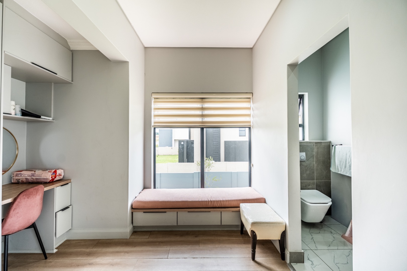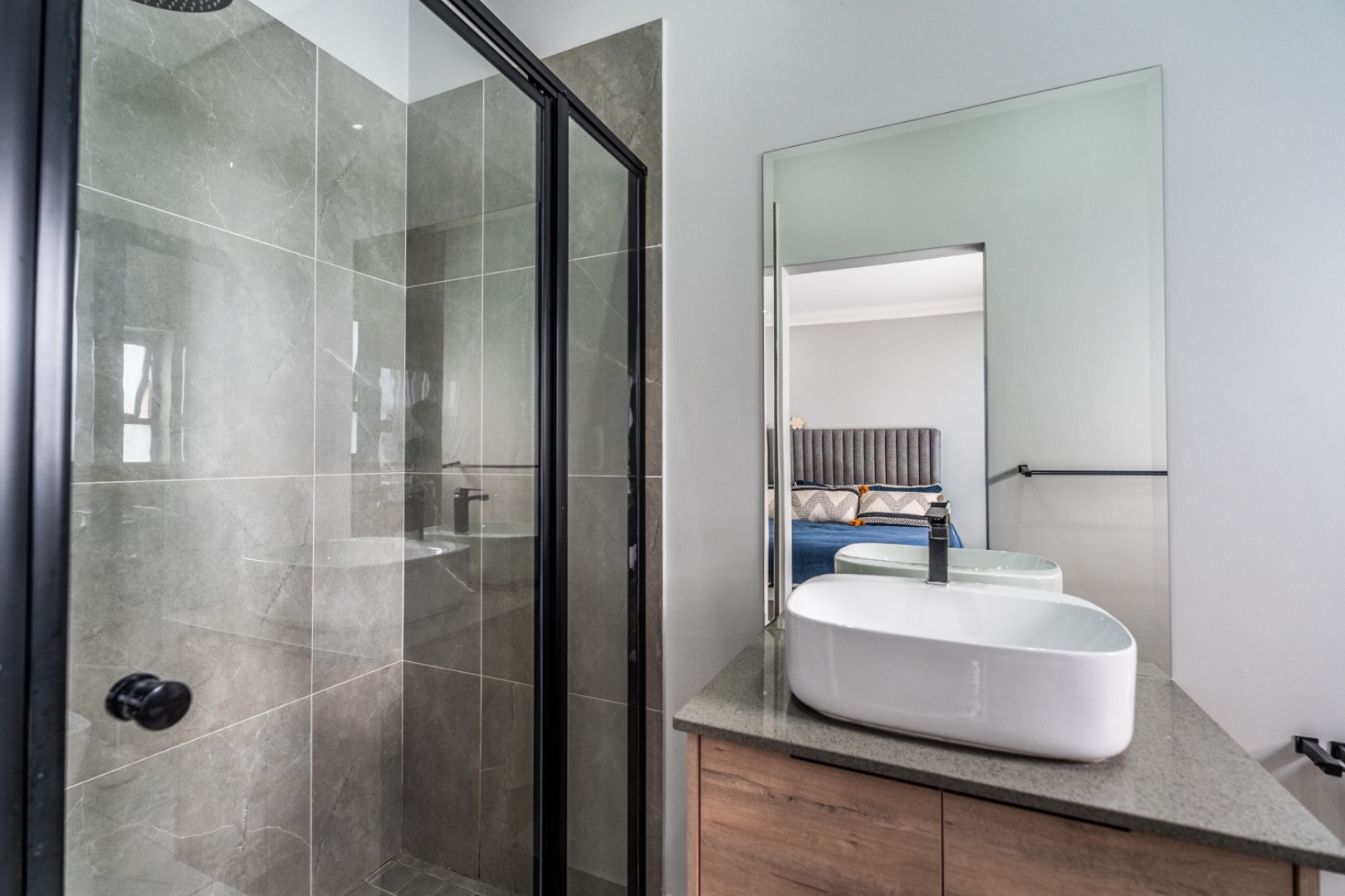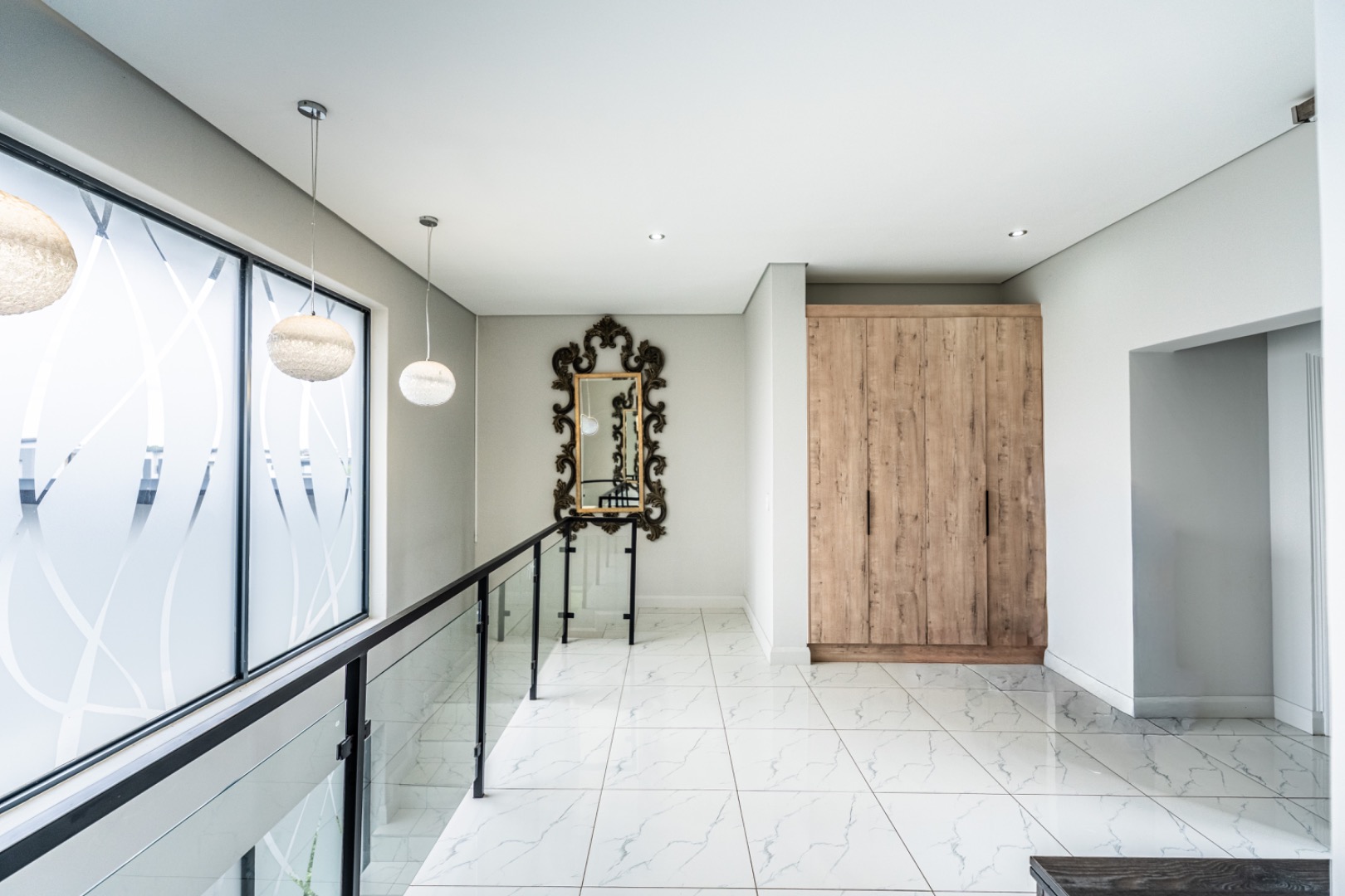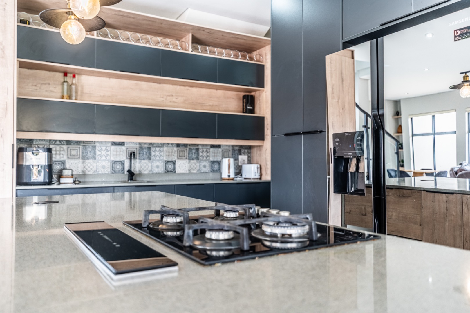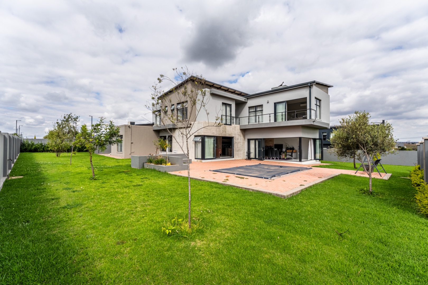 - Open-plan dining and lounge area seamlessly connects to an enclosed patio, complete with stacker doors that open onto a large stand. Enjoy the sparkling pool, boma area, and a built-in braai for all-season entertainment.