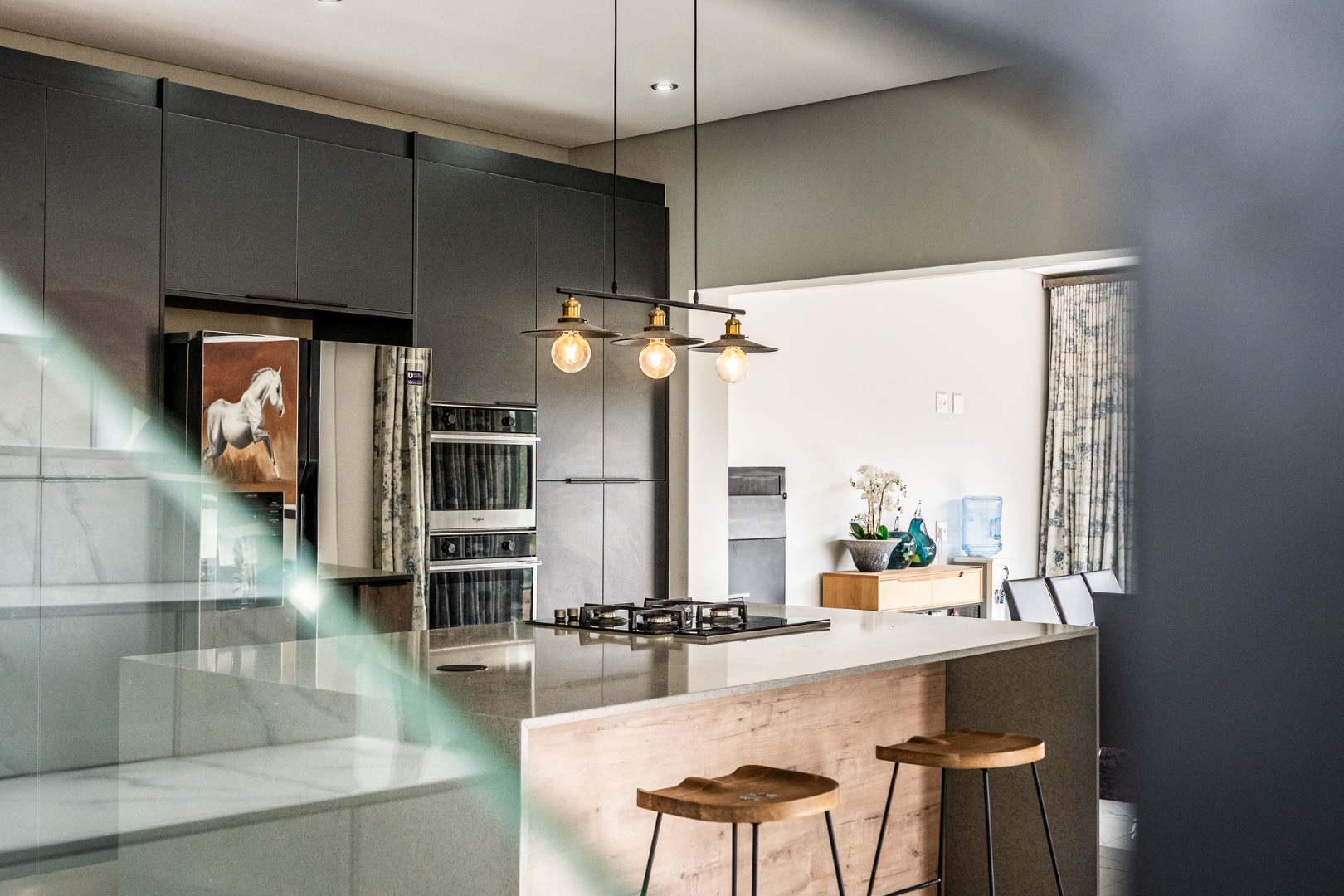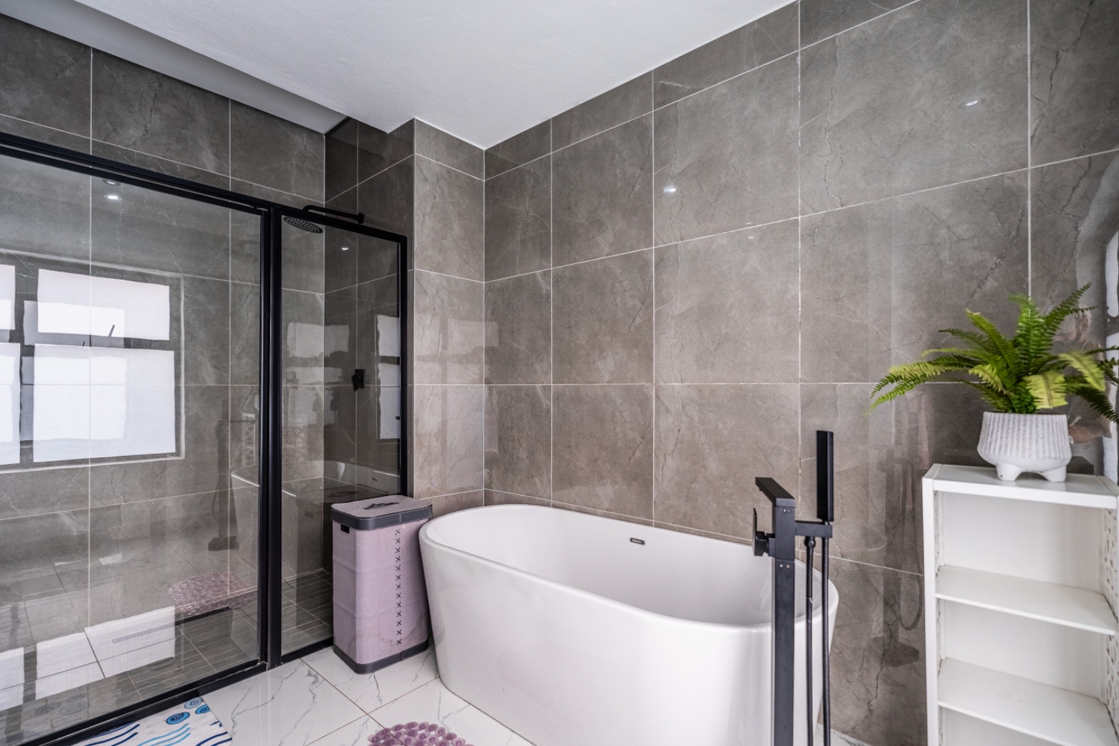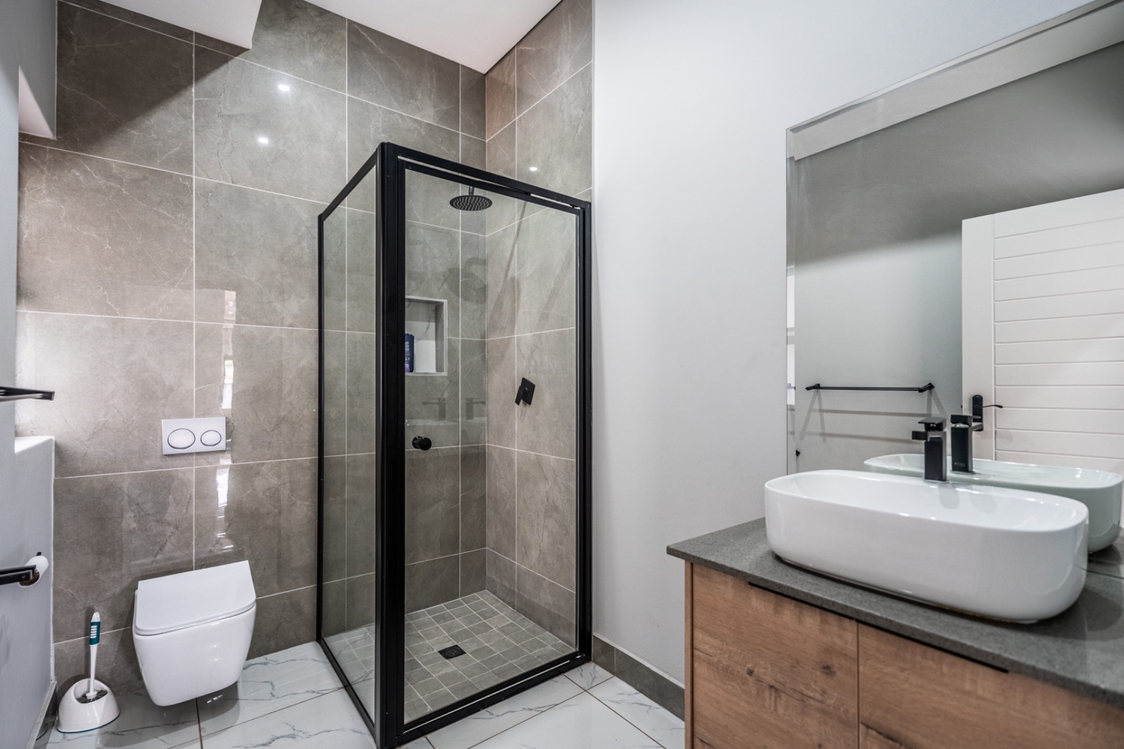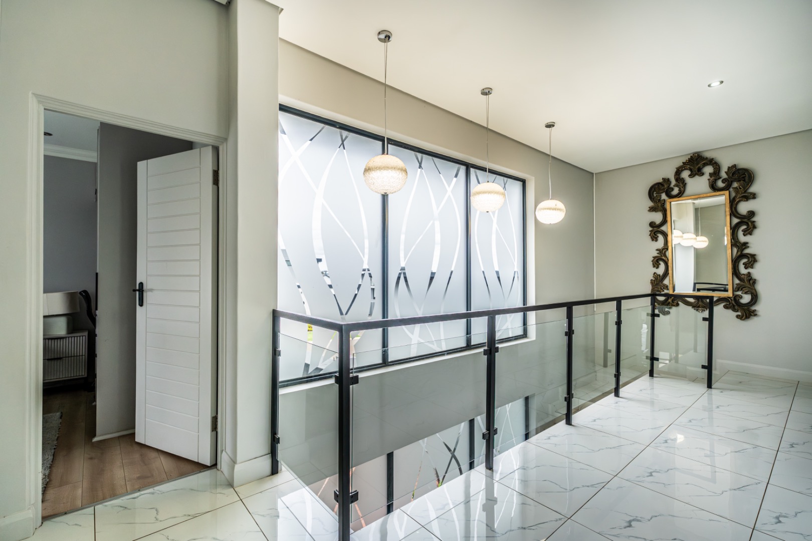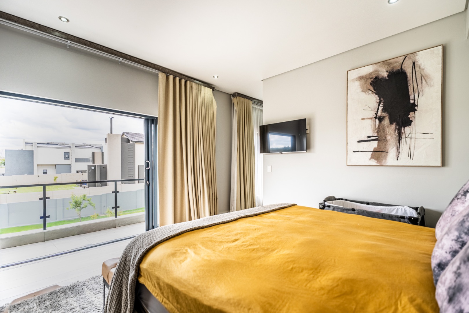 - Open-plan dining and lounge area seamlessly connects to an enclosed patio, complete with stacker doors that open onto a large stand. Enjoy the sparkling pool, boma area, and a built-in braai for all-season entertainment.