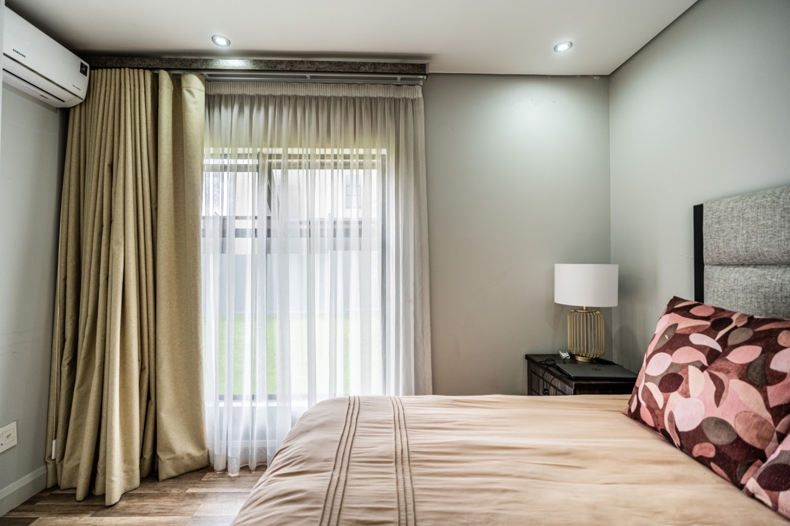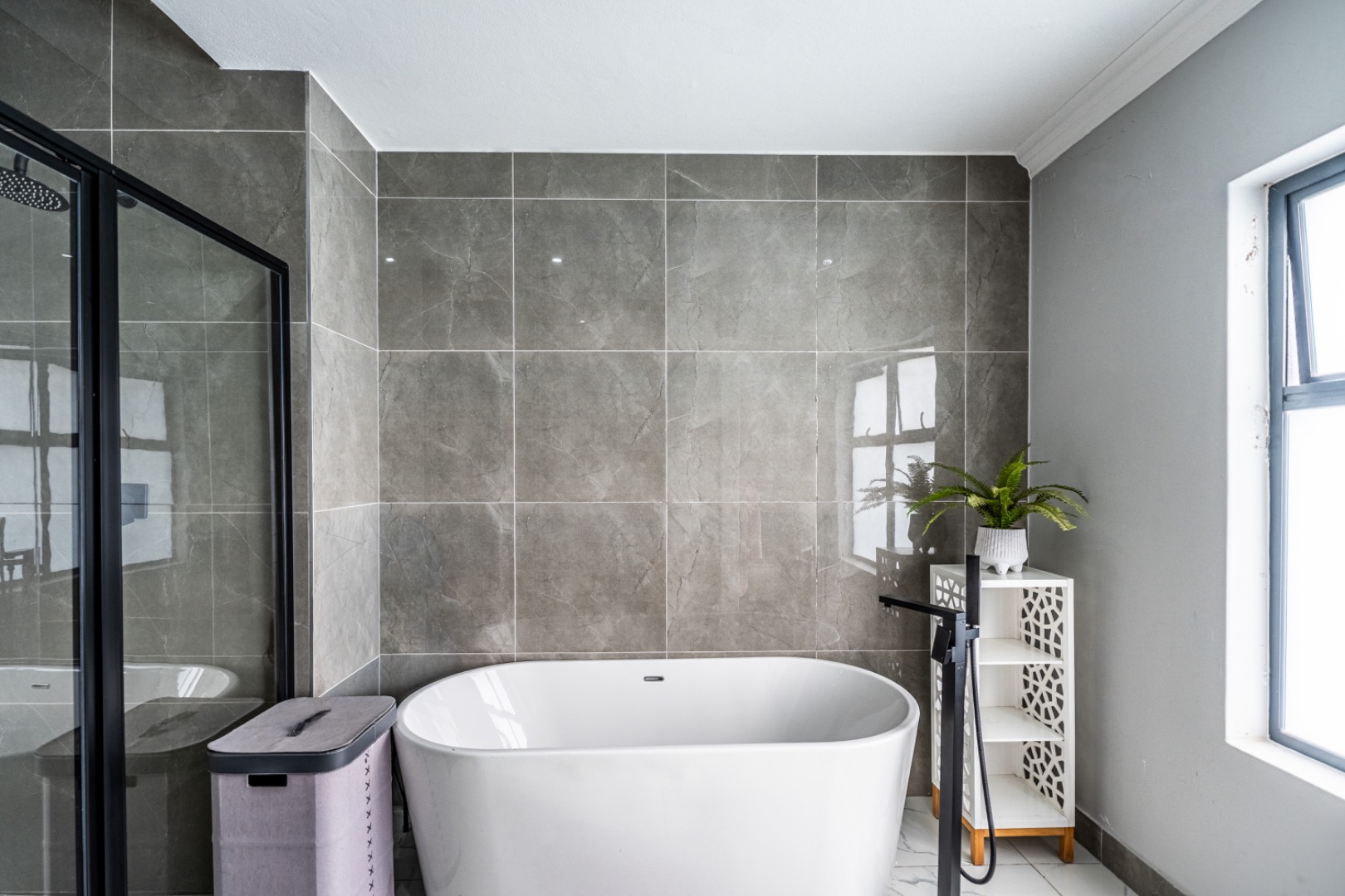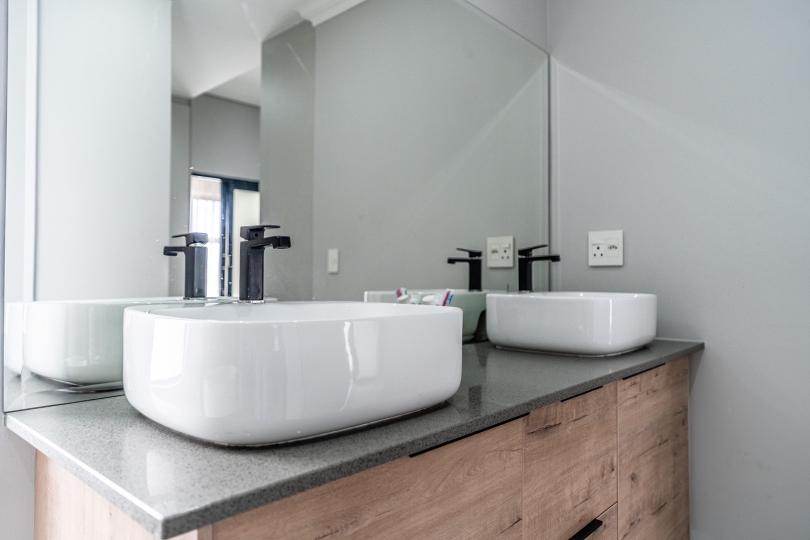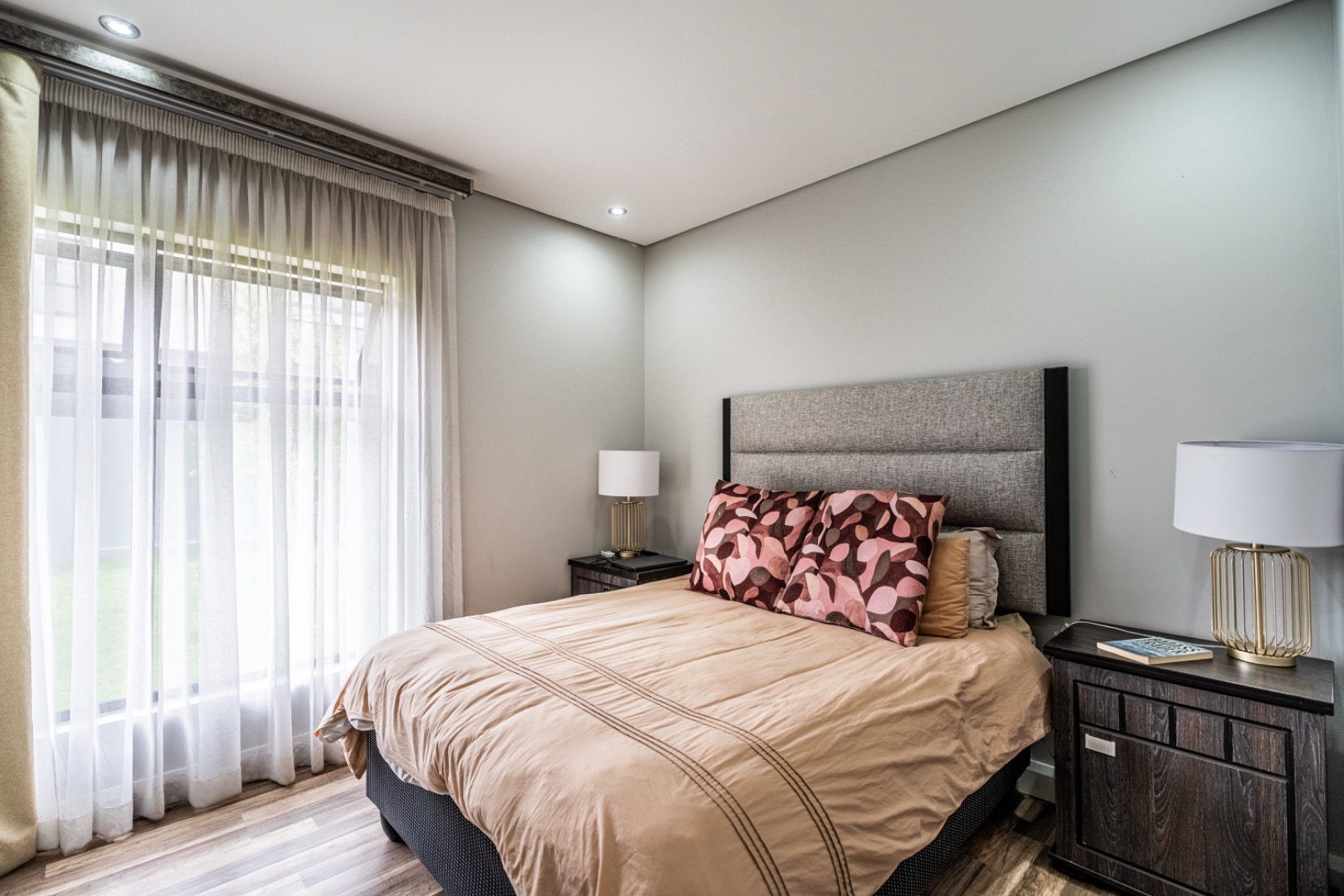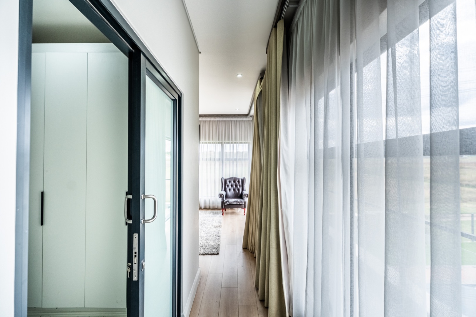 - Open-plan dining and lounge area seamlessly connects to an enclosed patio, complete with stacker doors that open onto a large stand. Enjoy the sparkling pool, boma area, and a built-in braai for all-season entertainment.