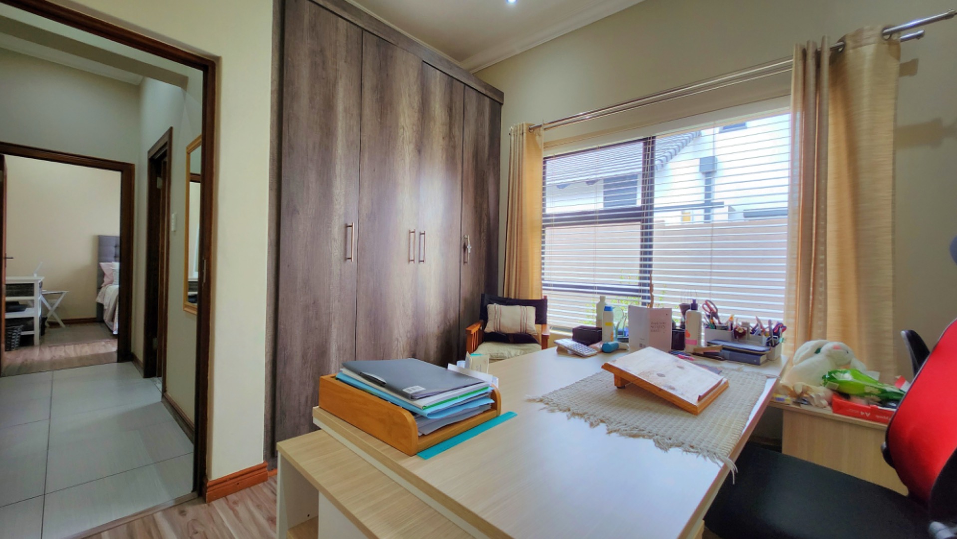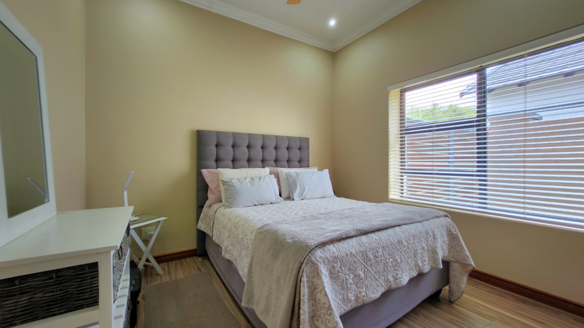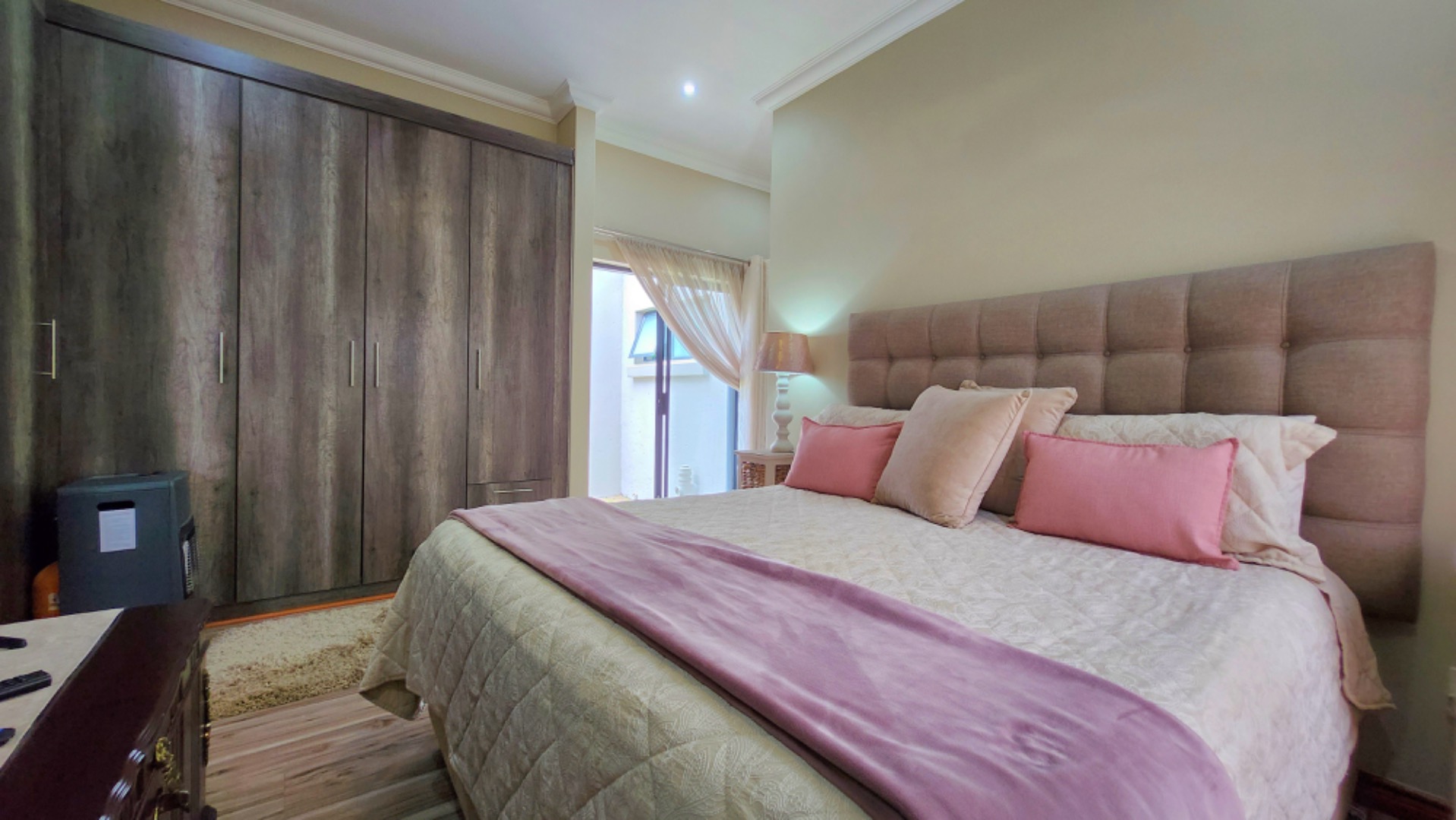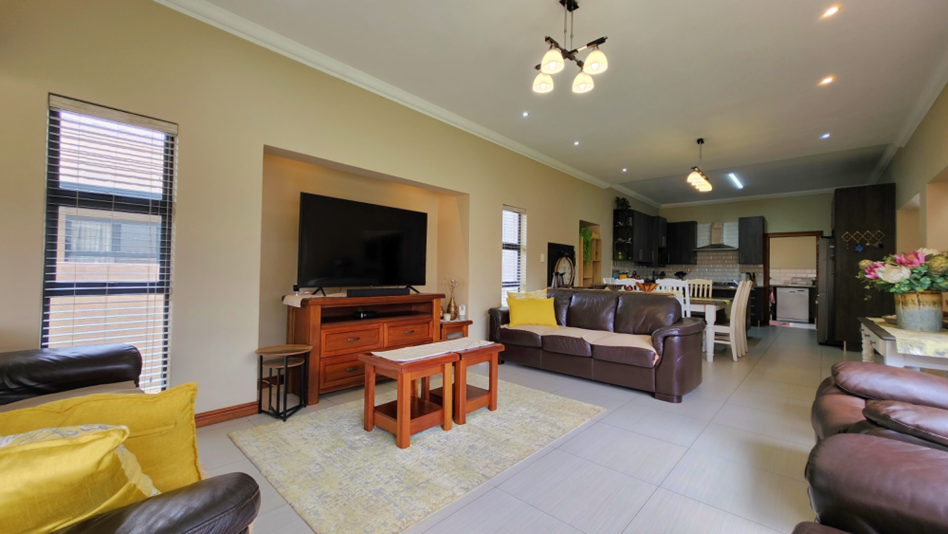 This charming double-storey property in Midstream boasts a perfect blend of comfort and functionality. With 4 spacious bedrooms, 4 bathrooms, and a domestic room, this home is ideal for families seeking a relaxed lifestyle. The open-plan living area seamlessly combines the kitchen, dining space, and braai area, creating an ideal space for entertaining. The flow leads effortlessly into the lush garden, complete with an irrigation system, perfect for outdoor living.