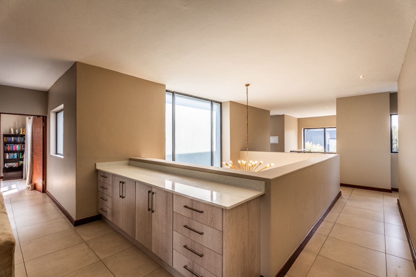 - The heart of this home is the sleek modern kitchen, complete with a freestanding range with gas hob and electric oven, walk-in pantry and a separate scullery, providing ample cupboards for storage, and worktop space. The central island with prep bowl double beautifully as a breakfast counter with space for high chairs, making this a favorite gathering point for the family.