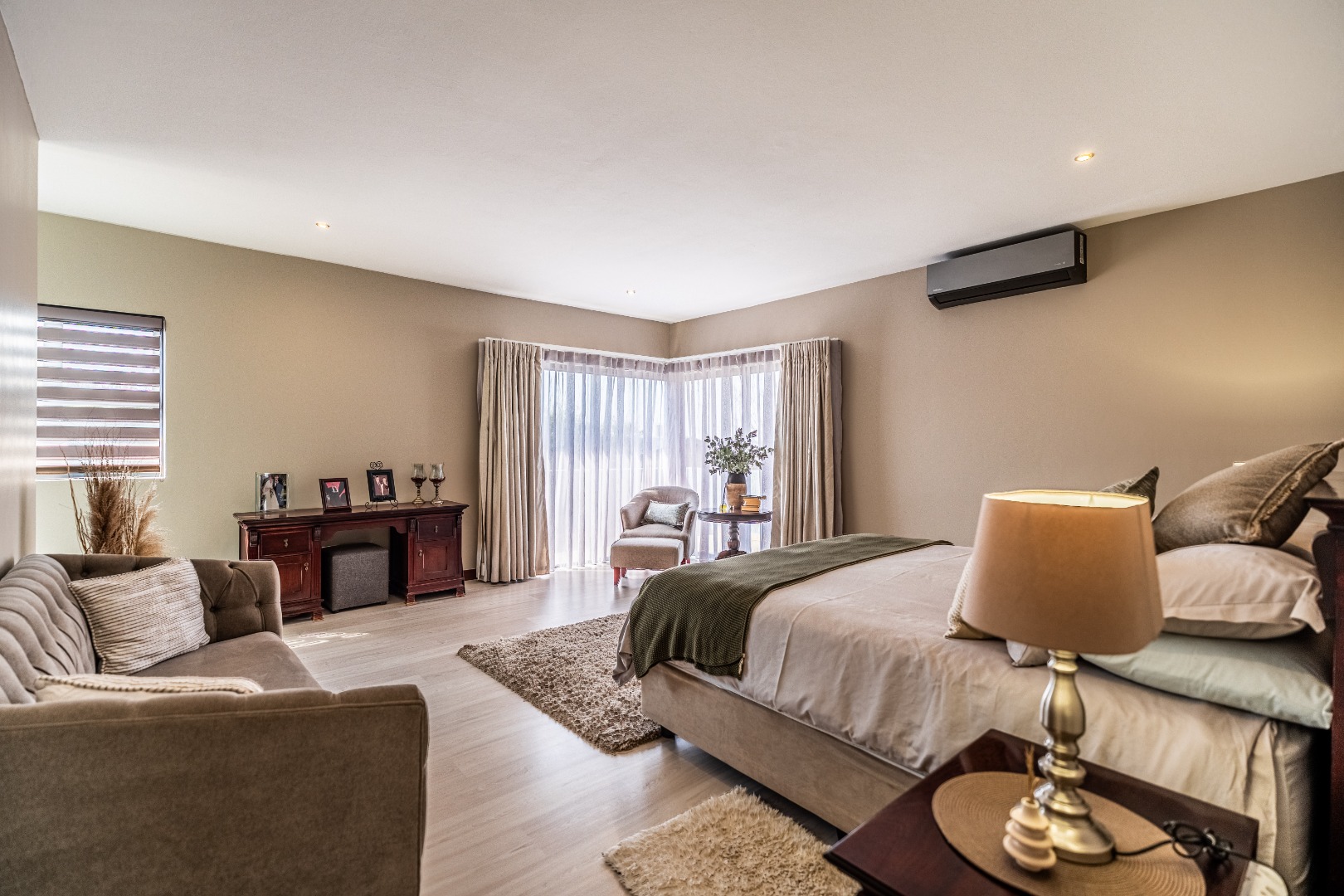 - The generous enclosed patio with large sliding doors open onto the garden and sparkling heated swimming pool. This is the perfect space for hosting unforgettable gatherings.