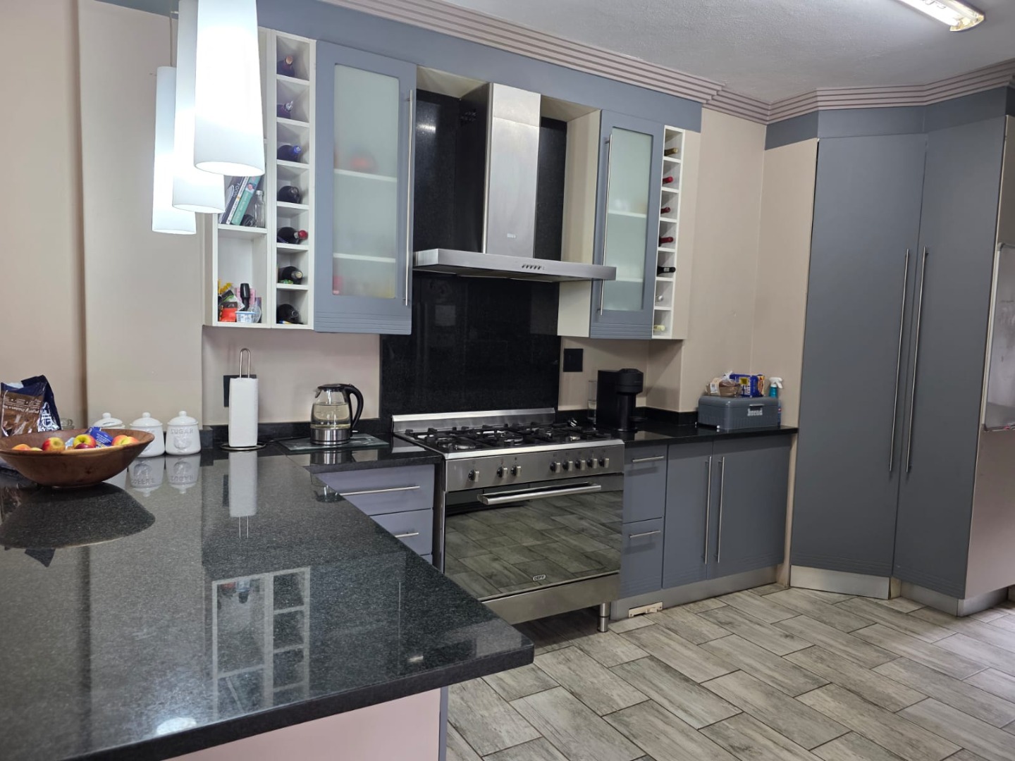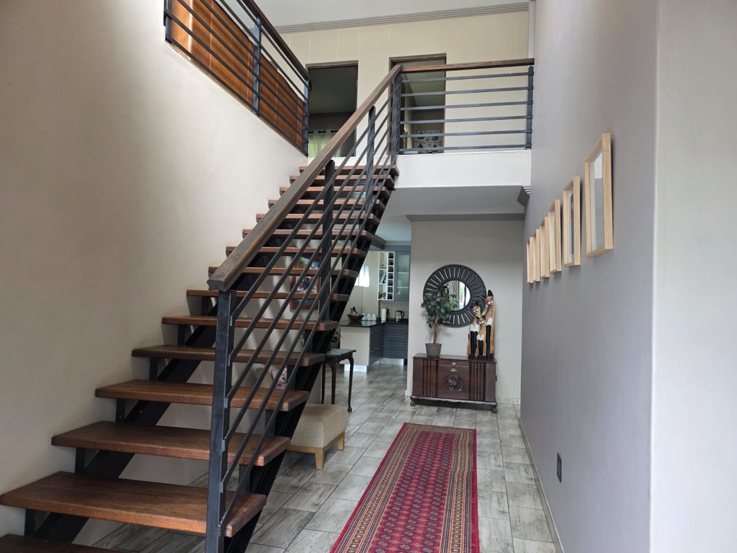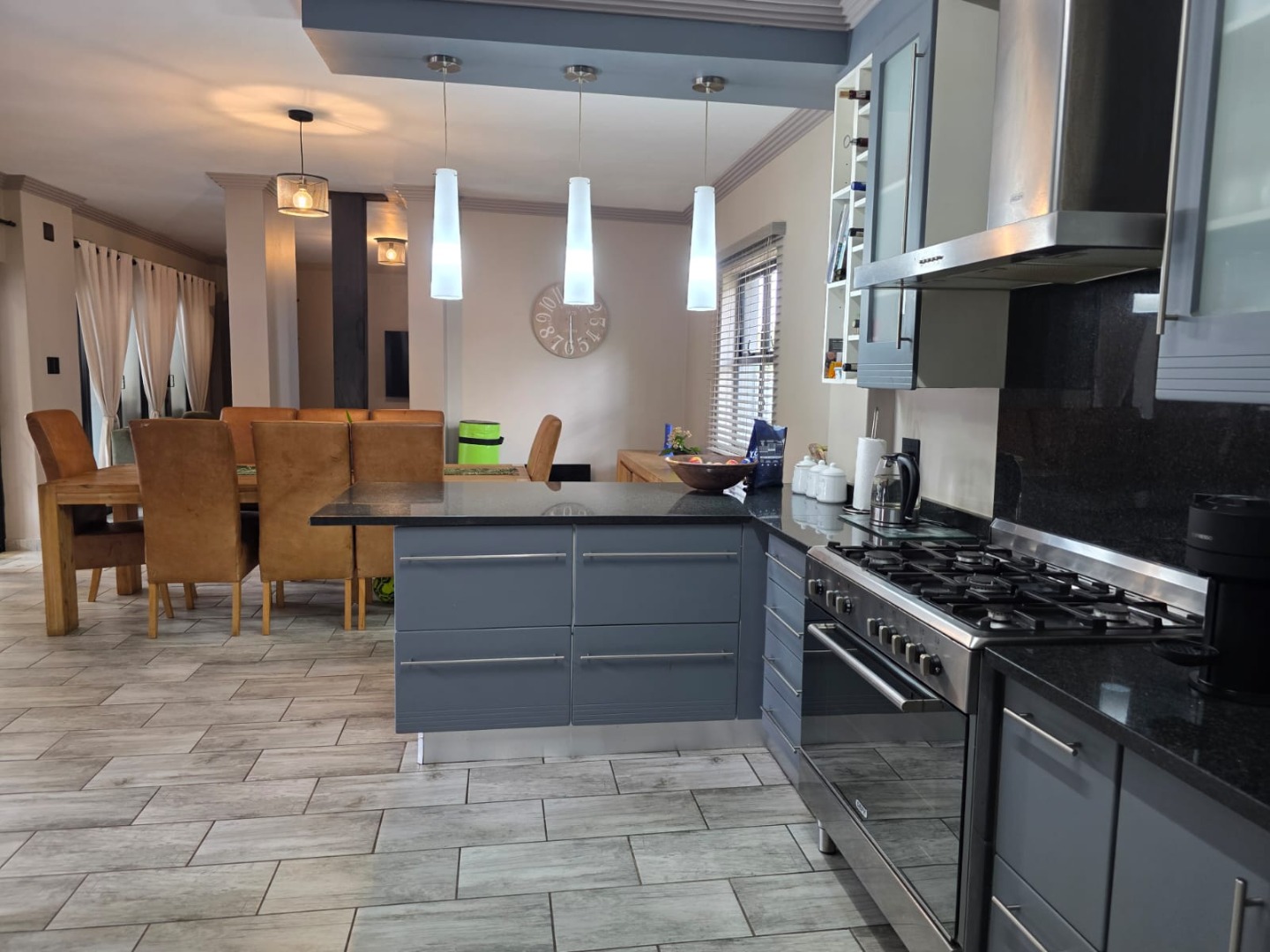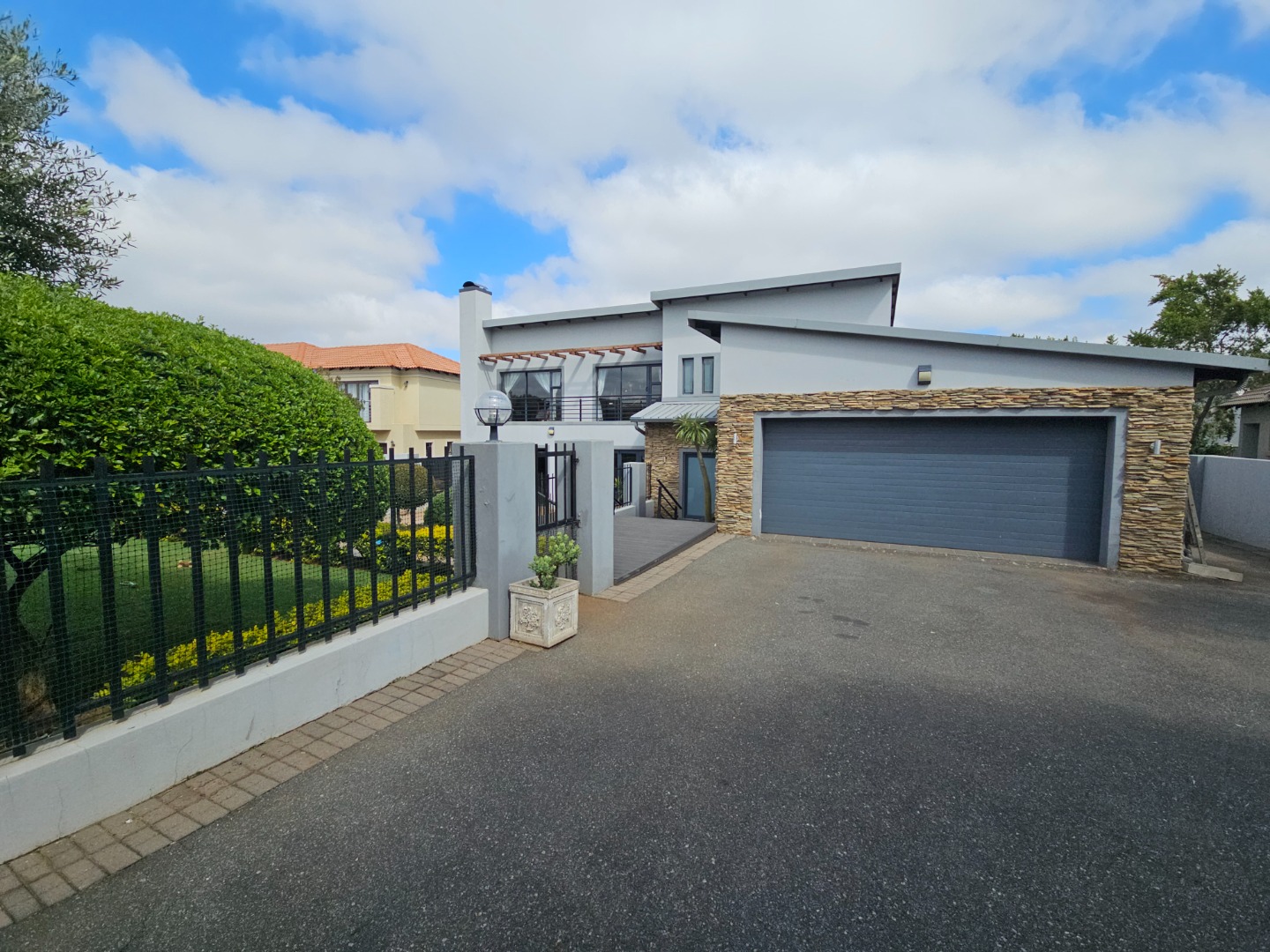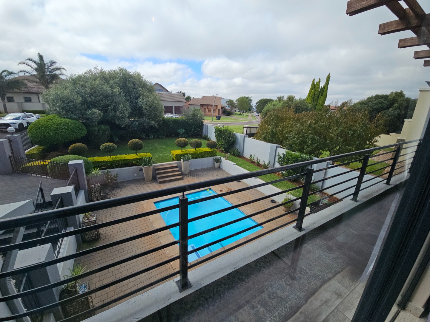 The elegant interior features four generously proportioned bathrooms, pajama lounge, dedicated study and modern kitchen catering to both family comfort and professional requirements. Three well-appointed bathrooms, including an en-suite in main bedroom. The open-plan design enhances natural light and flow. Externally, the property excels in providing exceptional entertainment and leisure opportunities. A sparkling swimming pool, private garden, complemented by a patio, dedicated braai room with a built-in braai and bar. Practical amenities include a double garage, four parking spaces, spacious enough to park a caravan, boat or trailer.