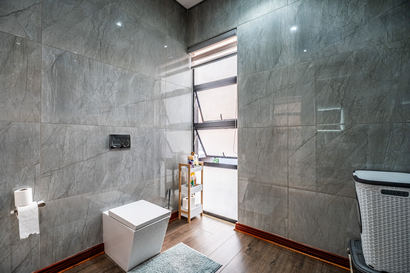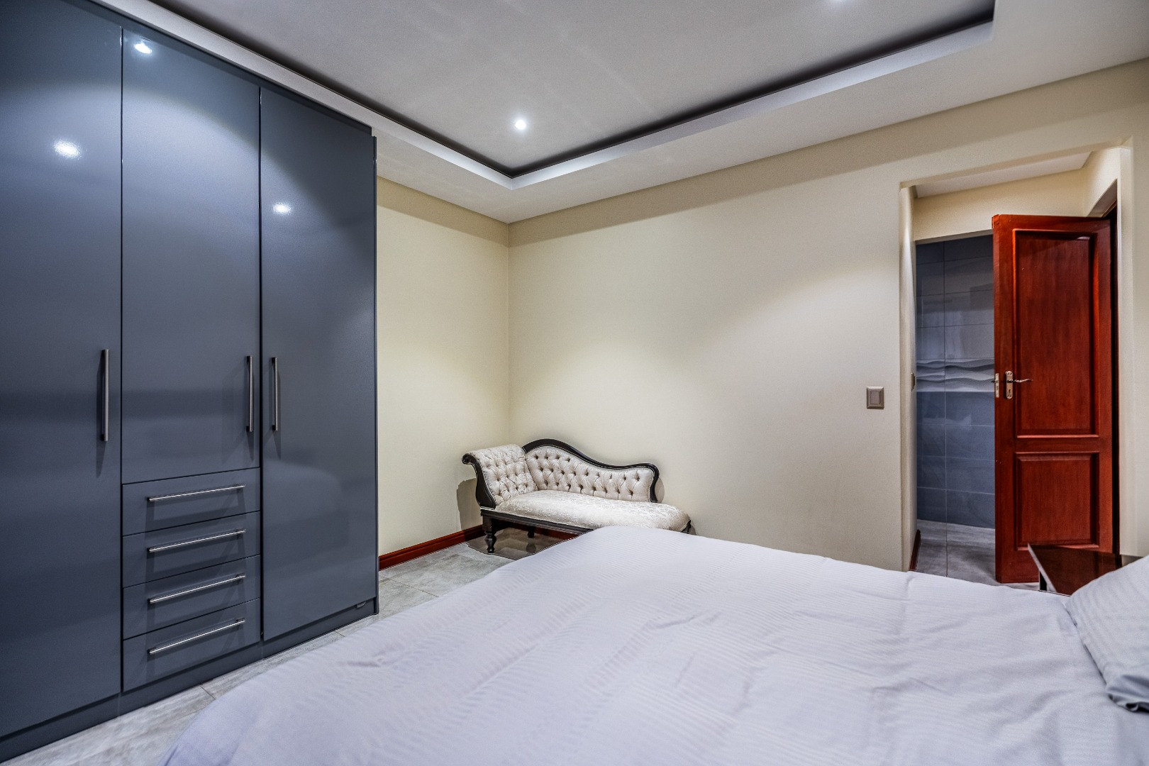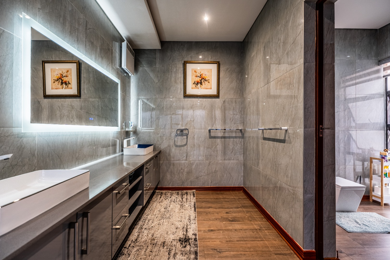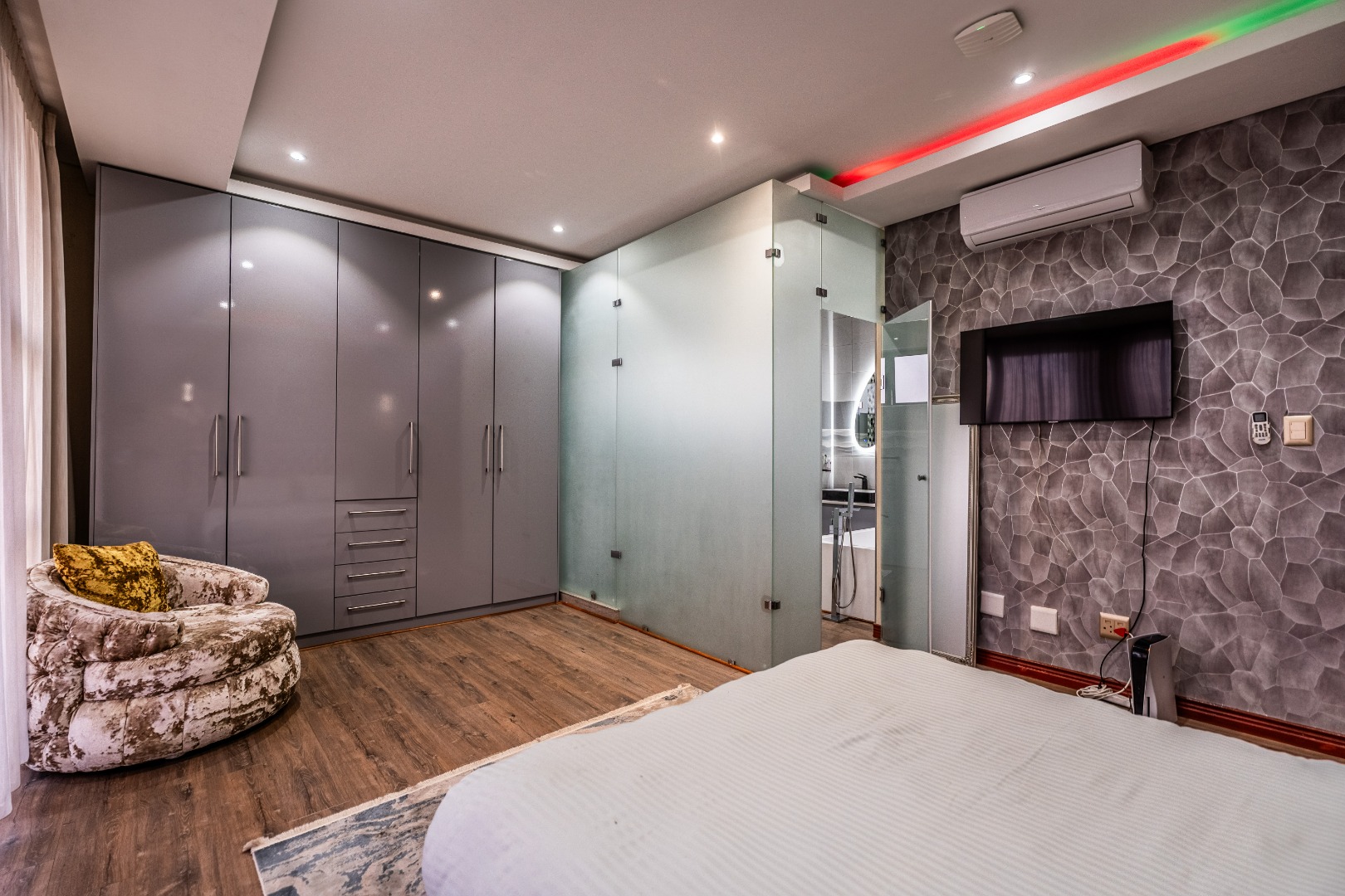 The main bedroom is your personal retreat, featuring loads of cupboard space and a double shower under a skylight that brings in gorgeous natural light — giving you that spa-like feel every morning. Two more ensuite bedrooms plus a flexible playroom or study area round off the upstairs perfectly.