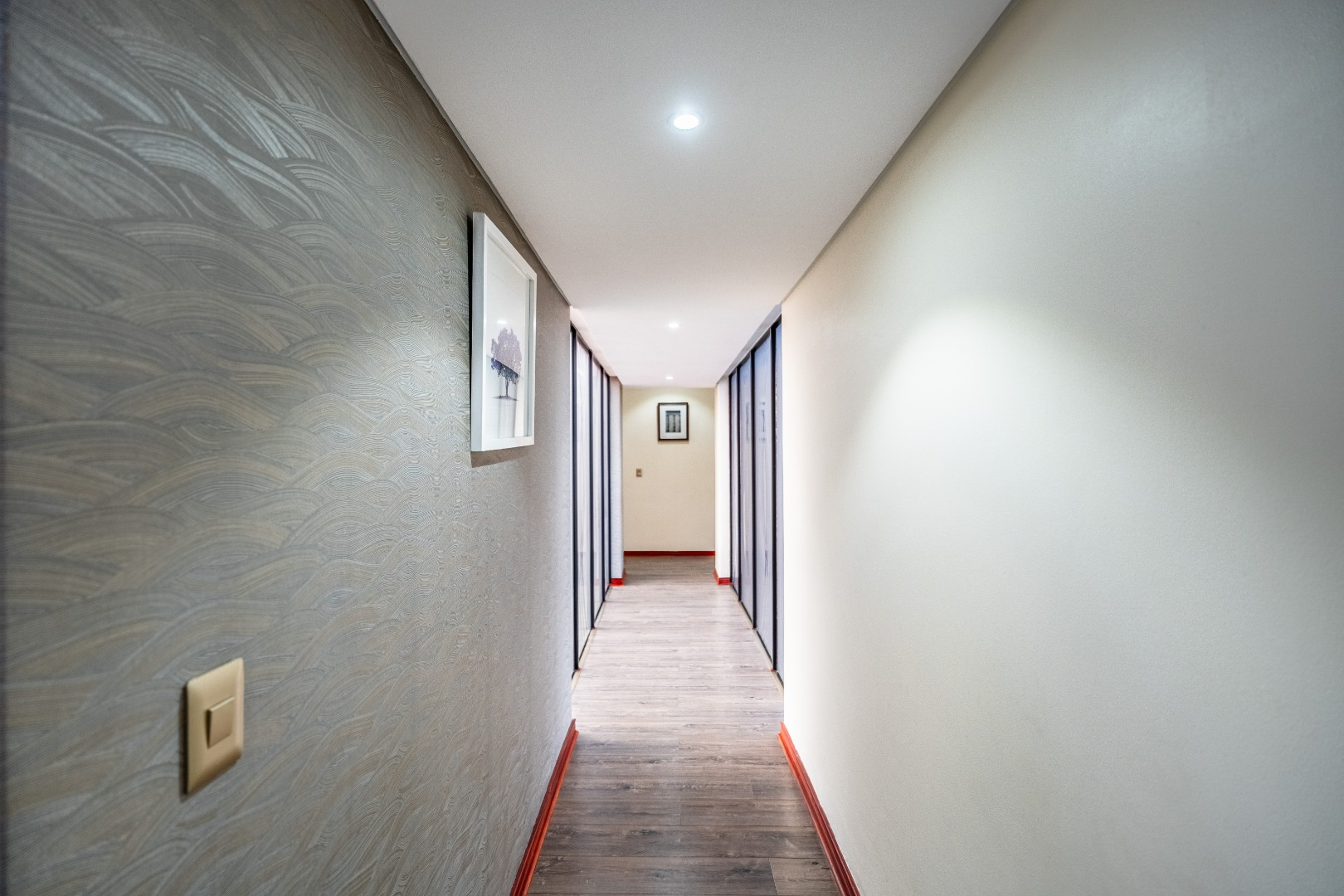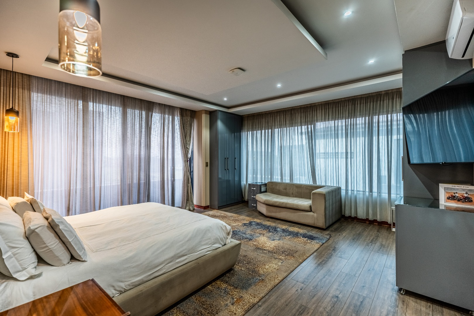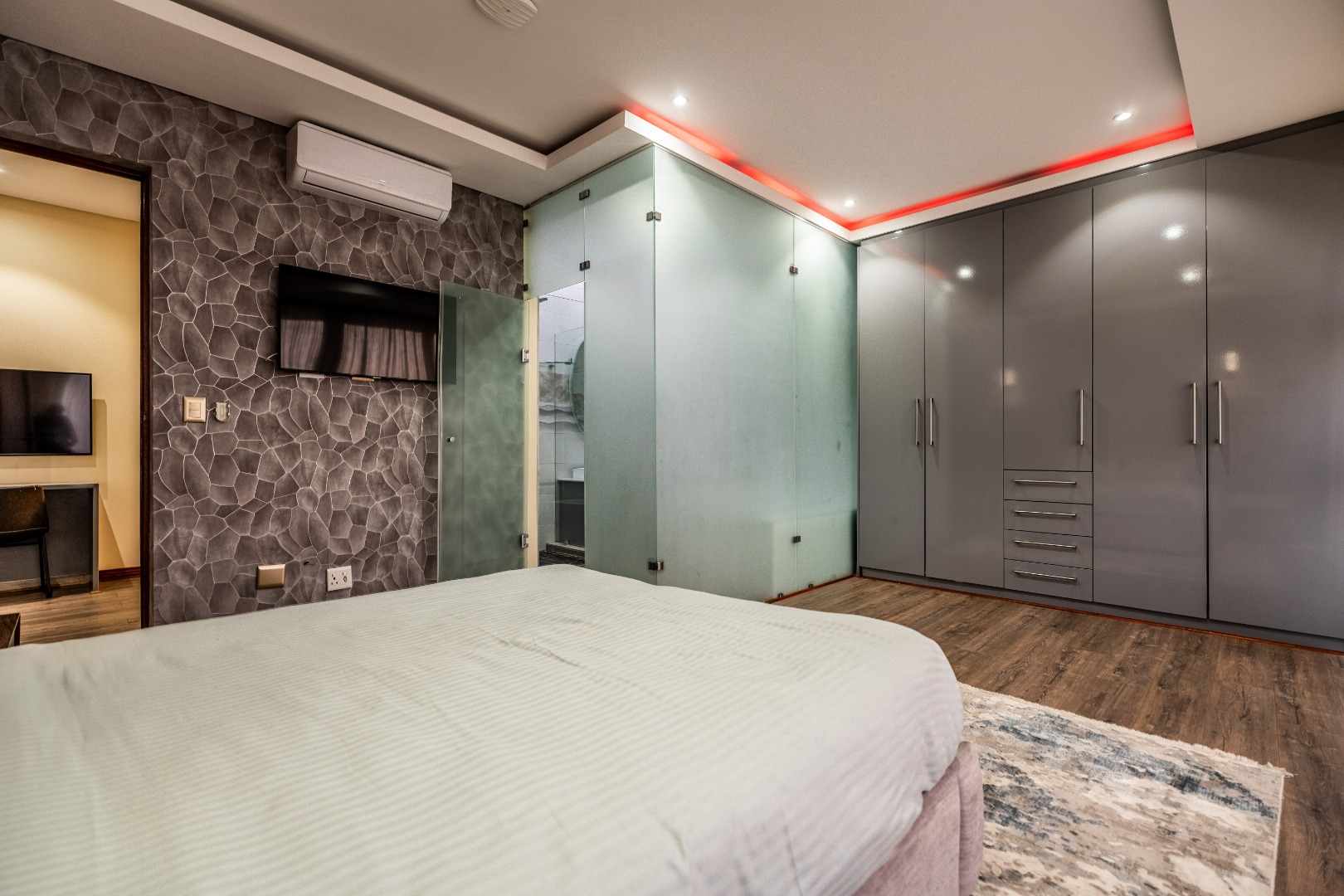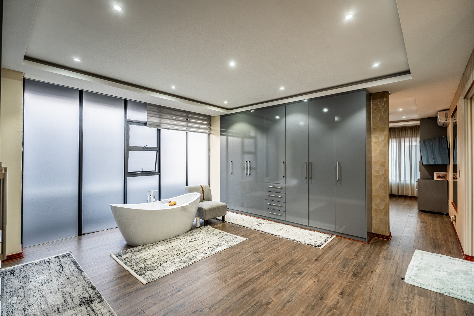 The main bedroom is your personal retreat, featuring loads of cupboard space and a double shower under a skylight that brings in gorgeous natural light — giving you that spa-like feel every morning. Two more ensuite bedrooms plus a flexible playroom or study area round off the upstairs perfectly.