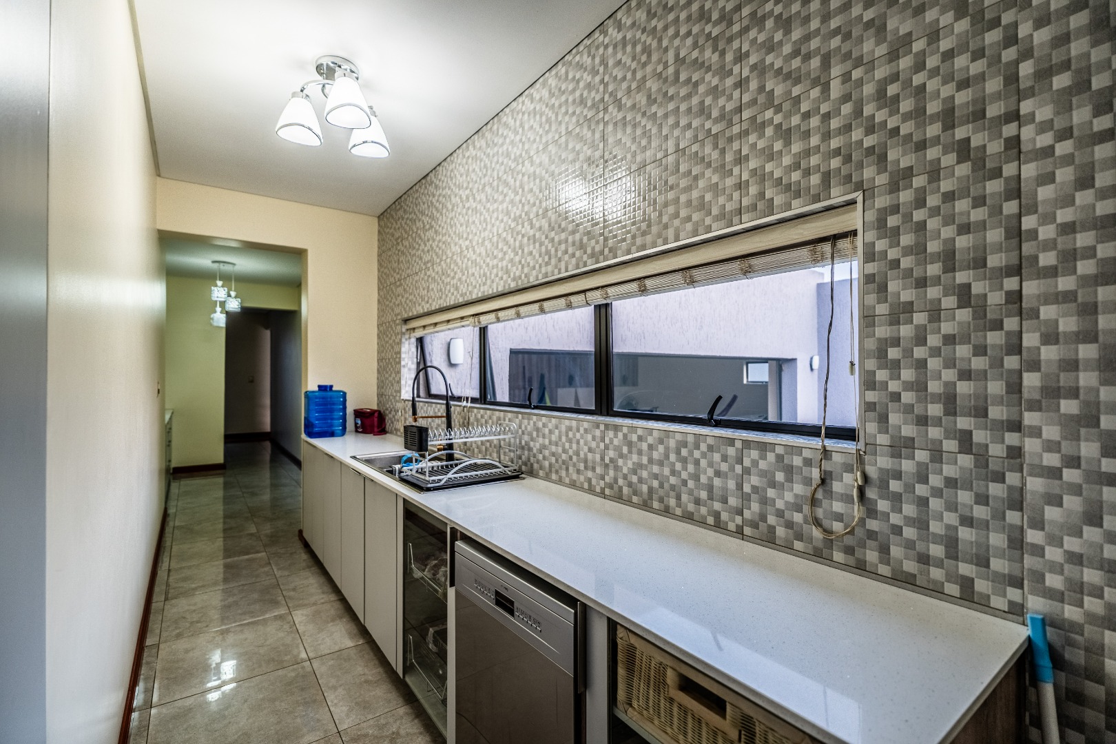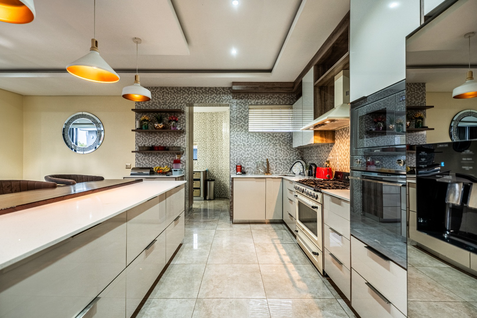 To the right, there’s a sleek home office and an inviting living area that leads into the heart of the home — a modern kitchen designed for connection. The scullery is a dream, with a dedicated dishwashing space and a separate laundry area to keep things running smoothly behind the scenes.