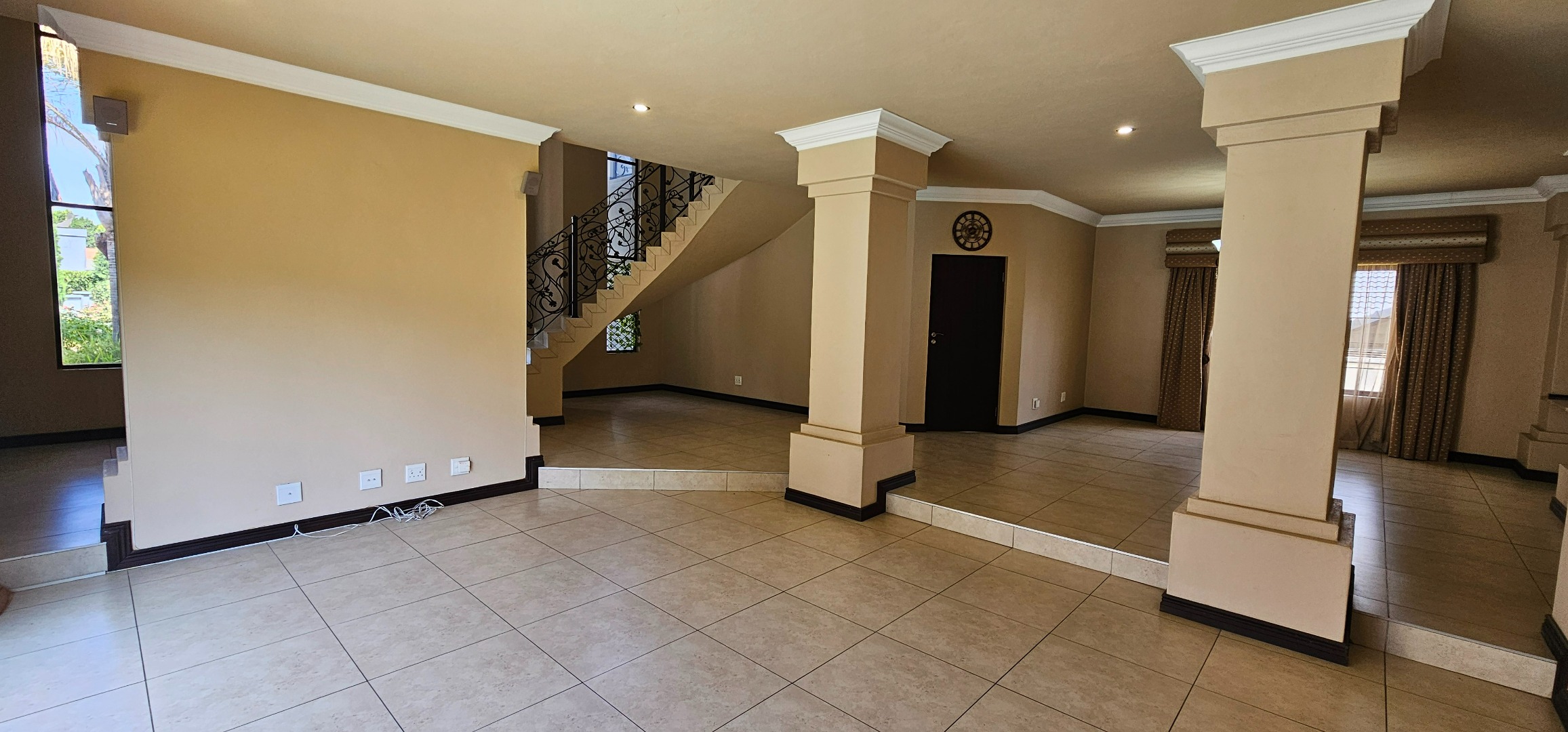 A grand double-volume entrance sets the tone on arrival, creating an immediate sense of scale and sophistication. The home unfolds into expansive open-plan living areas, seamlessly connecting formal and informal spaces, while the beautifully landscaped garden provides a tranquil retreat ideal for both entertaining and everyday family living.
