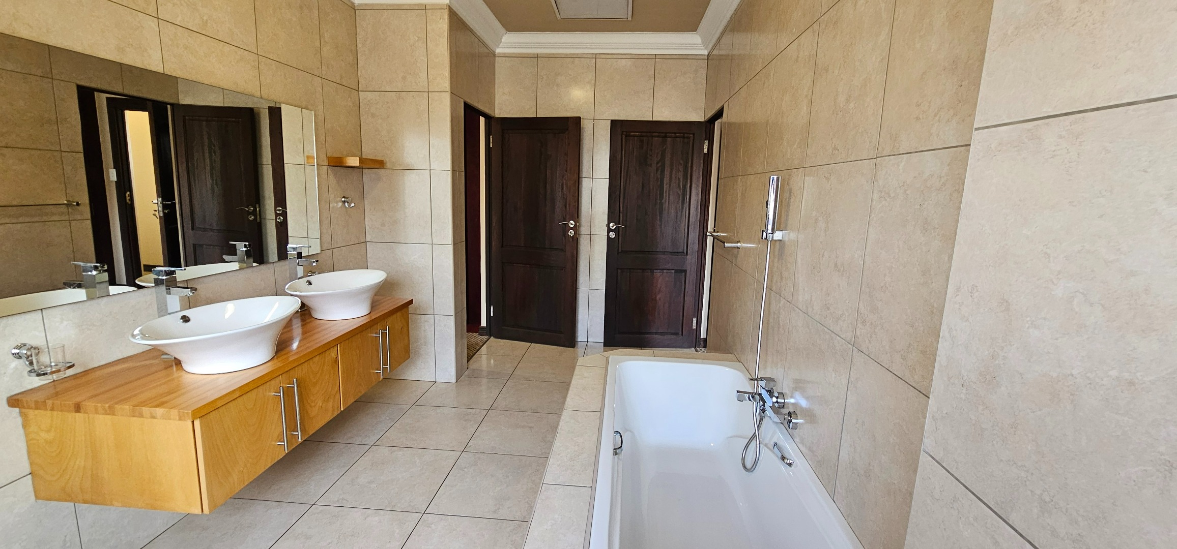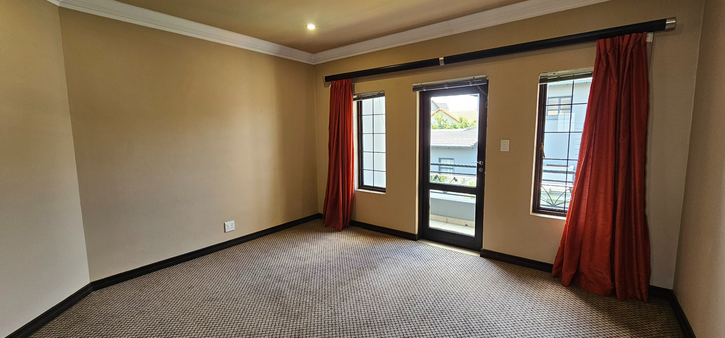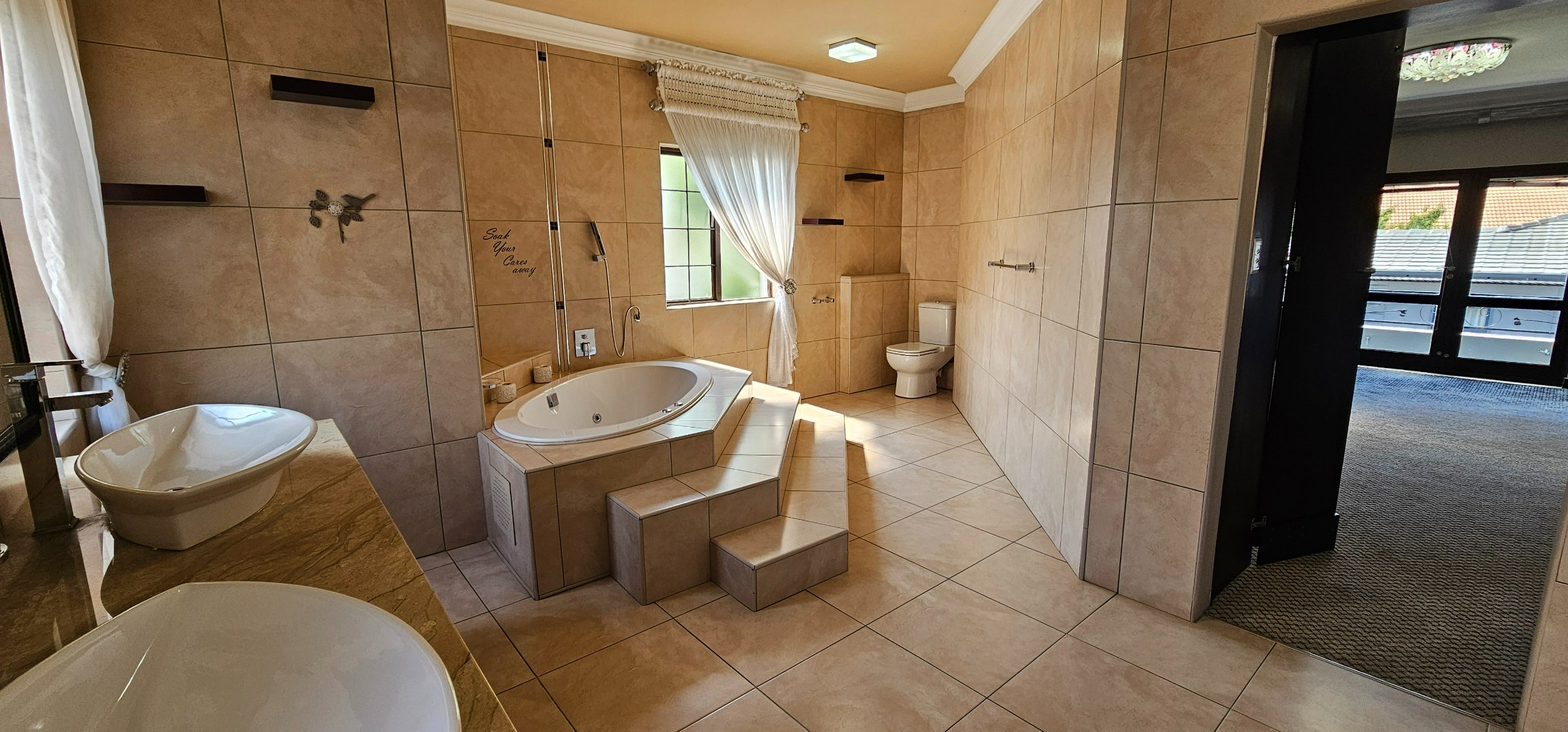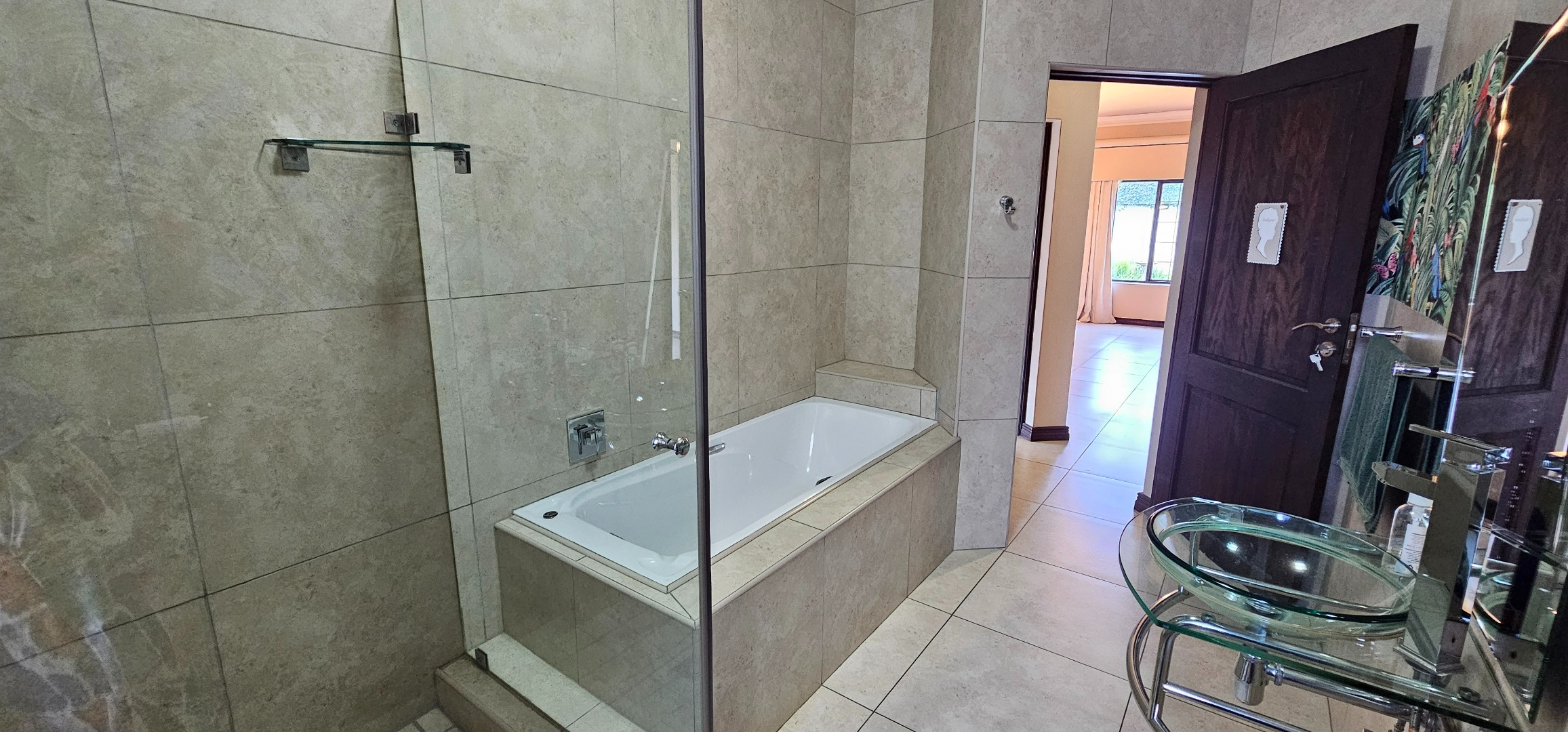 Luxurious main suite featuring ample cupboard space, a full en-suite bathroom, and a private balcony