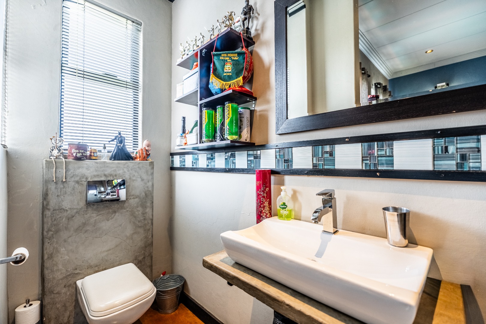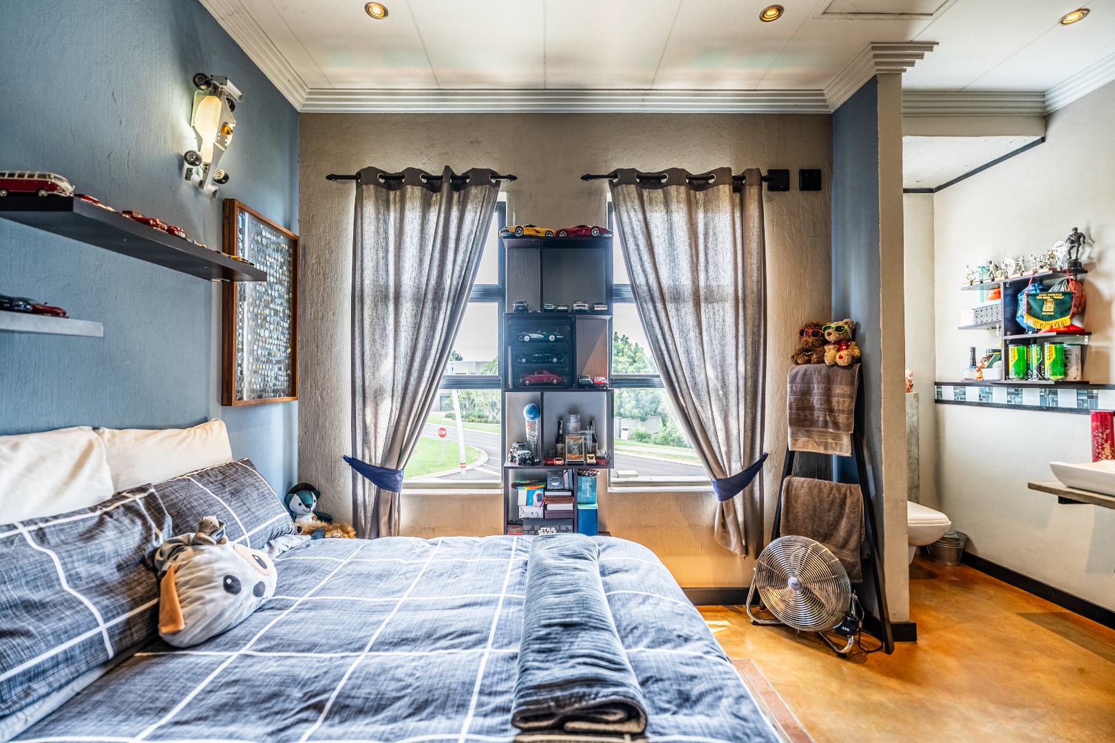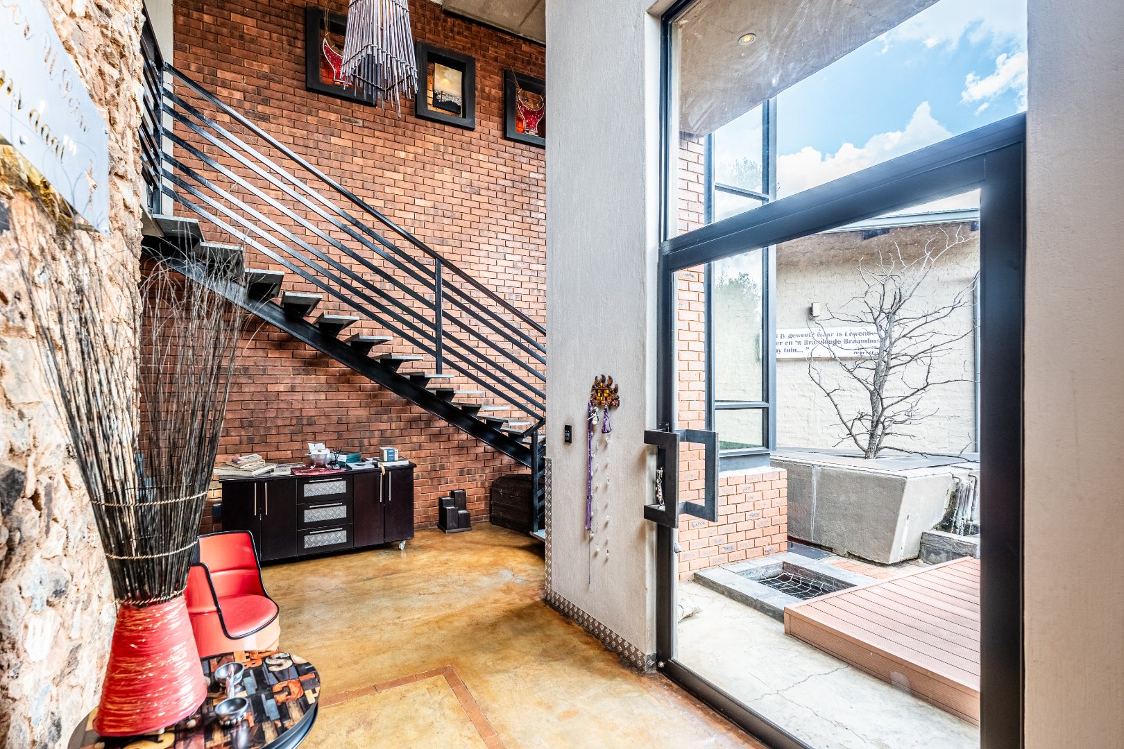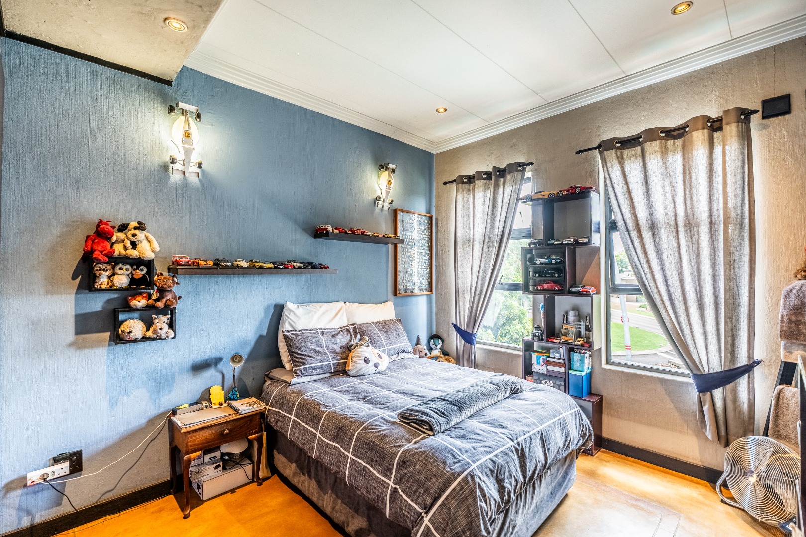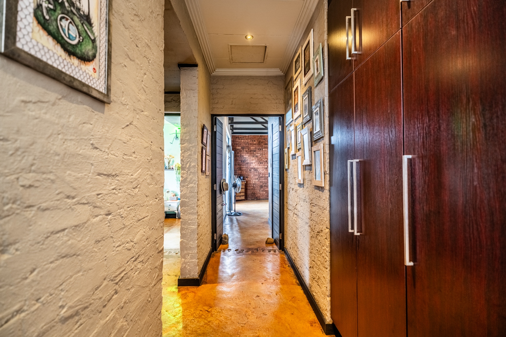 The home’s heart is its entertainment area, with doors opening onto a lush garden, complemented by an indoor braai for year-round gatherings. Outdoors, a sparkling swimming pool invites relaxation, while the sprinkler system and water tank ensure easy upkeep.