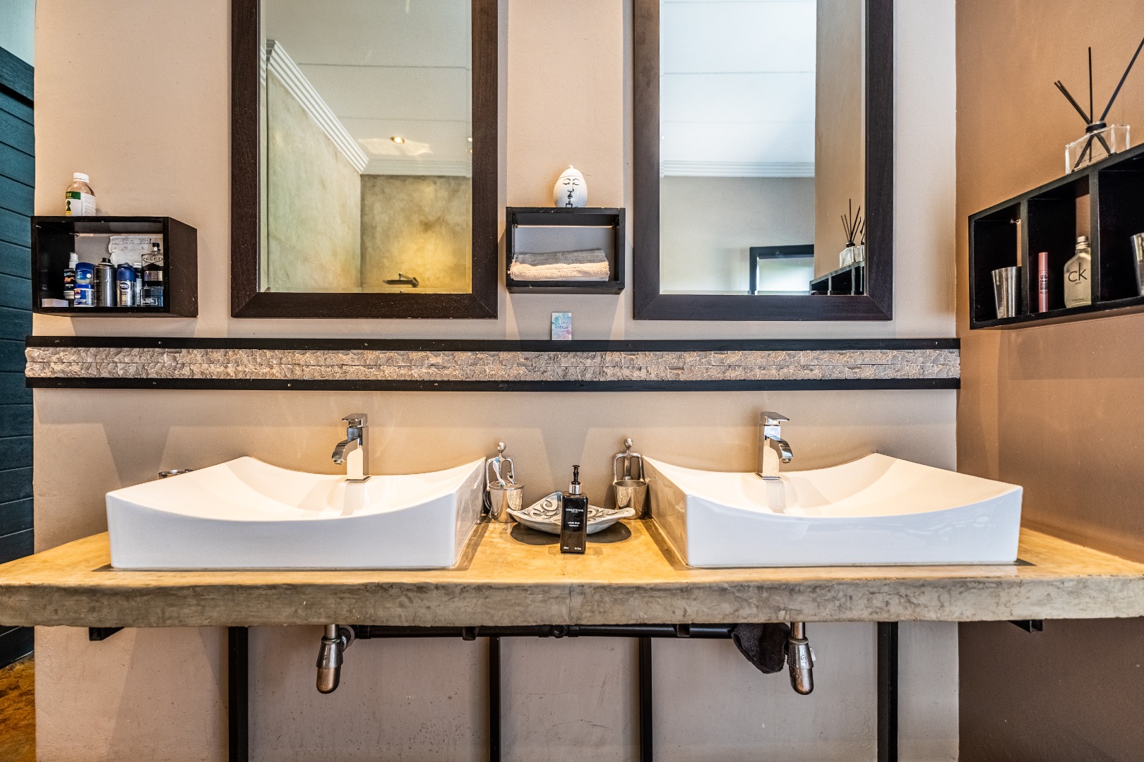 MAIN Bedroom: Ensuite Bathroom with inside and outside shower. Walk in Cupboards.