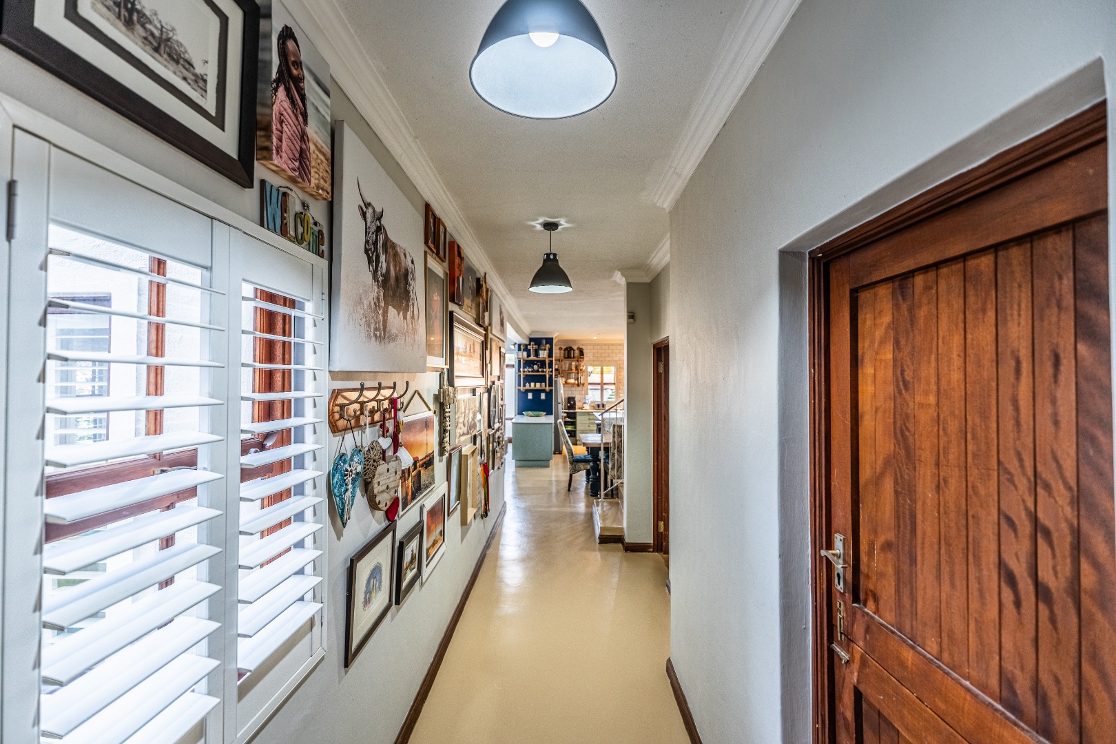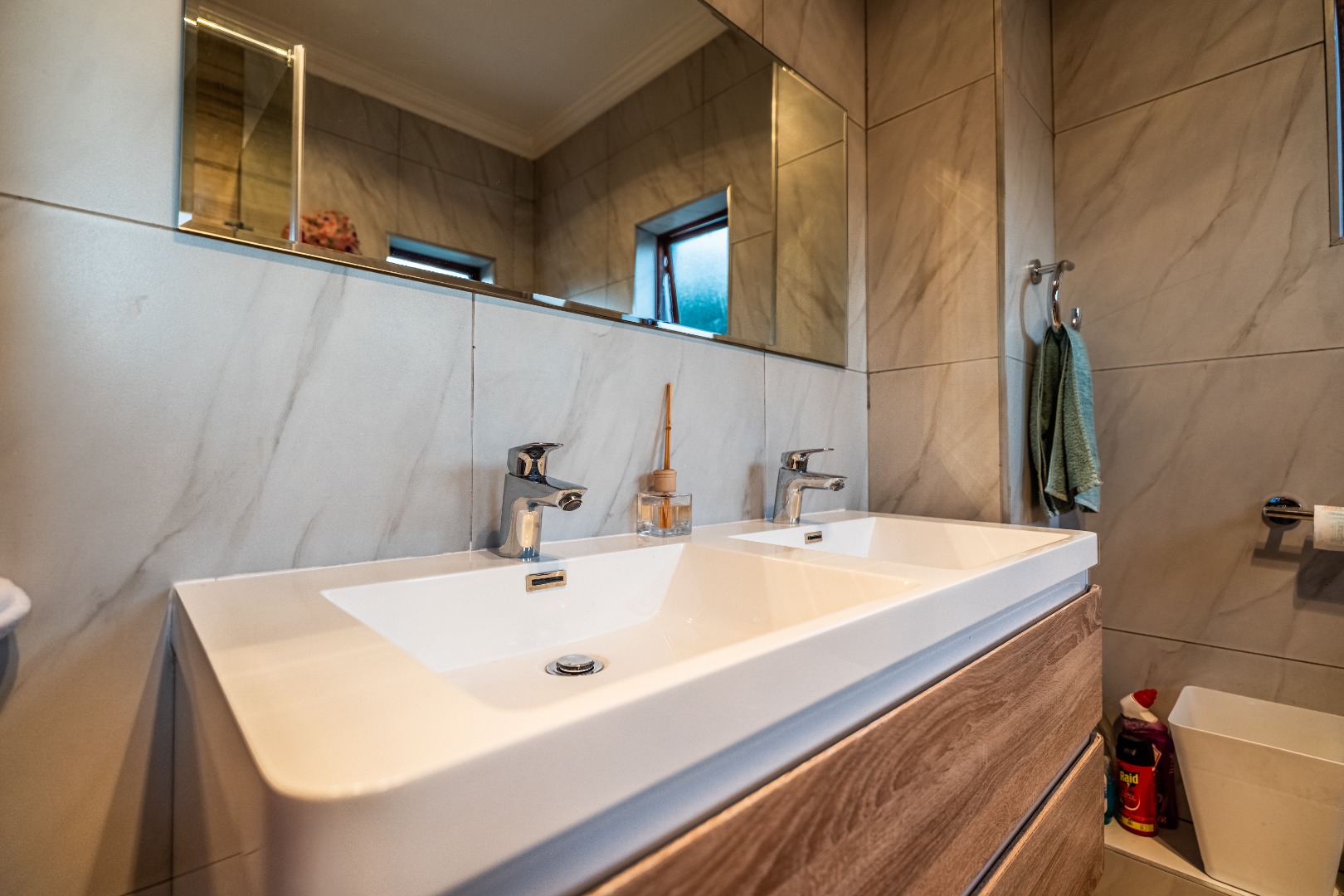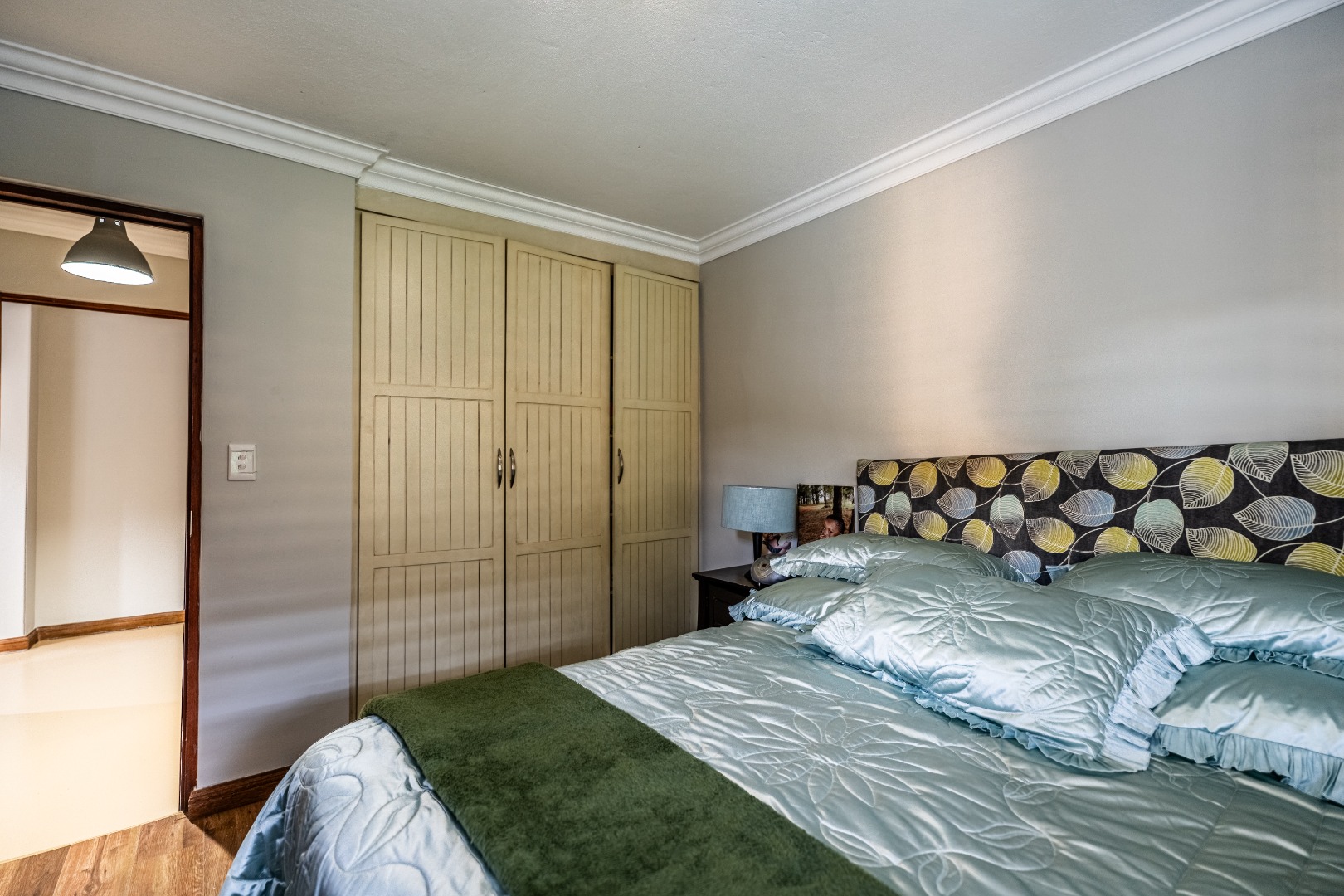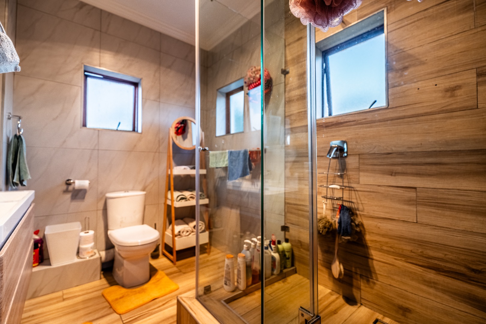 Step outside to a private oasis boasting a lush, manicured garden adorned with fruit trees, a pergola, and an irrigation system. Entertain with ease around the sparkling swimming pool, boma, and pizza oven. Sustainability meets sophistication with a powerful solar plant and a 20kW battery system providing up to 9 hours of standby power, complemented by gas and electric geysers. Additional features include Wi-Fi, DSTV, a double garage, carport, and recently painted interiors and exteriors — from the roof to the paving and perimeter walls.