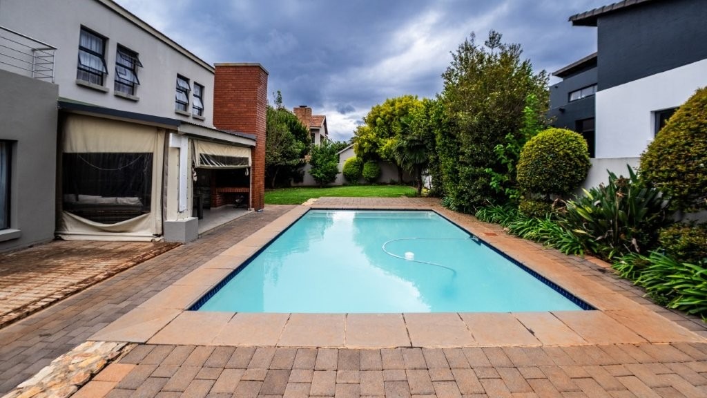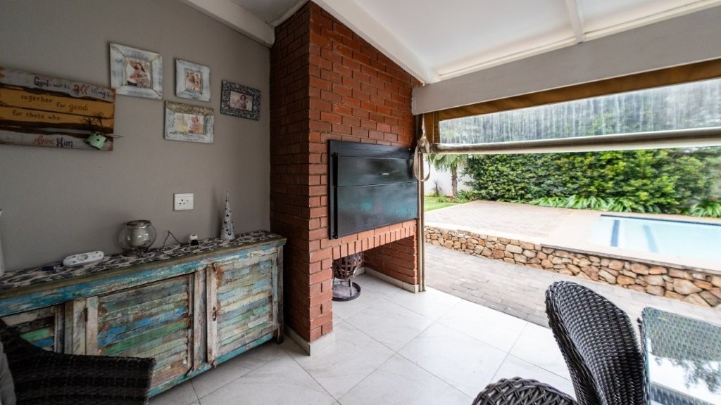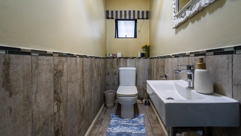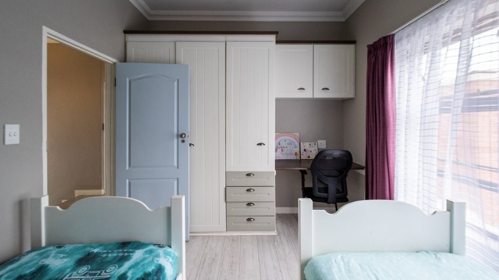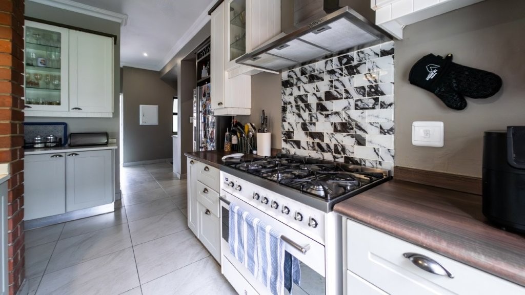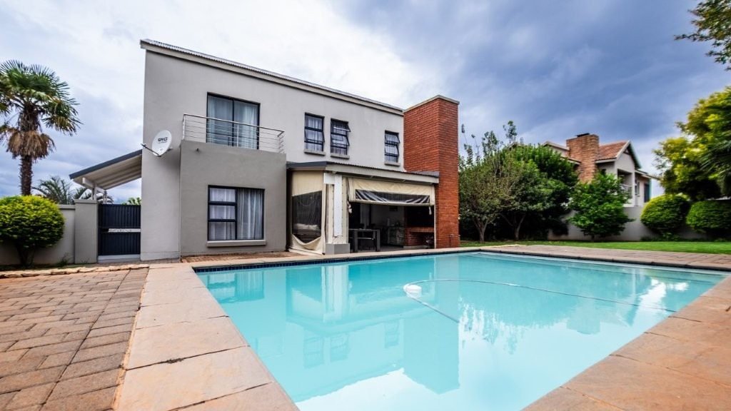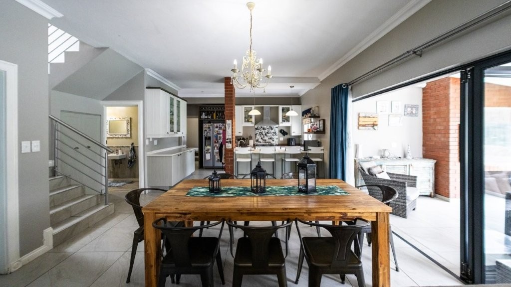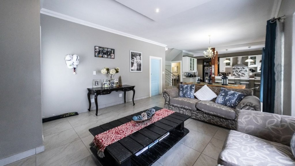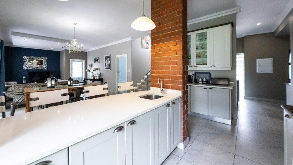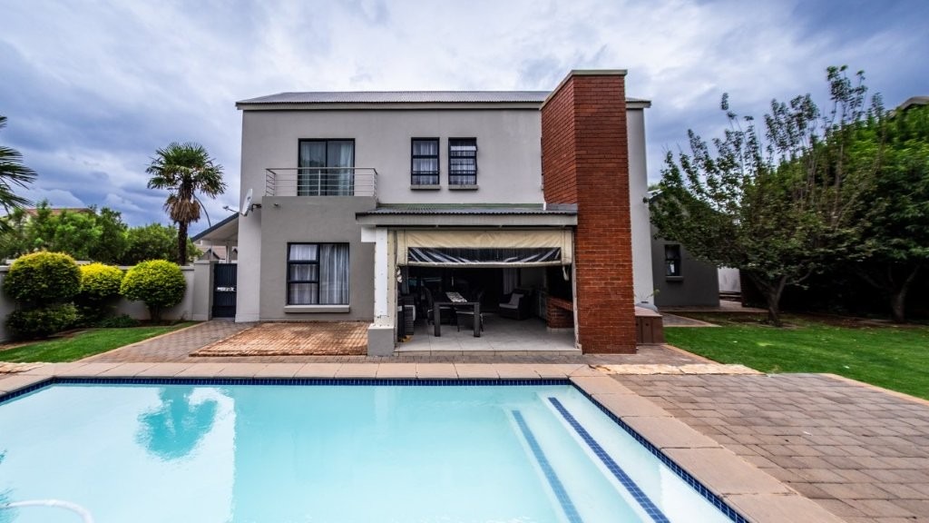 Modern and well designed - this is the home for you!! Upon entering this inviting home, you are welcomed into the spacious living areas, perfect for both relaxation and entertaining. The family/TV room provides ample space for gatherings, while the dining area seamlessly connects, creating an ideal setting for shared meals and special occasions. At the heart of the home is a well-appointed kitchen, complete with an electric oven and gas stove, a separate scullery, and an abundance of built-in cupboards for all your storage needs. The under cover patio is very spacious with a built in braai and features drop down canvas sides to create a cozy space in the winter. Extra features are the sparkling swimming pool and well established garden. Perfect for summer! This home boasts three bedrooms upstairs, each featuring built-in cupboards for ample storage. The master suite offers the luxury of a private en-suite bathroom and walk in closet, creating a peaceful retreat. This home seamlessly combines comfort, convenience, and modern living—don’t miss the opportunity to make it yours!