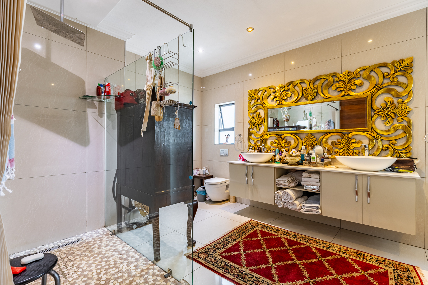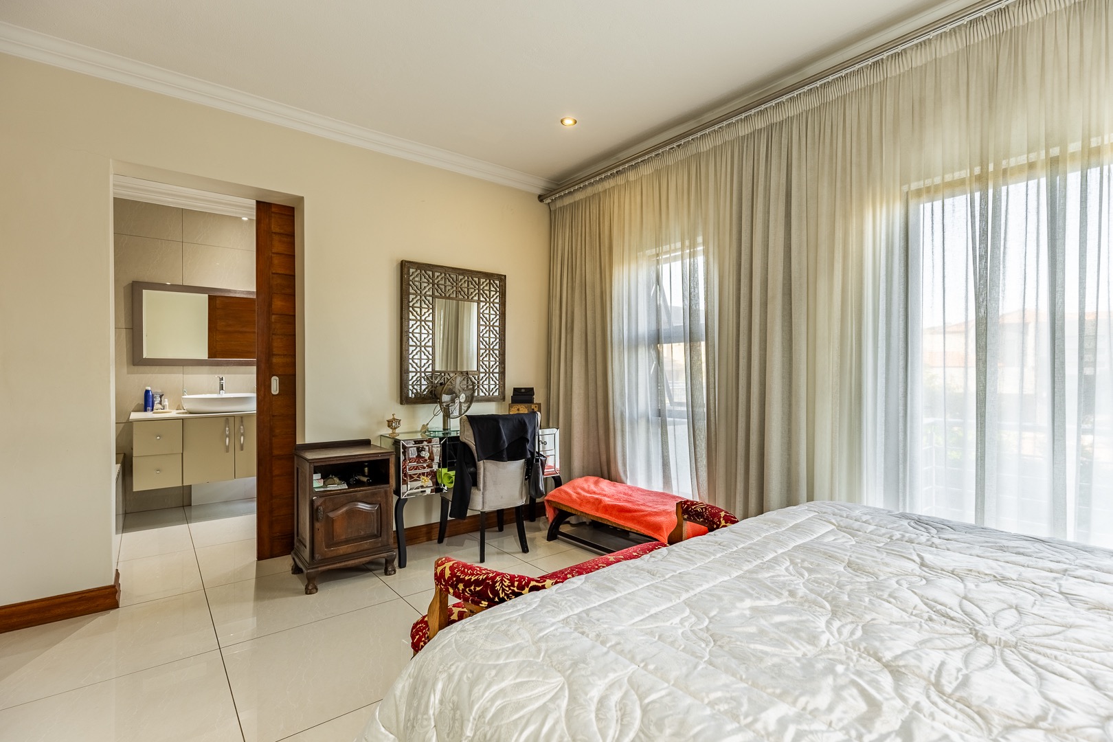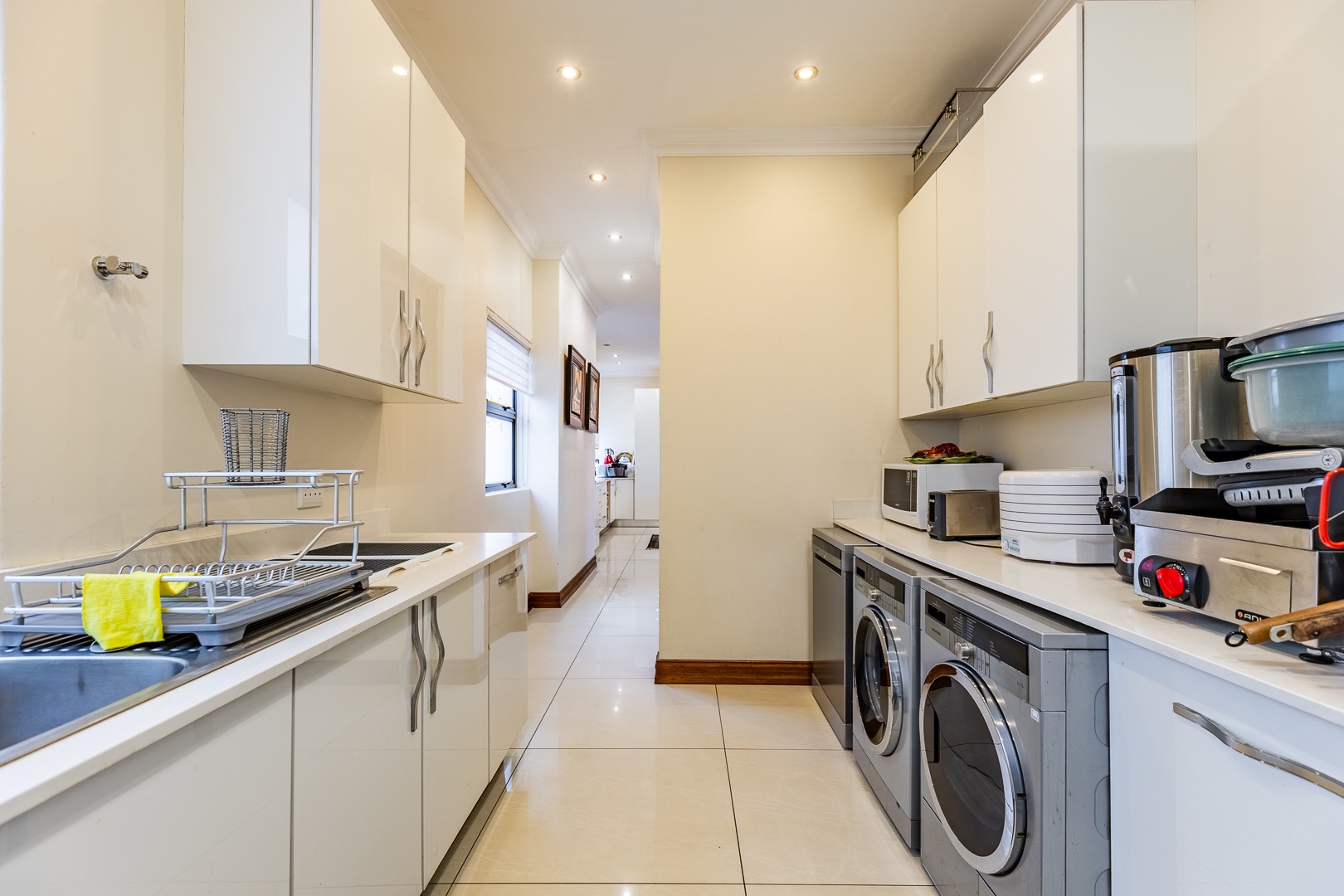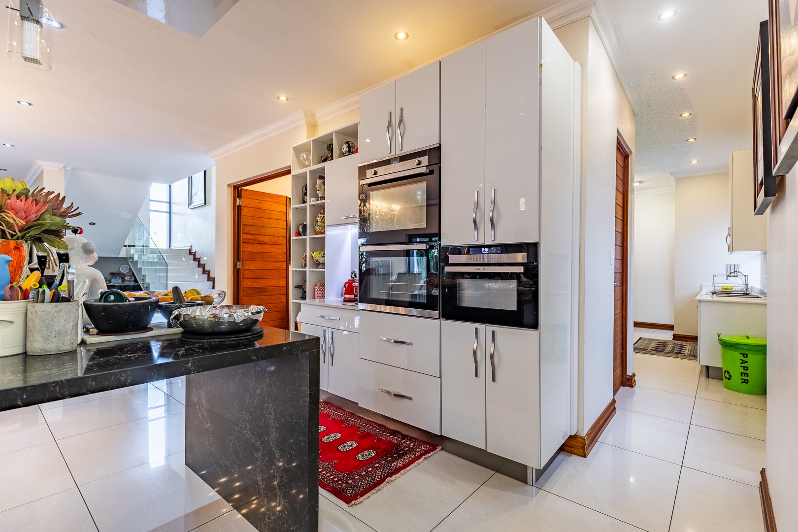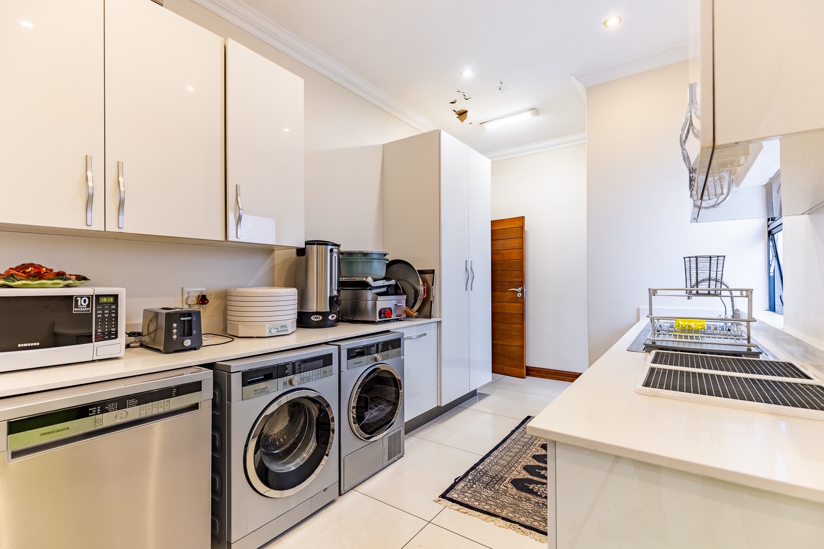 Luxuriate in the grandeur of this stunning mansion in Midstream Ridge Estate, boasting 5 spacious bedrooms, each with its own ensuite bathroom. A maid's room provides additional convenience, while the massive kitchen is equipped with the latest appliances, making meal preparation a breeze. The scullery is equally impressive, with ample space and a pantry for storage. Downstairs, two expansive living rooms and a luxury TV room provide ample space for relaxation and entertainment.