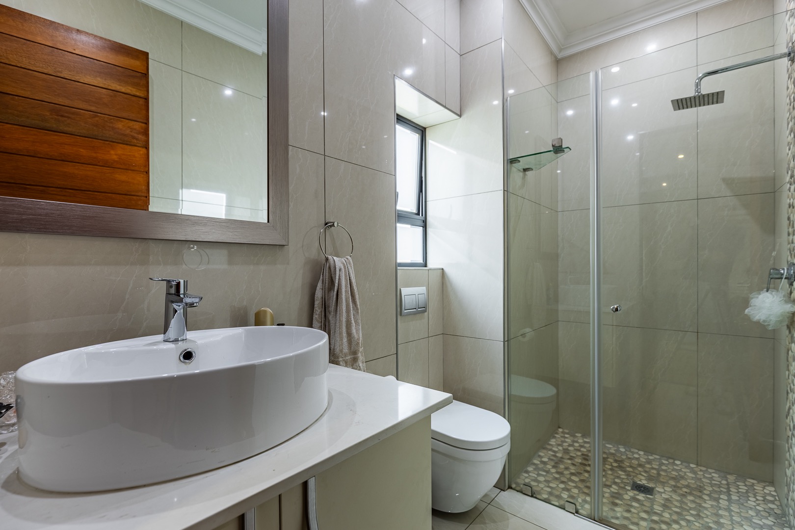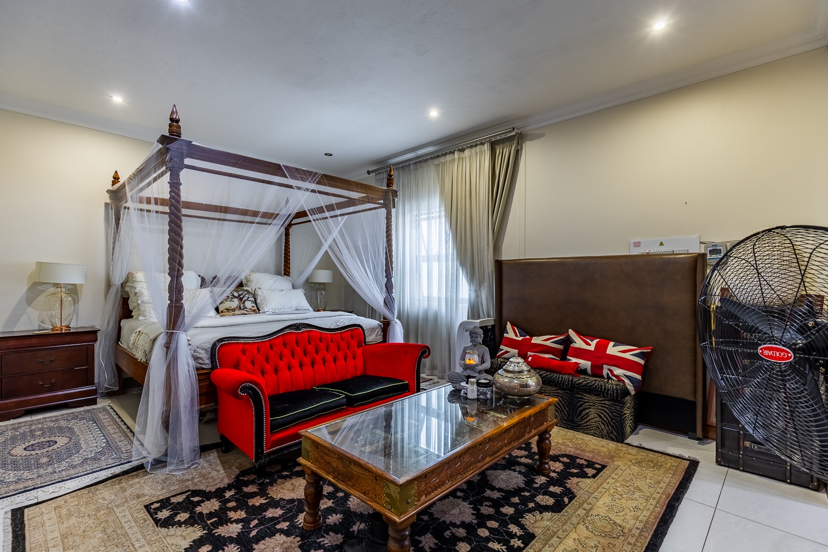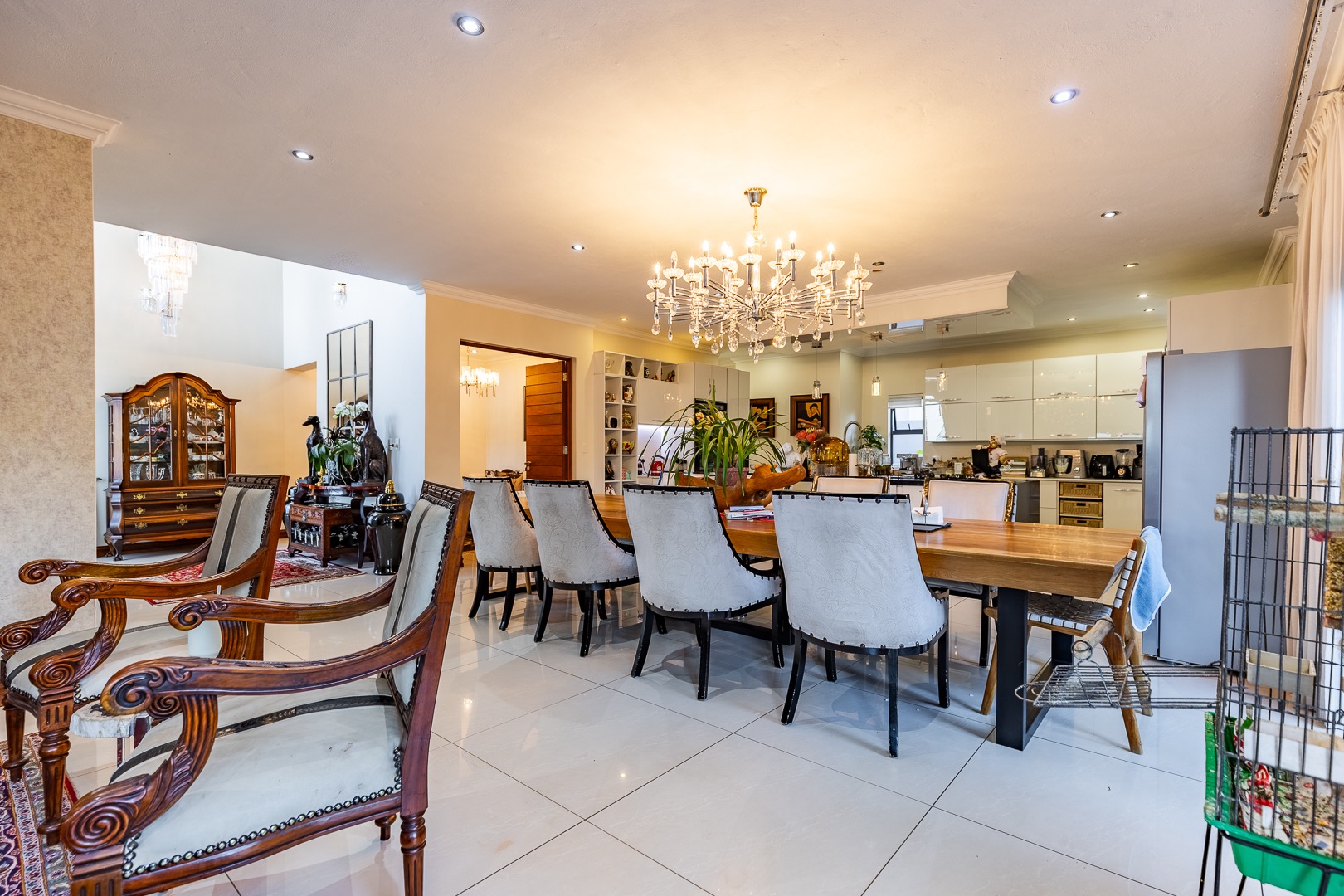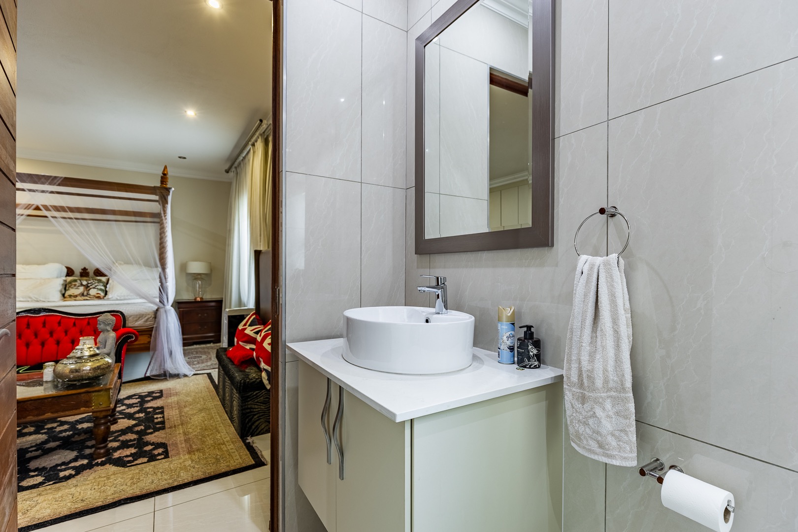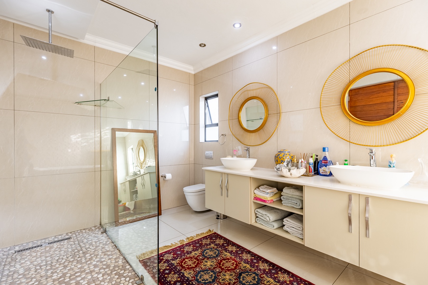 Luxuriate in the grandeur of this stunning mansion in Midstream Ridge Estate, boasting 5 spacious bedrooms, each with its own ensuite bathroom. A maid's room provides additional convenience, while the massive kitchen is equipped with the latest appliances, making meal preparation a breeze. The scullery is equally impressive, with ample space and a pantry for storage. Downstairs, two expansive living rooms and a luxury TV room provide ample space for relaxation and entertainment.