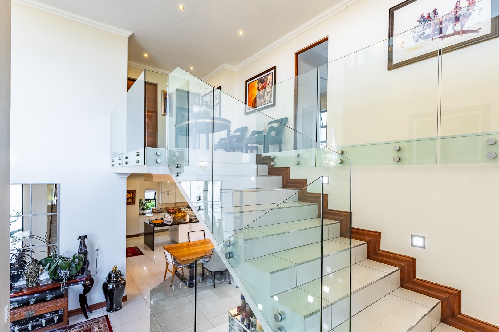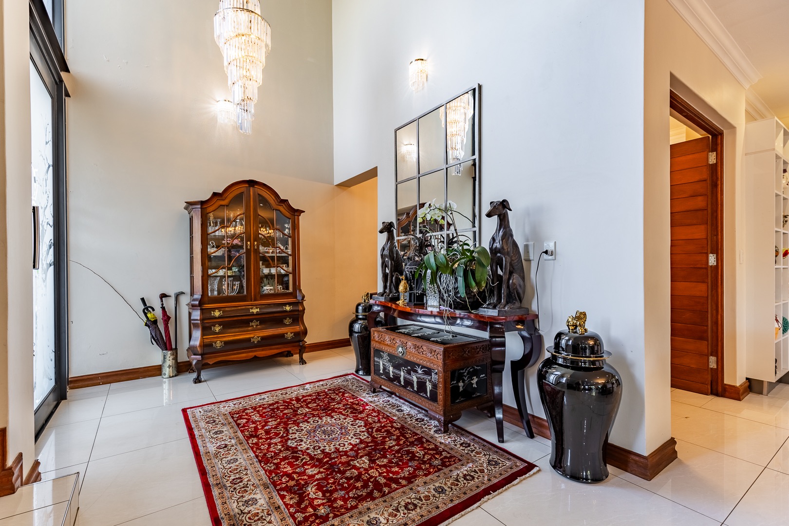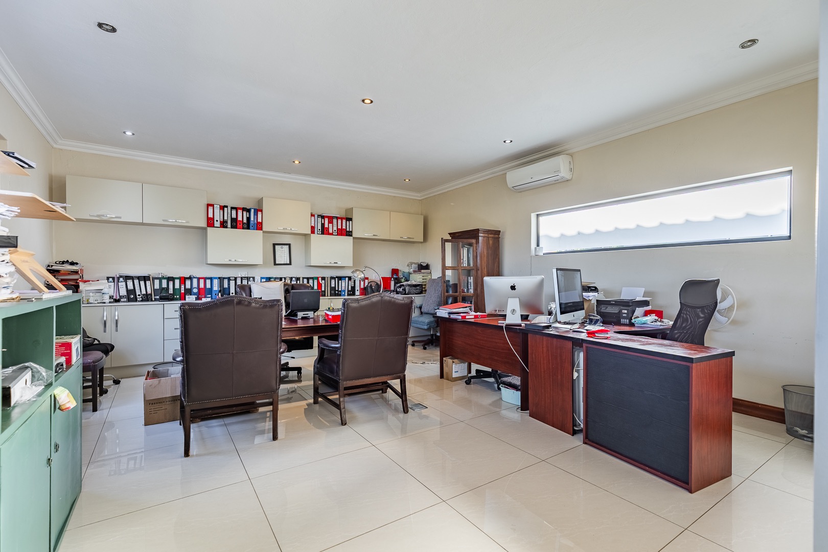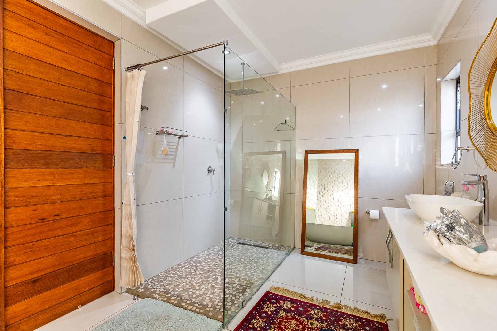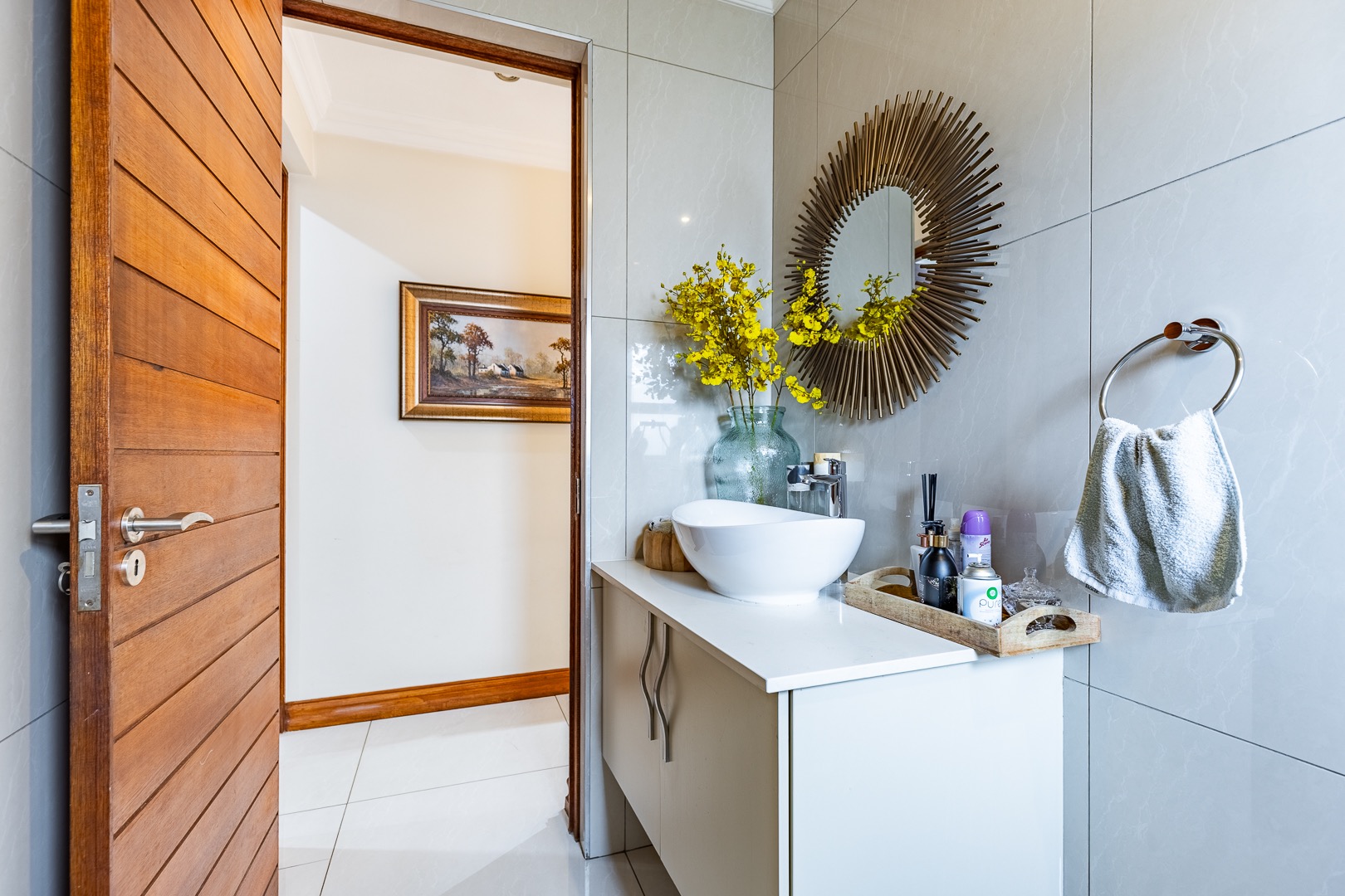 Luxuriate in the grandeur of this stunning mansion in Midstream Ridge Estate, boasting 5 spacious bedrooms, each with its own ensuite bathroom. A maid's room provides additional convenience, while the massive kitchen is equipped with the latest appliances, making meal preparation a breeze. The scullery is equally impressive, with ample space and a pantry for storage. Downstairs, two expansive living rooms and a luxury TV room provide ample space for relaxation and entertainment.