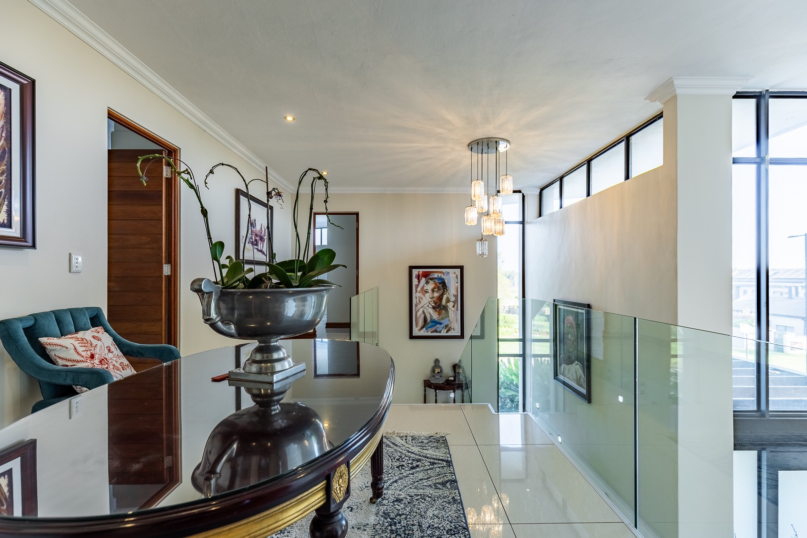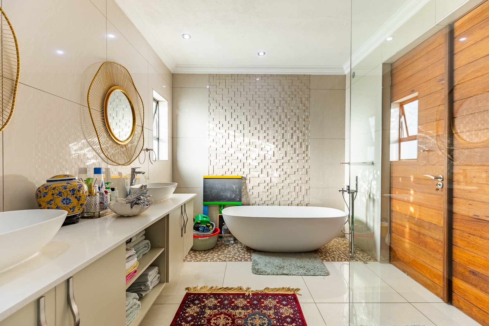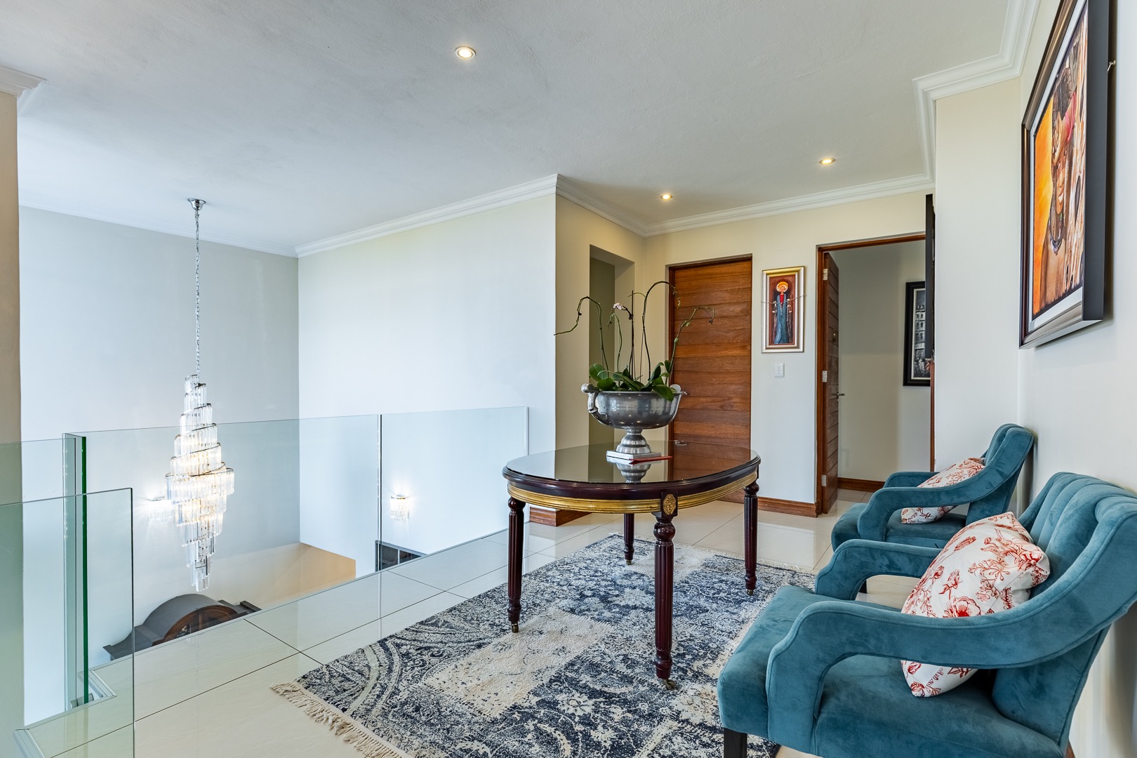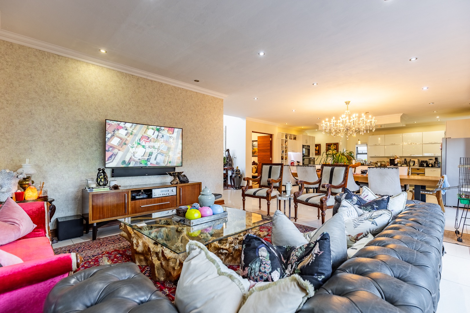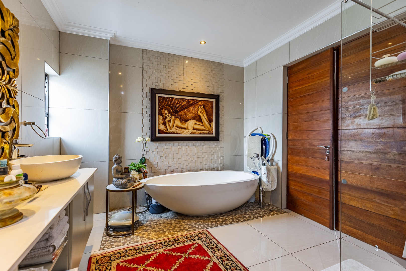 Luxuriate in the grandeur of this stunning mansion in Midstream Ridge Estate, boasting 5 spacious bedrooms, each with its own ensuite bathroom. A maid's room provides additional convenience, while the massive kitchen is equipped with the latest appliances, making meal preparation a breeze. The scullery is equally impressive, with ample space and a pantry for storage. Downstairs, two expansive living rooms and a luxury TV room provide ample space for relaxation and entertainment.
