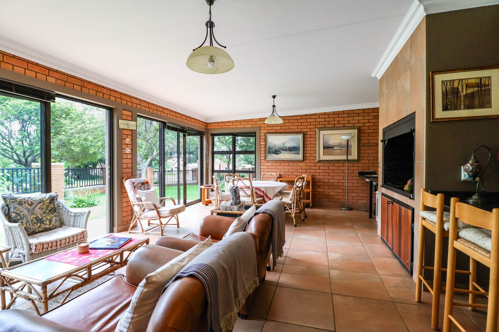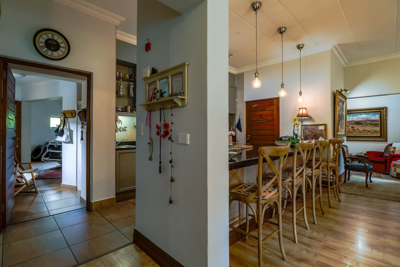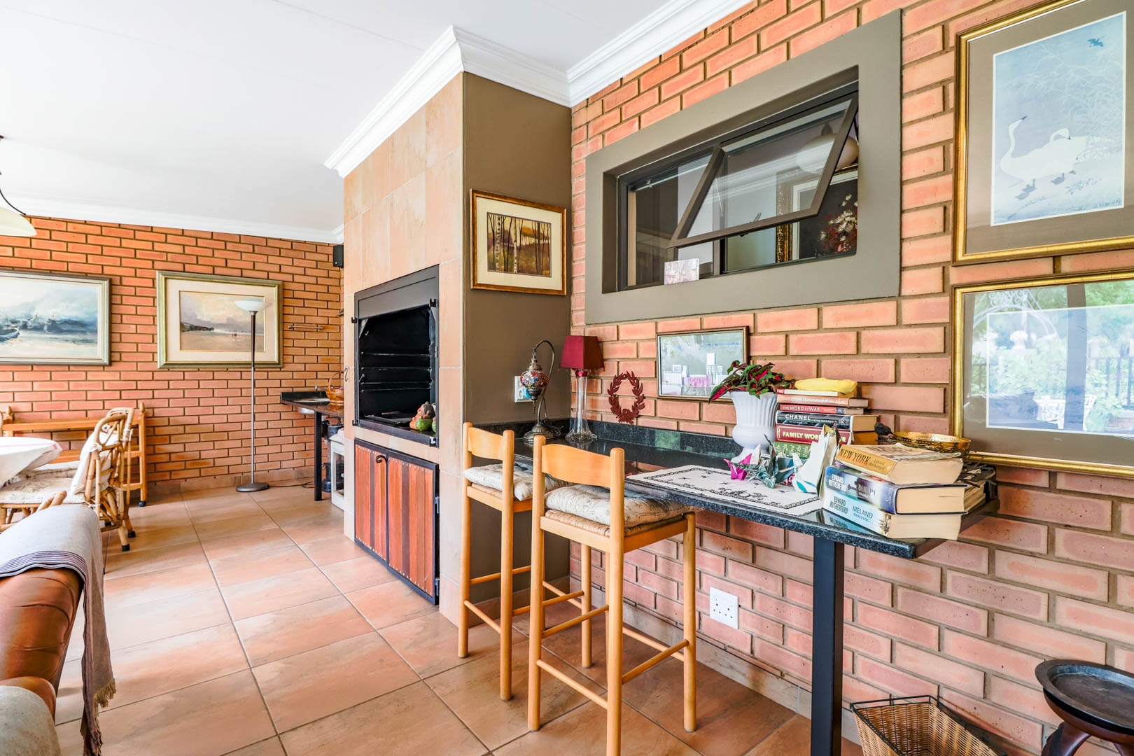 Step inside to an inviting entrance hall that flows into the expansive open-plan living areas. The lounge and dining room are bathed in natural light from large windows and seamlessly moves you through to your enclosed braai room with a built in braai, overlooking your private well designed garden. The modern kitchen is a highlight, featuring sleek grey cabinetry, a practical breakfast bar with seating, and a very spacious scullery.