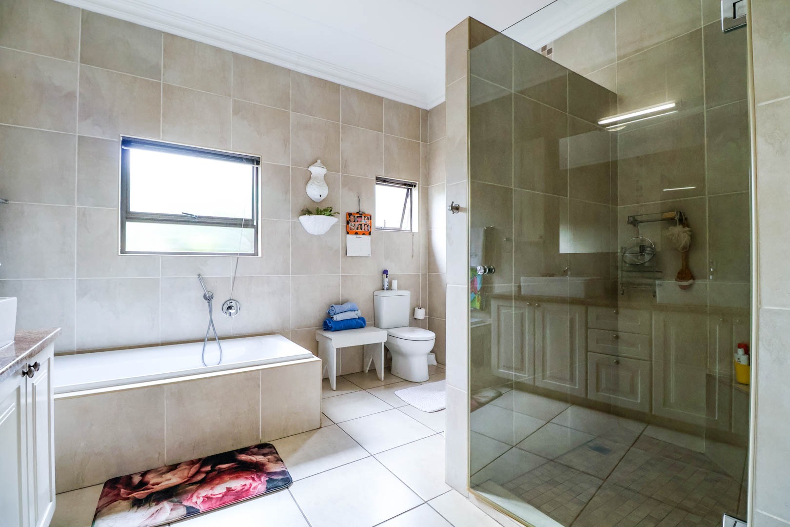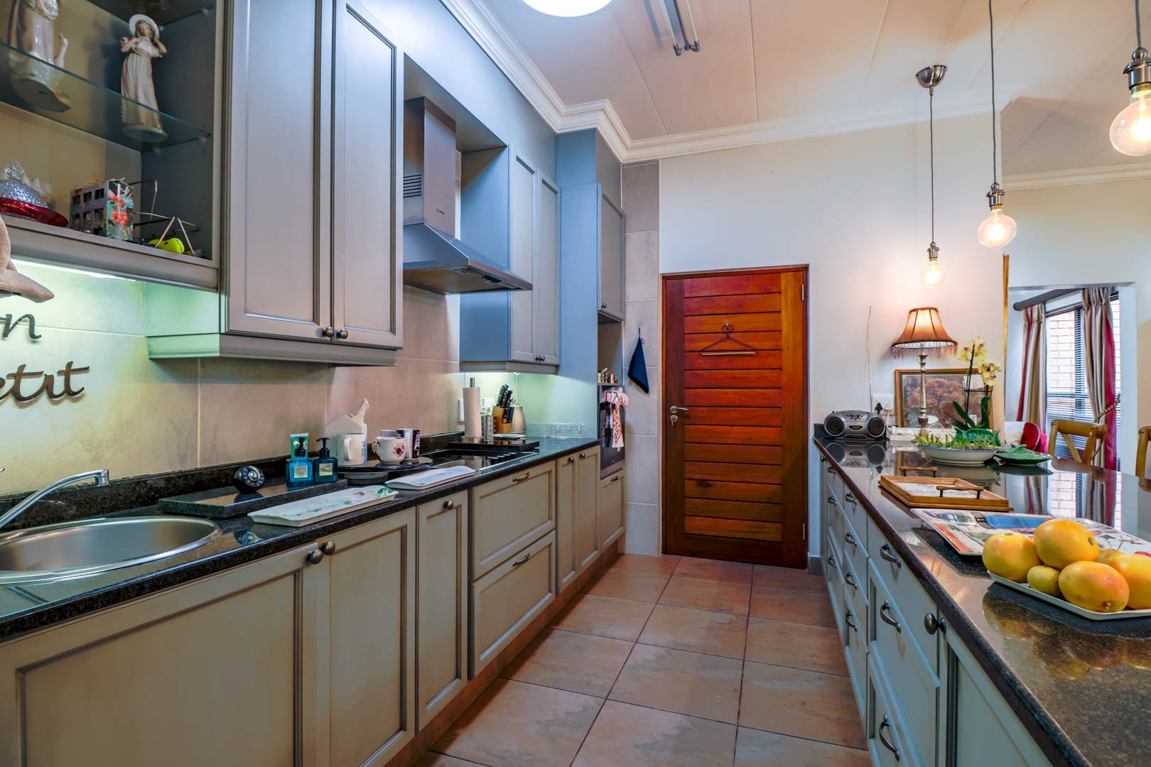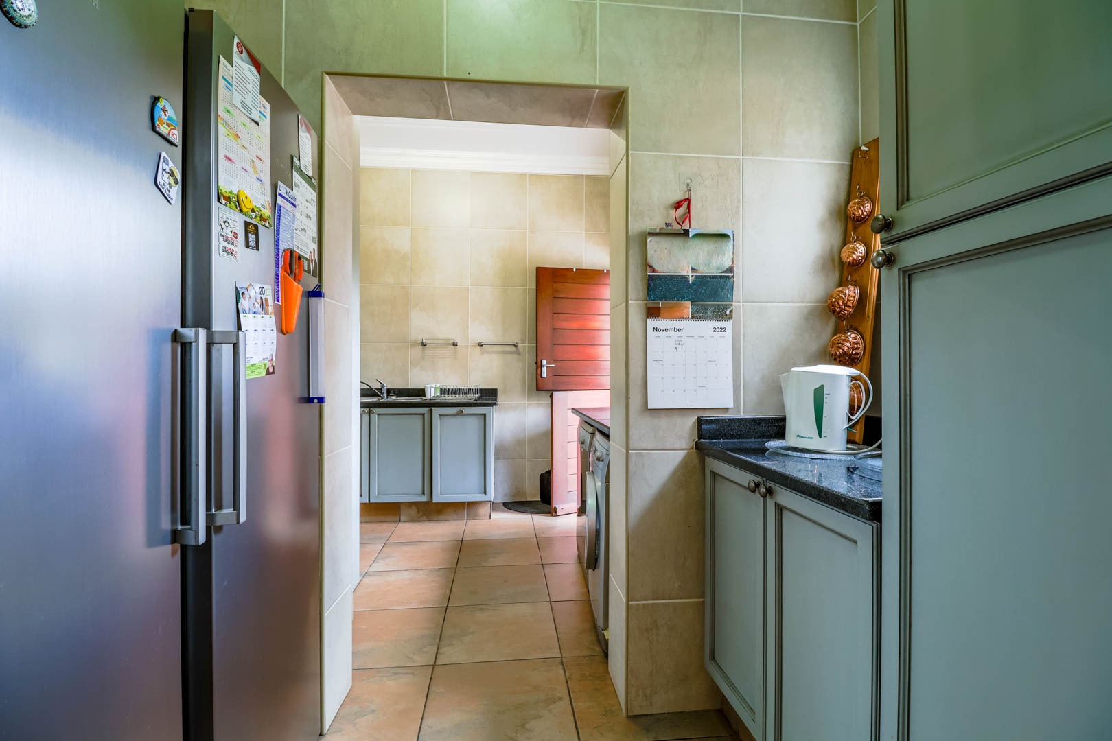Step inside to an inviting entrance hall that flows into the expansive open-plan living areas. The lounge and dining room are bathed in natural light from large windows and seamlessly moves you through to your enclosed braai room with a built in braai, overlooking your private well designed garden. The modern kitchen is a highlight, featuring sleek grey cabinetry, a practical breakfast bar with seating, and a very spacious scullery.