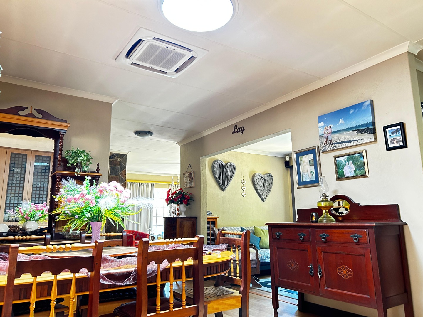 Step inside and you'll appreciate the thoughtful layout. With an entrance hall leading to two comfortable lounges and a dining room, there's plenty of space for relaxing and entertaining. The open-plan design creates a lovely flow, and you'll find a well-equipped kitchen with a pantry, perfect for whipping up your favourite meals. Stay cool with air conditioning and cozy up by the fireplace on cooler evenings. There's also a handy study, ideal for working from home or as a quiet reading nook, along with a separate laundry area and storage.