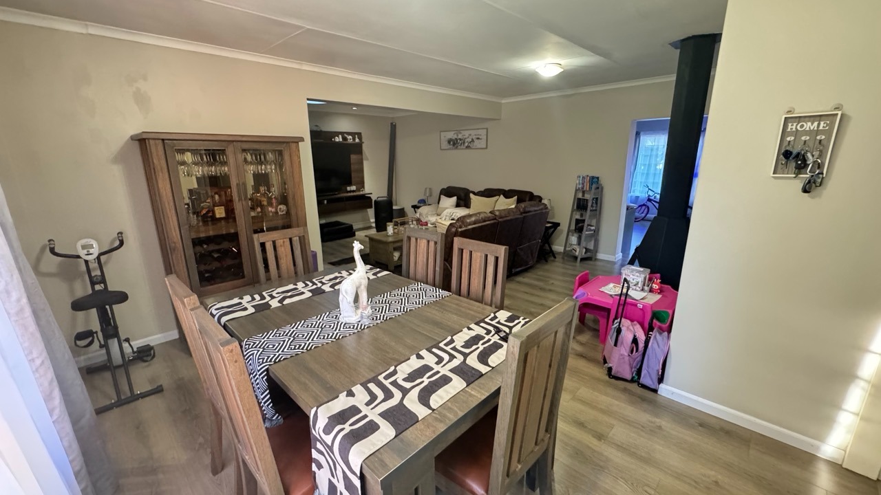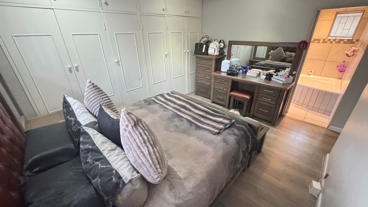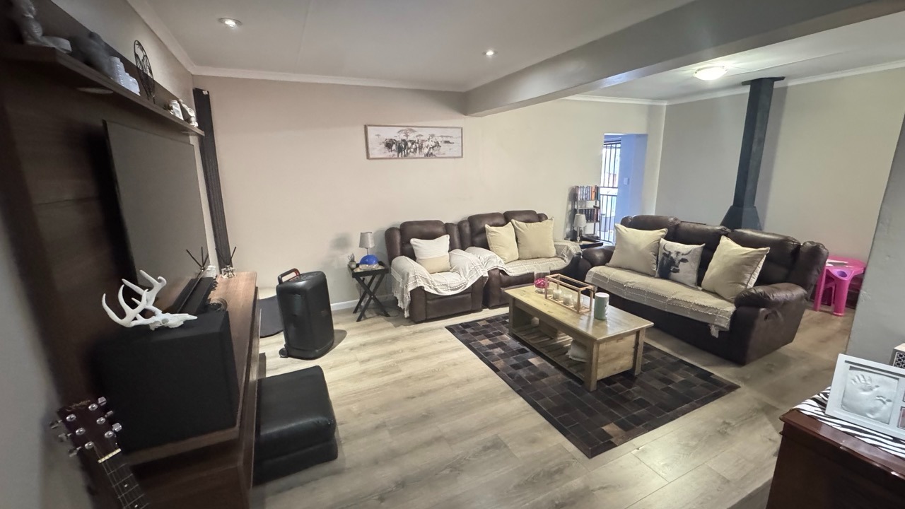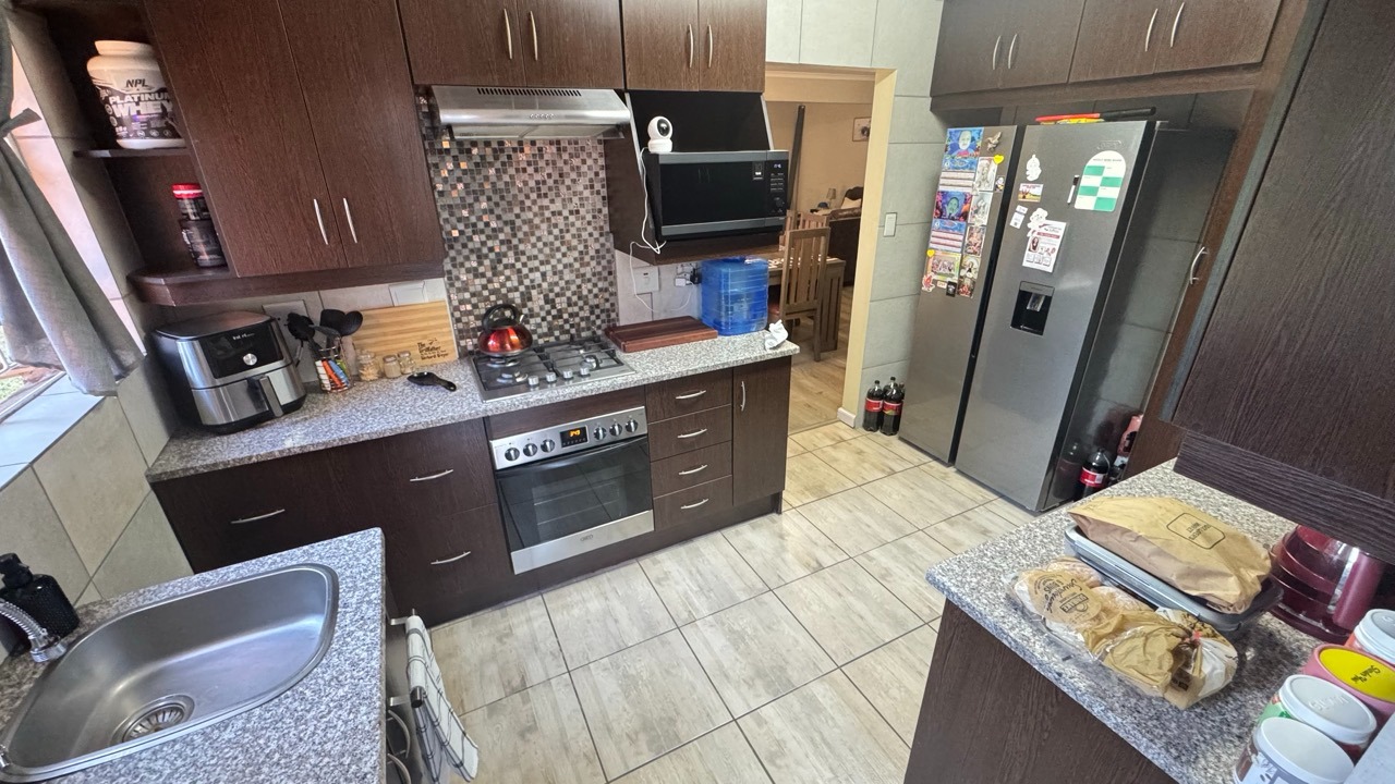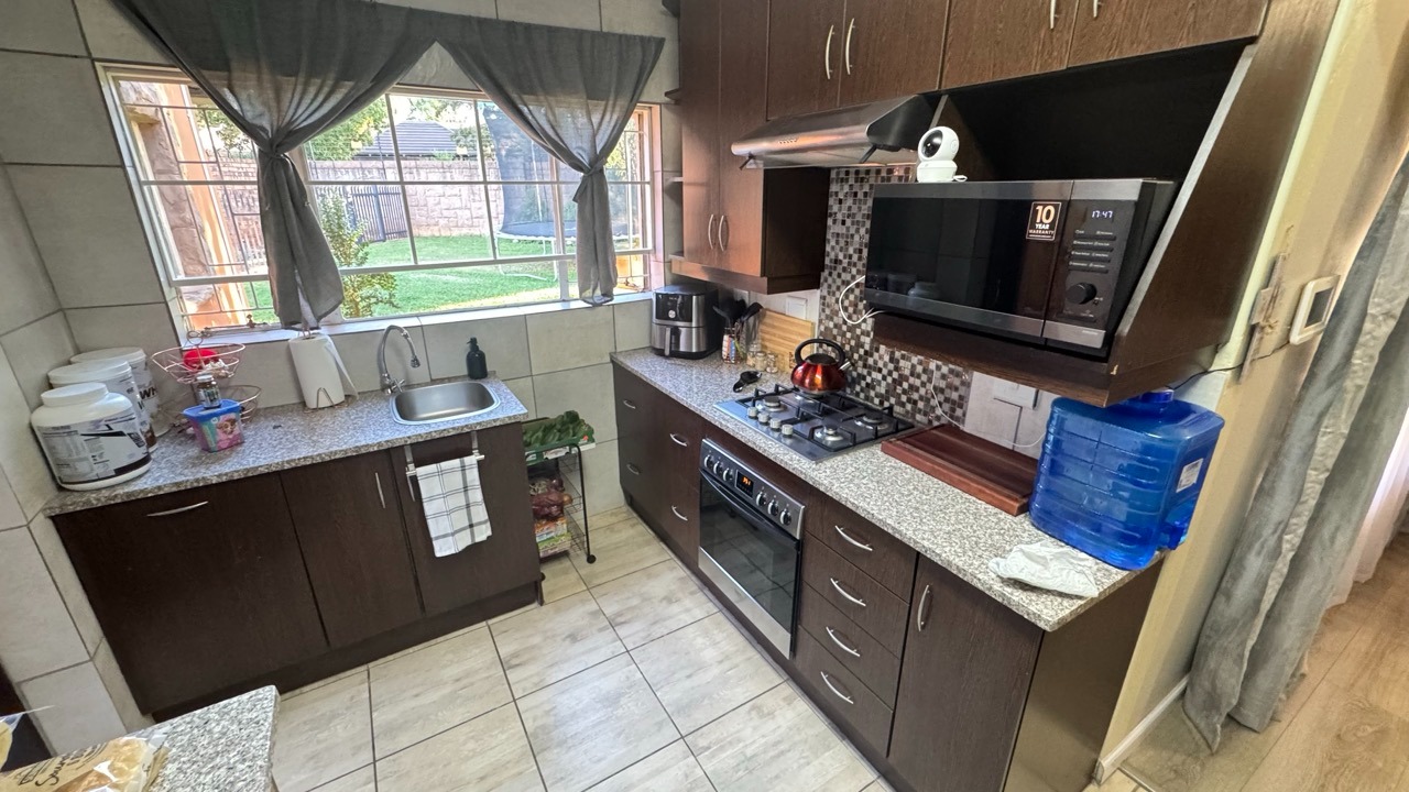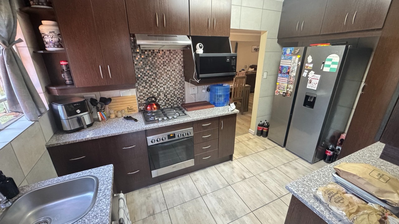 This inviting four-bedroom, two-bathroom family home is nestled in the established suburban area of Rooihuiskraal, Centurion. The property features a distinctive exterior with a textured facade and earthy tones, complemented by a durable tiled roof. A brick paved driveway offers ample covered parking, while a mature shade tree enhances the garden's appeal, creating a welcoming first impression. Inside, the 250 sqm residence boasts an open-plan layout, seamlessly connecting two spacious lounges and a dining area, all with modern wood-look laminate flooring and neutral walls. A contemporary black fireplace adds warmth. The modern kitchen is a highlight, featuring dark wood cabinetry, granite-style countertops, an integrated oven and gas hob, and sleek tiled flooring, with an open pass-through. The home offers four comfortable bedrooms, including one with an ensuite bathroom. Built-in wardrobes provide practical storage. Large windows allow for abundant natural light, creating a bright and airy atmosphere. Outdoor living is well catered for with a private garden and a patio, ideal for relaxation or entertaining on the generous 1004 sqm erf. Four garages ensure ample parking and storage. Pets are allowed, making this an ideal home for animal lovers. Security is paramount, with an alarm system, electric fencing, security gates, and burglar bars providing peace of mind. The home is also fibre-ready, ensuring high-speed internet connectivity. This property combines comfort, style, and security in a desirable Centurion location. Key Features: * 4 Bedrooms, 2 Bathrooms (1 Ensuite) * 2 Lounges, 1 Dining Room * Modern Kitchen with Gas Hob * Open-Plan Living Areas * Wood-Look Laminate Flooring * 4 Garages & Covered Parking * Alarm System & Electric Fencing * Fibre Ready * Private Garden & Patio * Pets Allowed